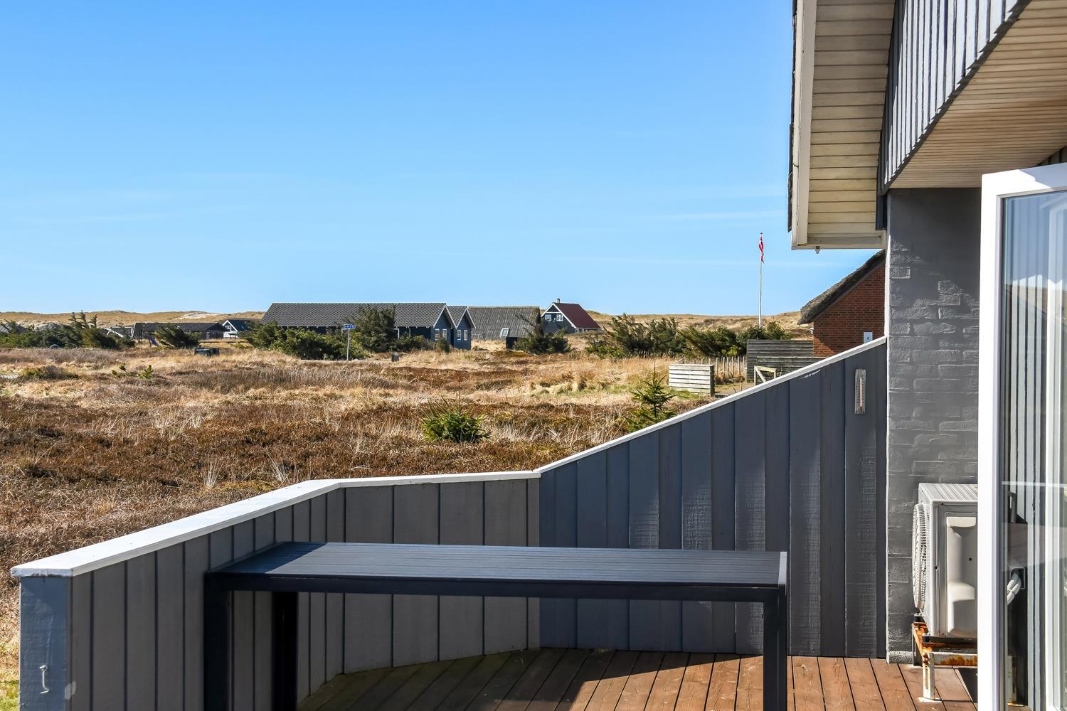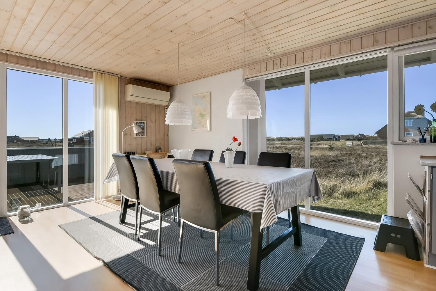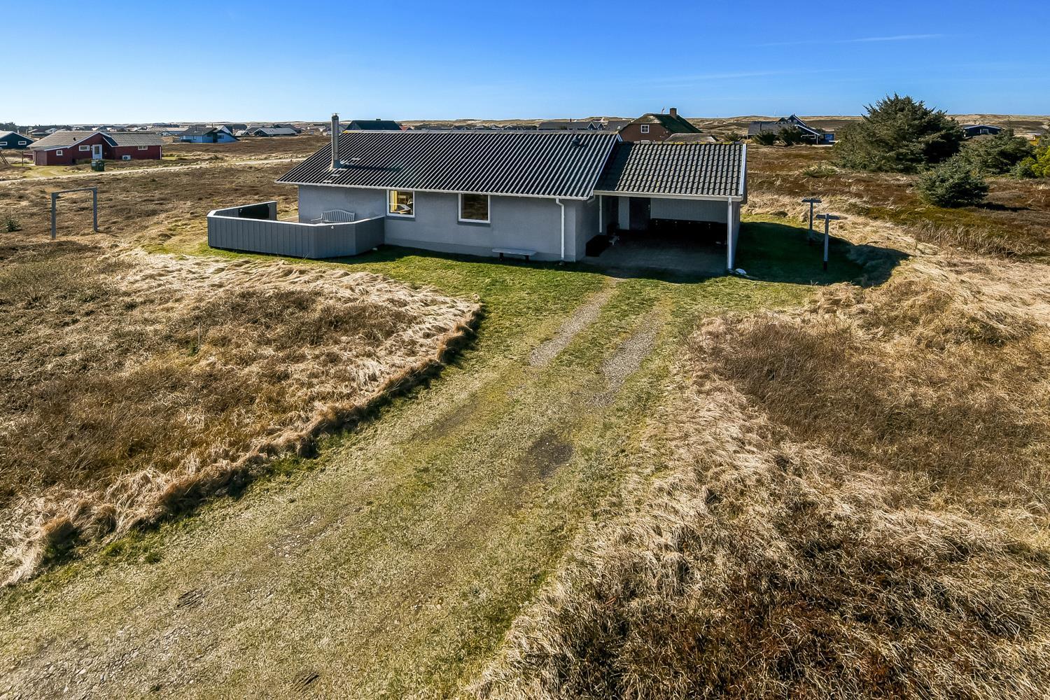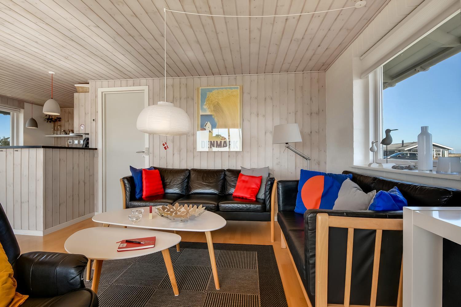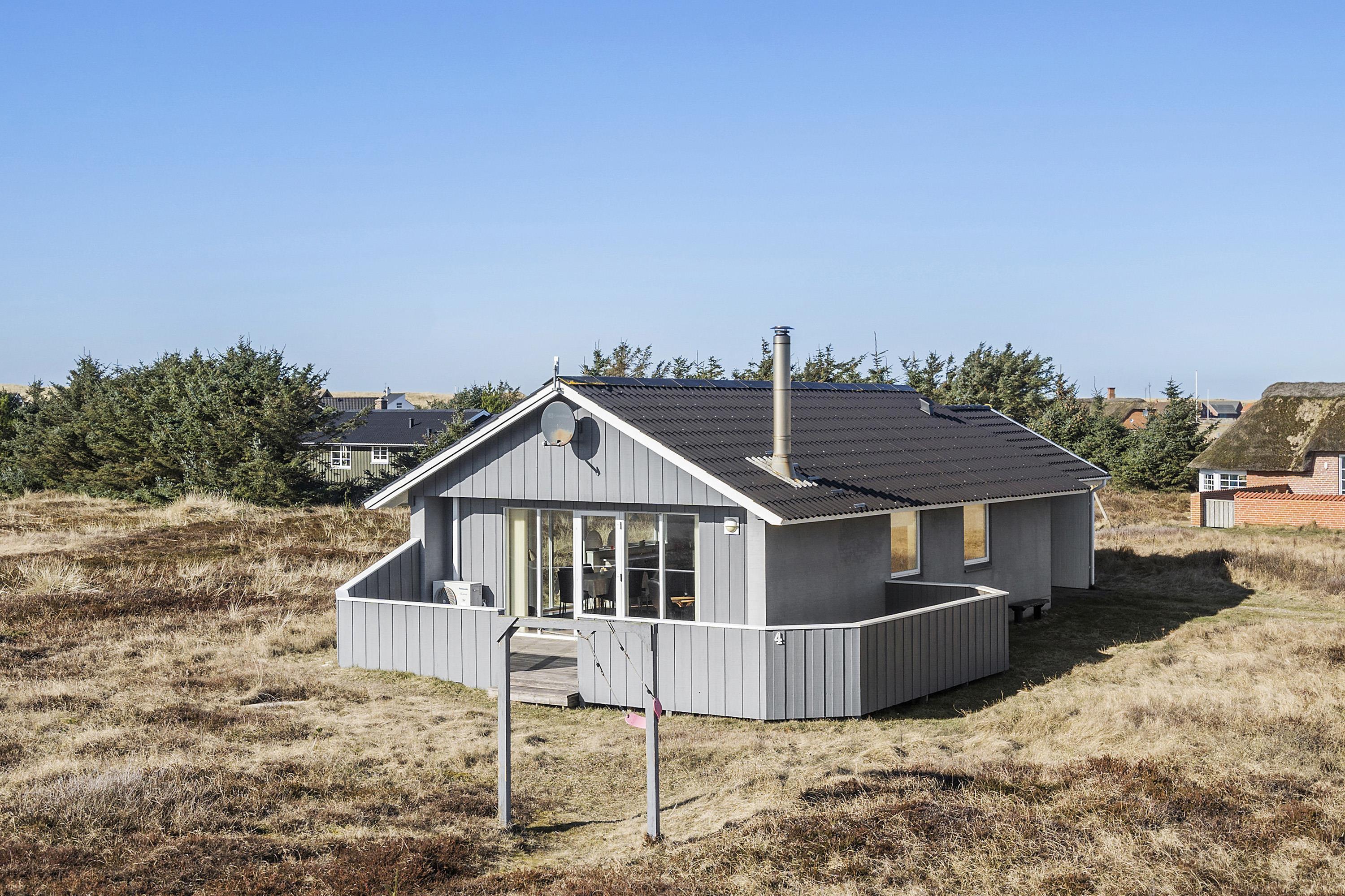 Gut zu nutzendes klassisches Ferienhaus auf etwa 75 qm mit Blick zu den hohen Dünen an der Nordsee. 2 Schlafräume: 1DB, 2EB und 1 ETB. Das Haus wurde im Jahr 2006 renoviert und wird laufend modernisiert. Das großzügig holzverkleidete Sommerhaus ist mit Ledermöbeln und großem Esstisch eingerichtet. Es ist ein TV mit dänischen und deutschen Programmen und der Möglichkeit des Streamings von TV/Radio/Apps, sofern Sie selber ein Abonnement haben, sowie Internet Radio, DVD- und CD Player vorhanden. Ein gemütlicher Kaminofen und eine Wärmepumpe sorgen für günstigere Nebenkosten und machen es extra gemütlich auch während der kälteren Tage an der Nordsee.