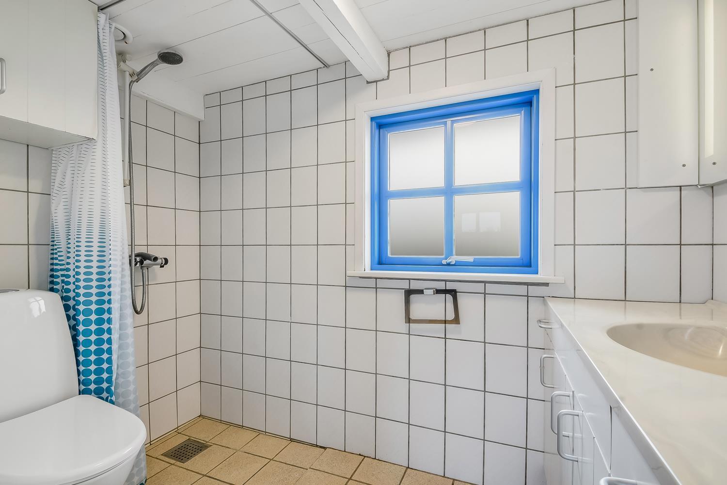 Das Wohnzimmer ist schön hell mit sichtbaren Deckenbalken, und ein großer Glaserker sorgt für einen wunderbaren Lichteinfall. Der Glaserker bietet zudem einen direkten Blick auf die Dünen, hinter denen sich die Nordsee versteckt – so kann man bei jeder Mahlzeit am Esstisch die schöne Aussicht genießen. Das Wohnzimmer ist mit Polstermöbeln und einem Smart-TV mit dänischen und deutschen Kanälen eingerichtet, zudem können eigene Streamingdienste genutzt werden. Außerdem gibt es einen DVD- und CD-Player sowie ein Radio. Im Wohnzimmer befindet sich zudem eine große Alkove mit zwei Schlafplätzen.