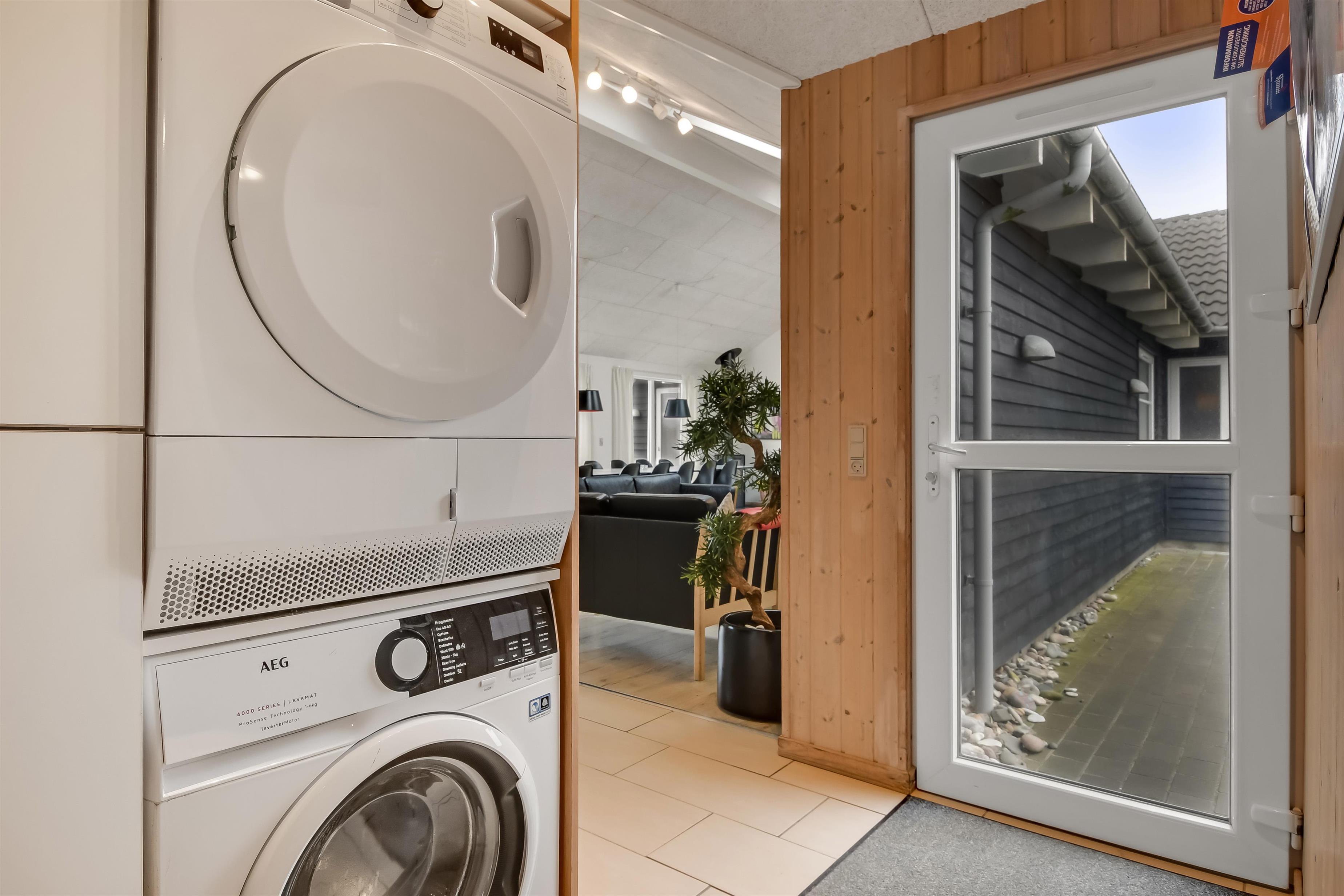 Das Haus hat eine fantastische und teilweise überdachte Terrasse mit Tischbank-Set, Sonnenliegen, Fischreinigungsplatz und Grill. Hier finden Sie immer ein geschütztes Plätzchen an sonnigen Urlaubstagen. Auf dem Grundstück gibt es Schaukeln für die Kinder. Es wurde auch an die vierbeinigen Familienmitglieder gedacht, die ihren eigenen Hundehof haben. Dieses herrliche Ferienhaus liegt auf einem ca. 2.500 m² großen, schönen Dünengrundstück in Vrist, das zum Spielen und Ballspielen einlädt. Man wohnt nur 150 m vom Strand und 1.000 m von Lebensmittelgeschäften entfernt. In wenigen Autominuten erreichen Sie sowohl die aktive Handelsstadt Lemvig mit mehreren Fachgeschäften als auch die einzigartige Fischerstadt Thyborøn, die neben dem Fischereihafen auch einen Badestrand und viele Möglichkeiten für Aktivitäten bietet, die alle einen Besuch wert sind.