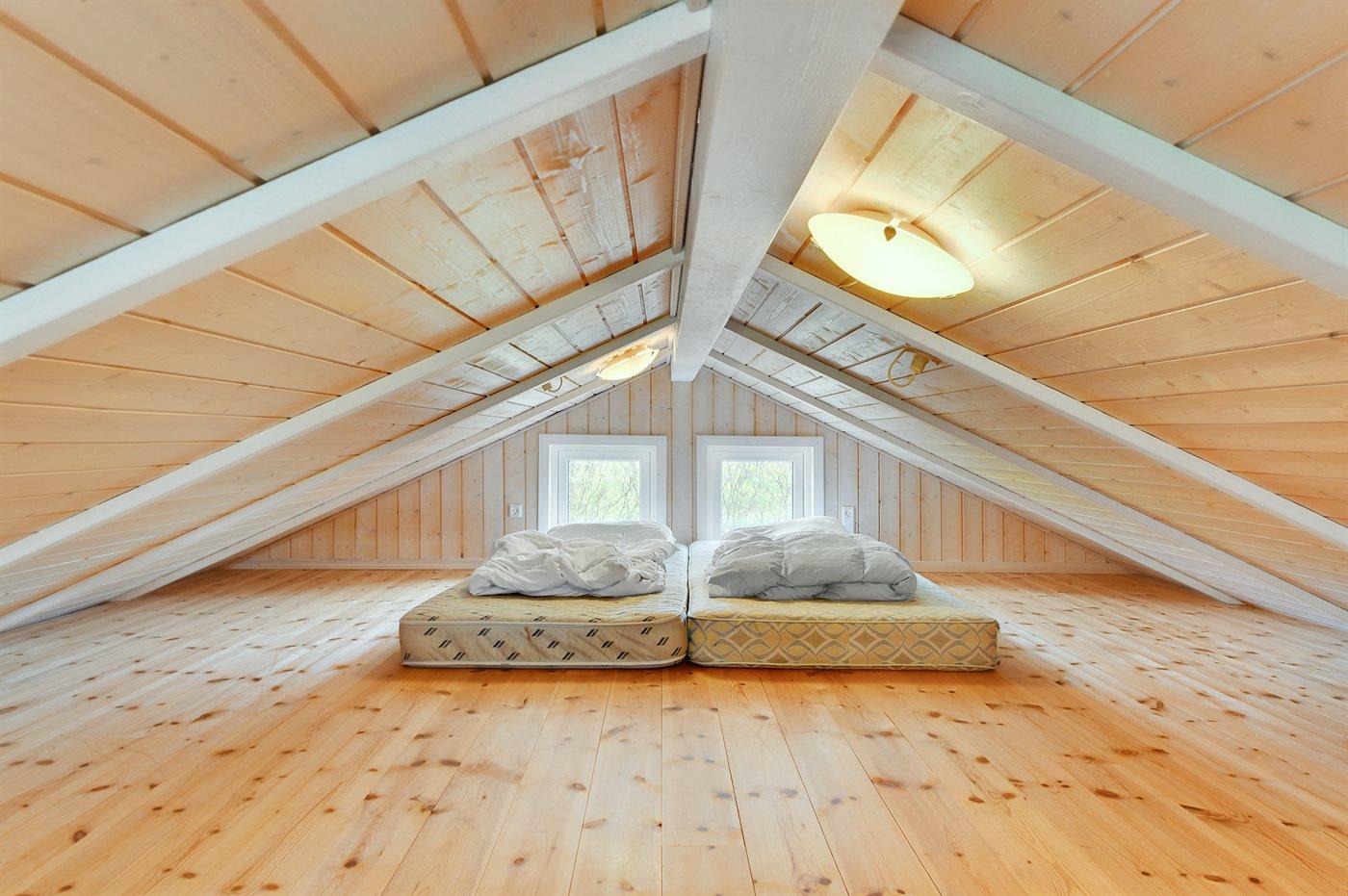 Ferienhaus in einem schönen Gebiet gelegen. Zwei Schlafplätze auf Matratzen im Obergeschoß.
