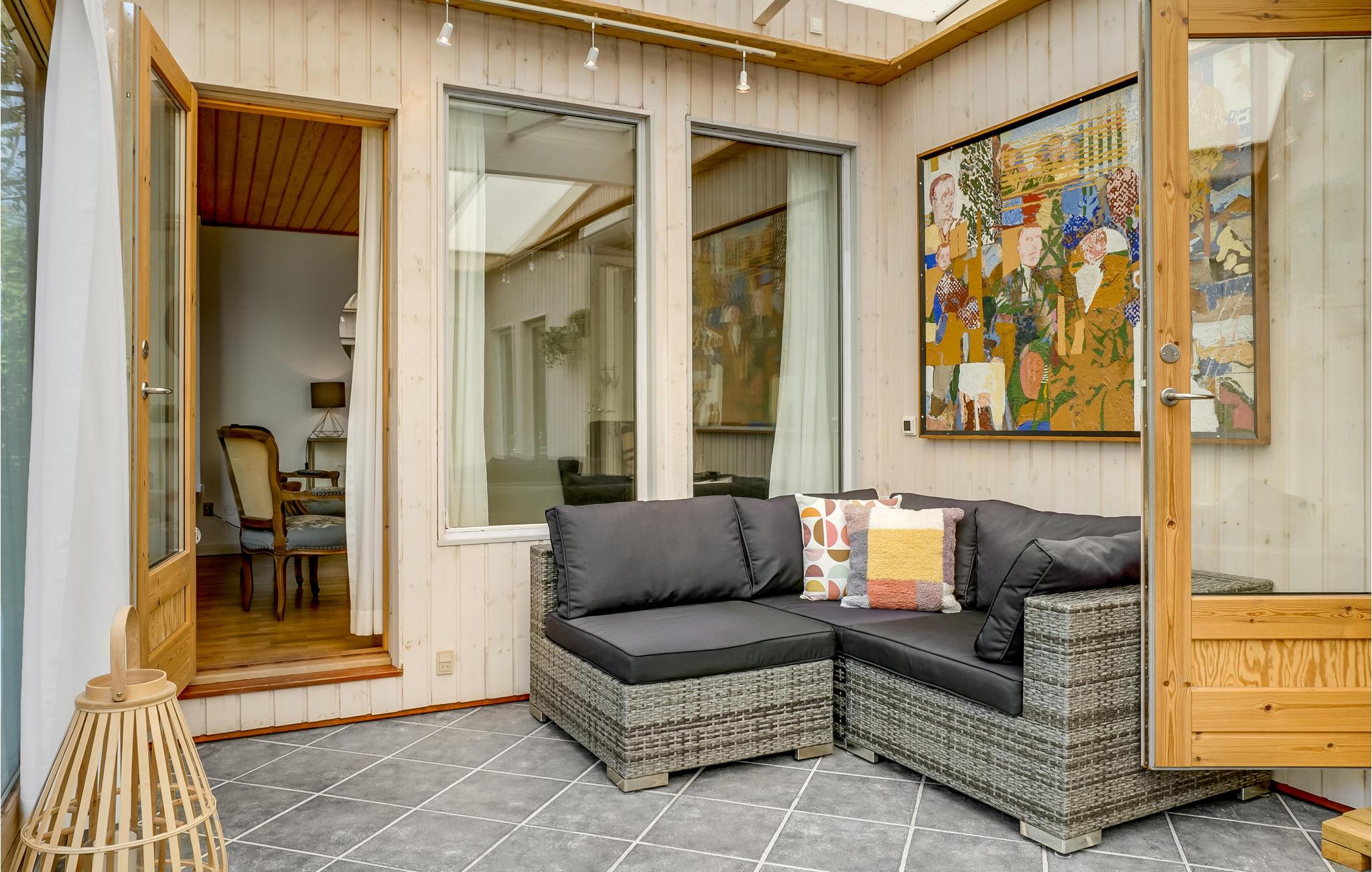 Ein einladendes Ferienhaus nahe Præstø Fjord mit Kamin, Terrasse und Garten für entspannte Familienurlaube.