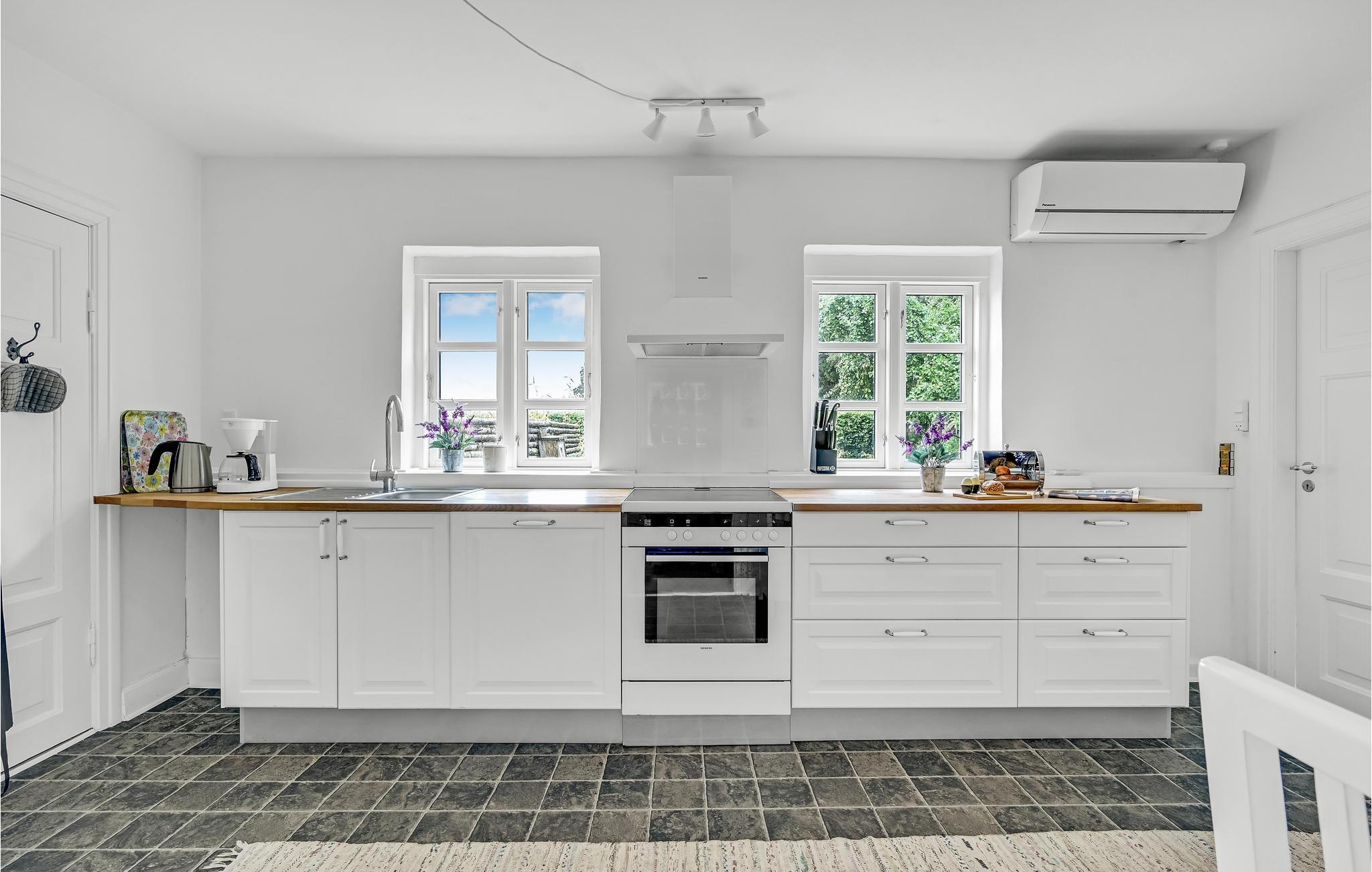 Gemütliches Ferienhaus an der Straße in Nordlangeland. Sie wohnen ca. 1,8 km vom Schloss Tranekær entfernt, das von einem Schlosspark mit Landart-Skulpturen dänischer und ausländischer Künstler ist. Auf dem großen Naturgrundstück des Ferienhauses und auf dem Feld daneben, das an einen Wald grenzt, sieht man oft Rehe.
