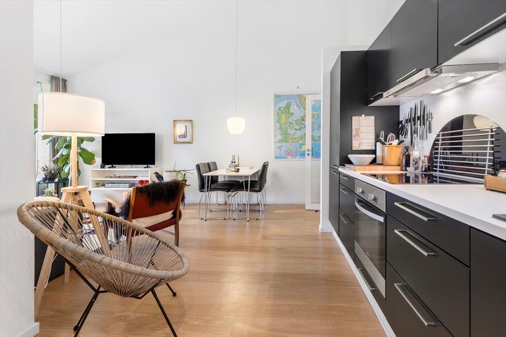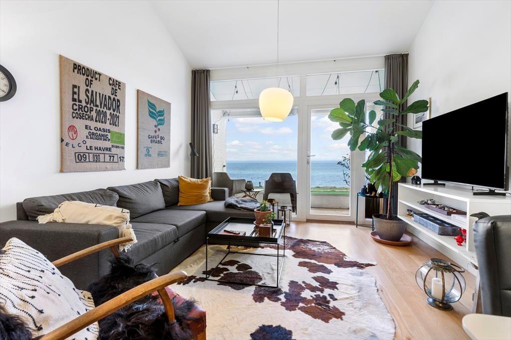 Willkommen in deiner schönen Ferienwohnung in Ebeltoft, die dich direkt an der Wasserkante begrüßt und mit einer tollen Panoramaaussicht über das Meer verzaubert. Dein helles, einladendes Urlaubsdomizil mit Platz für vier Personen bietet eine Wohnfläche von insgesamt 73 m². Zwei ansprechende Schlafräume und ein zeitgemäßes Badezimmer sind vorhanden. Der offene Aufenthaltsraum vereint in sich die Küche, den Essbereich und den Wohnraum. In diesem attraktiven Raum wirst du viel Zeit mit deinen Lieben genießen. Untermalt werden eure gemeinsamen Stunden mit einem schönen Tageslichteinfall und mit einem freien Ausblick auf das Wasser - beides bedingt durch die großen Fensterpartien. Ganz gleich, ob du in Ruhe dein Frühstück genießen oder dich nach einem langen, erlebnisreichen Tag auf den Polstersitzmöbeln entspannen möchtest, die Aussicht prägt jeden einzelnen Moment und trägt maßgeblich zur ruhigen, entspannten Atmosphäre bei.