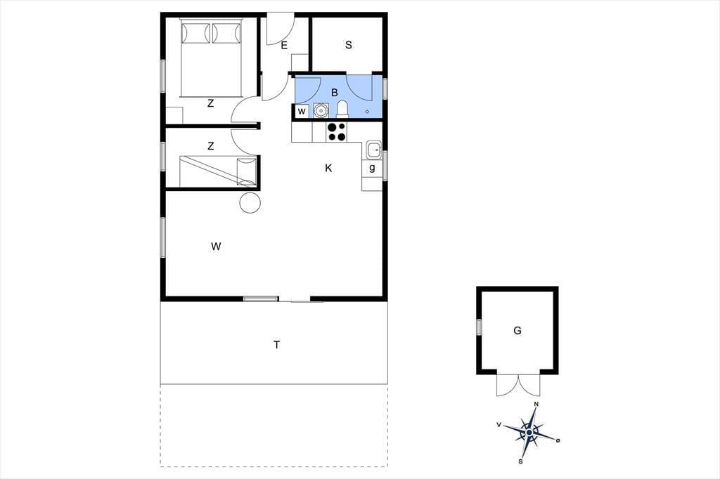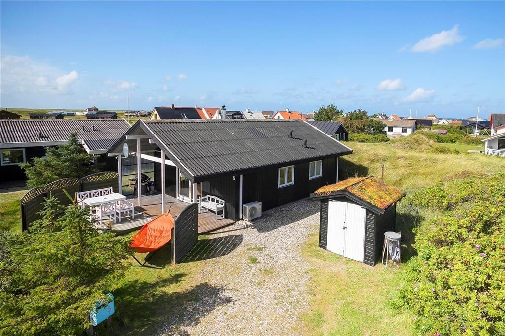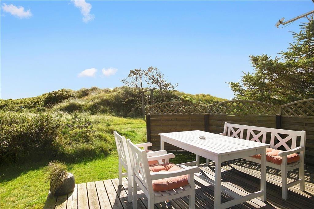 Das Haus liegt auf einem kleinen Naturgrundstück, nur 400 Meter außerhalb des Fischerortes Lild Strand. Vom Wohnzimmer aus gelangen Sie direkt auf die schöne und teilweise überdachte Terrasse, auf der Ihnen gute Gartenmöbel und ein Grill zur Verfügung stehen. Auf dem Grundstück steht ein Schaukelgerüst, und nicht weit entfernt finden Sie einen gemeinschaftlich nutzbaren Spielplatz sowie einen Fußballplatz.