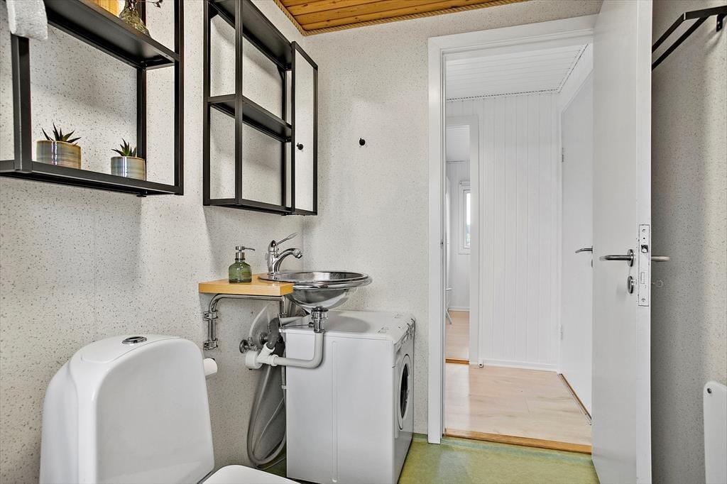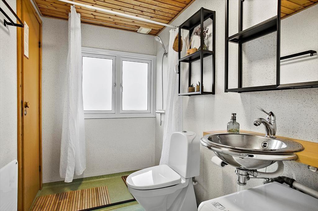Die 58 m² umfassende Wohnfläche des Hauses lässt absolut nichts vermissen. Die Wände und Decken sind weiß gestrichen und schaffen zusammen mit den großen Fenstern eine helle und freundliche Wohnatmosphäre. Die Küche, die unter anderem mit einer Geschirrspülmaschine ausgestattet ist, liegt in offener Verbindung zum Wohnzimmer, in dem sich auch der Esstisch befindet. Wenn die Sonne allein das Haus nicht aufwärmen kann, können Sie es sich vor dem Kaminofen gemütlich machen oder die Wärmepumpe in Betrieb nehmen. Das Badezimmer beinhaltet eine Duschnische und eine Waschmaschine und bietet darüber hinaus Zugang zur hauseigenen Sauna. Das Haus verfügt über zwei Schlafzimmer, von denen eines mit einem Doppelbett und das andere mit einem Etagenbett eingerichtet ist. Somit eignet es sich sowohl für kleine Familien als auch für Paare, die ihren Urlaub gerne in ruhiger Umgebung miteinander verbringen möchten. Darüber hinaus gibt es Antennen- und Kabelfernsehen, Chromecast und blitzschnelles Breitband-Internet.