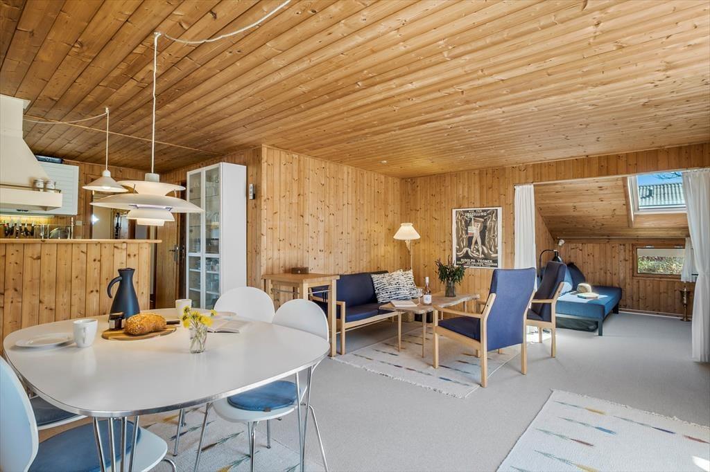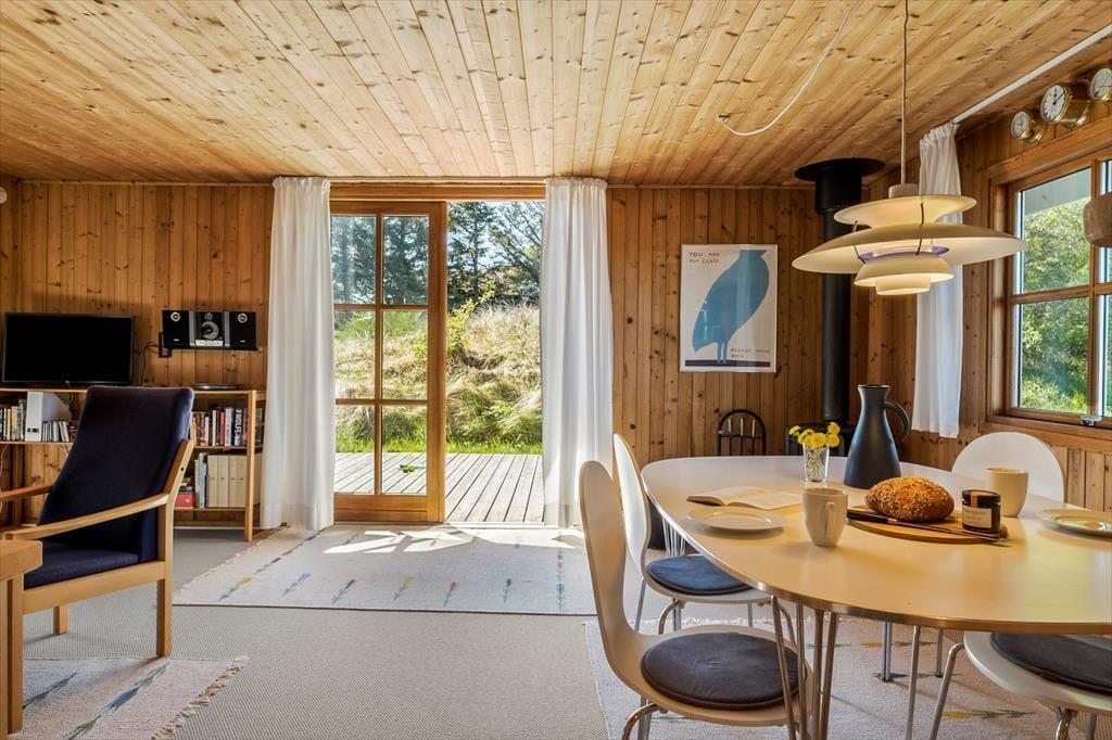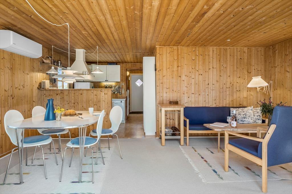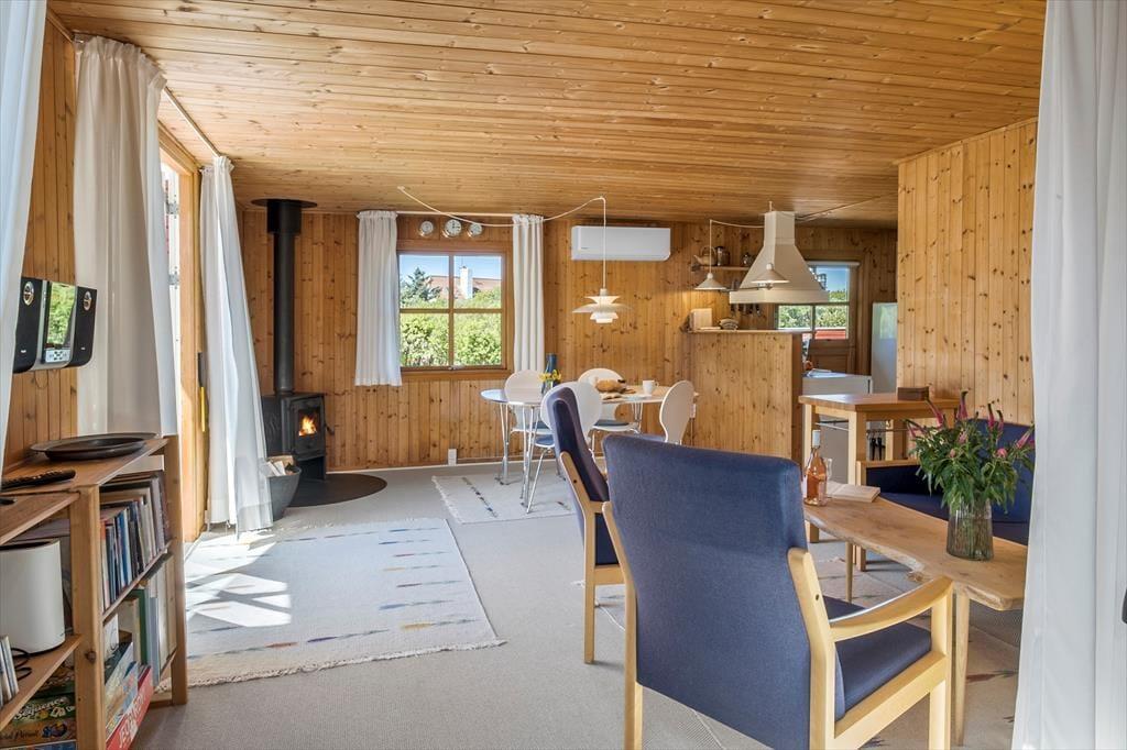 Beim Betreten des Hauses wirst du von einer warmen und einladenden Atmosphäre empfangen, die dich sofort heimisch fühlen lässt. Der offene Grundriss, in dem Wohnzimmer und Küche zusammenliegen, schafft einen hellen und luftigen Raum, der zu gemeinschaftlichen Momenten und zur Entspannung einlädt. Hier kannst du köstliche Mahlzeiten in der gut ausgestatteten Küche zubereiten, während du gleichzeitig die angenehme Gesellschaft im gemütlichen Wohnzimmer mit komfortablen Möbeln und schönen Details genießt, die den dänischen Sommerhauscharme widerspiegeln. Dank der cleveren Nutzung des überschaubaren Raums findest du alles, was du brauchst – ein komfortables Schlafzimmer sowie einen zusätzlichen Raum, der sich problemlos als Wohnzimmer oder Gästezimmer nutzen lässt, damit du eine erholsame Nacht und einen optimalen Start in den Tag hast.