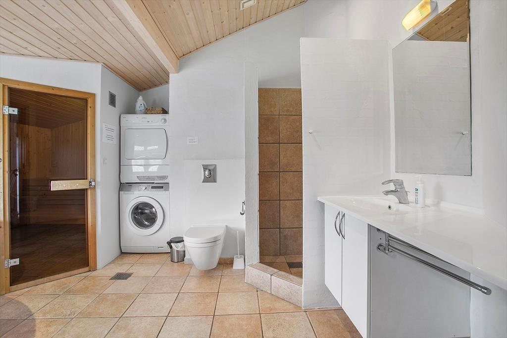 Das Ferienhaus ist schick mit schönen Möbeln und einer guten Ausstattung eingerichtet, so dass Sie sich während Ihres Urlaubs entspannen können. In dem offenen Küchenbereich, der den Mittelpunkt des Hauses bildet, können Sie das ganze Haus überblicken und von hier aus haben Sie Zugang zu den drei Schlafzimmern, wovon zwei mit jeweils einem Doppelbett und eins mit einem Etagenbett ausgestattet sind. Zwei weitere Schlafgelegenheiten befinden sich auf dem Dachboden, von hier aus haben Sie ebenfalls Meerblick. Im Ferienhaus gibt es ein schönes Badezimmer mit Sauna.