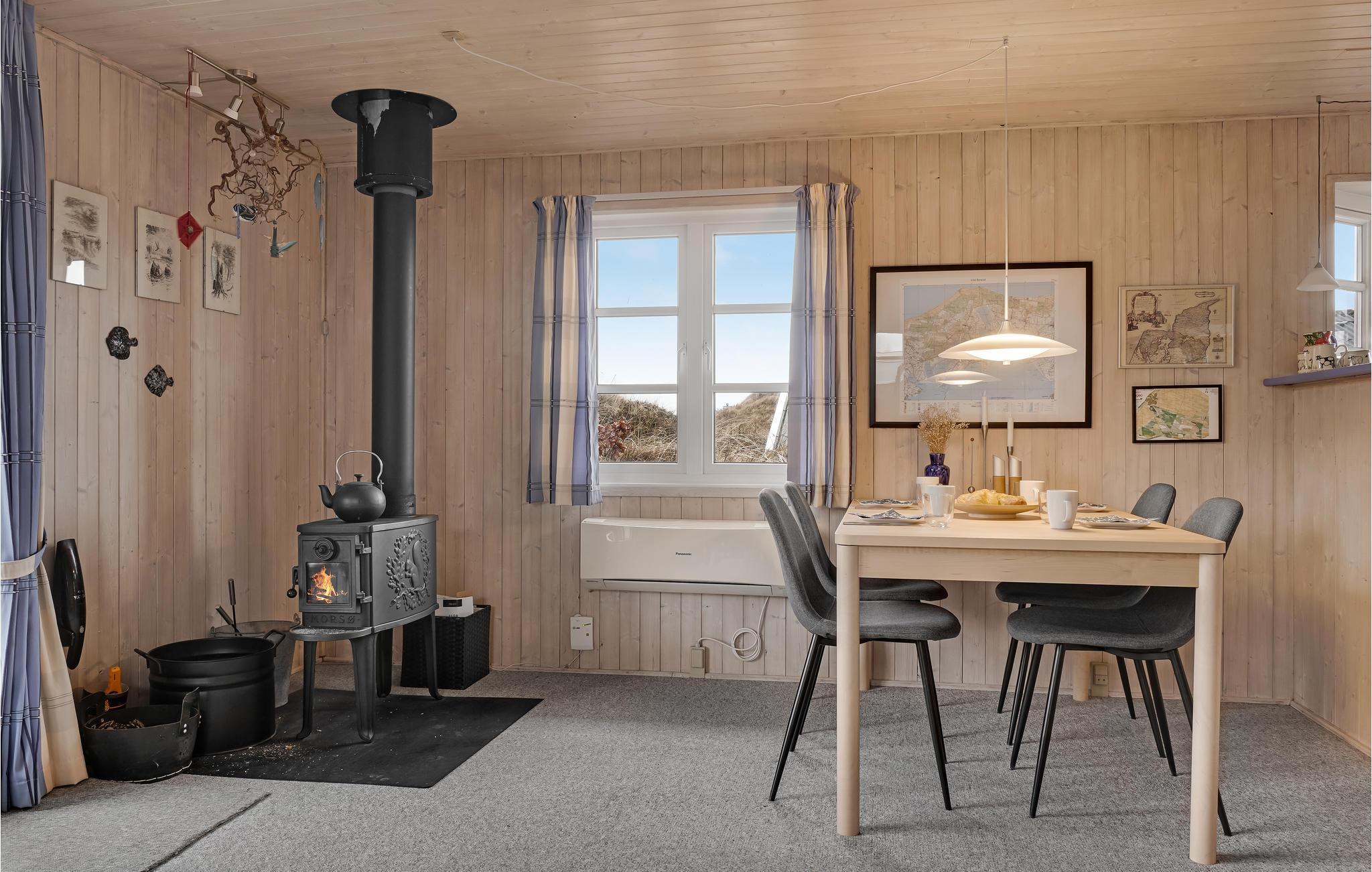 Bei diesem Ferienhaus haben Sie jede Gelegenheit eine typische Dünenlandschaft Dänemarks zu erleben. Der Horizont ist weit, das Gras weht im Wind und am Himmel fliegen die Wolken dahin. Ideal um vom Stress des Alltags Abstand zu gewinnen. Das renovierte Innere des Hauses besitzt ein helles, gepflegtes Flair. Behagliche Möbel und eine mit Grundelementen ausgestattete Küche sorgen für Gemütlichkeit im Urlaub.