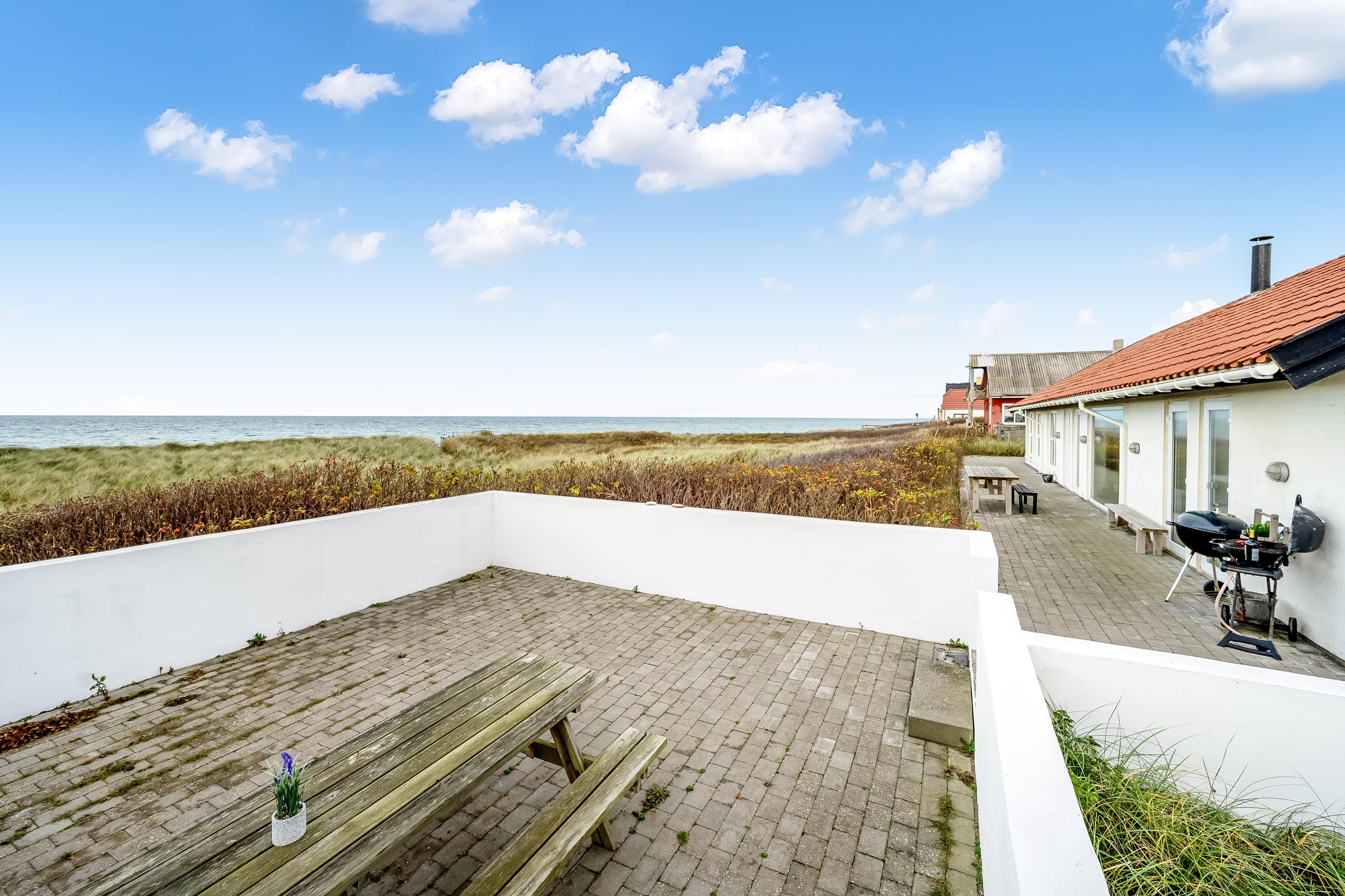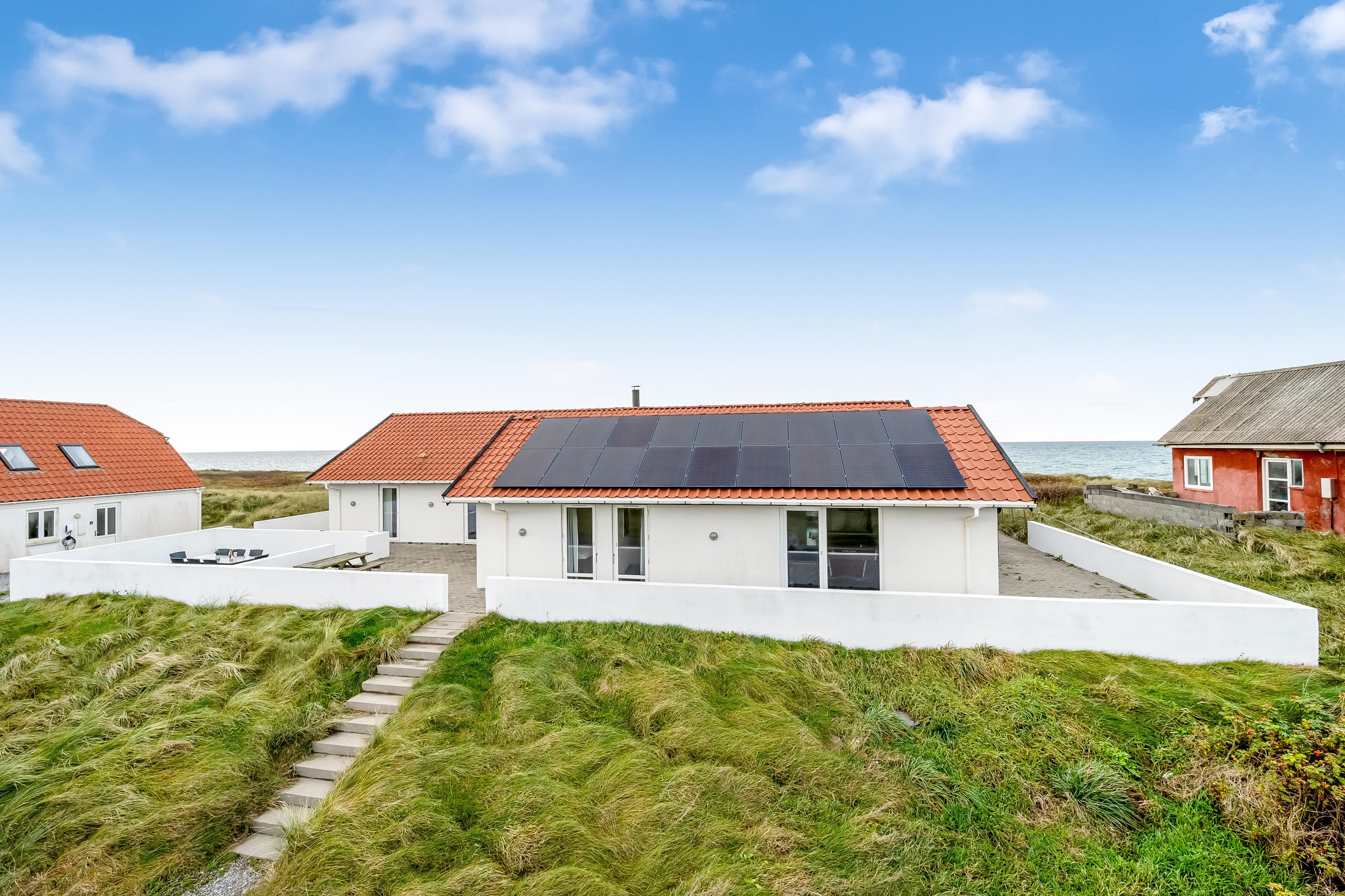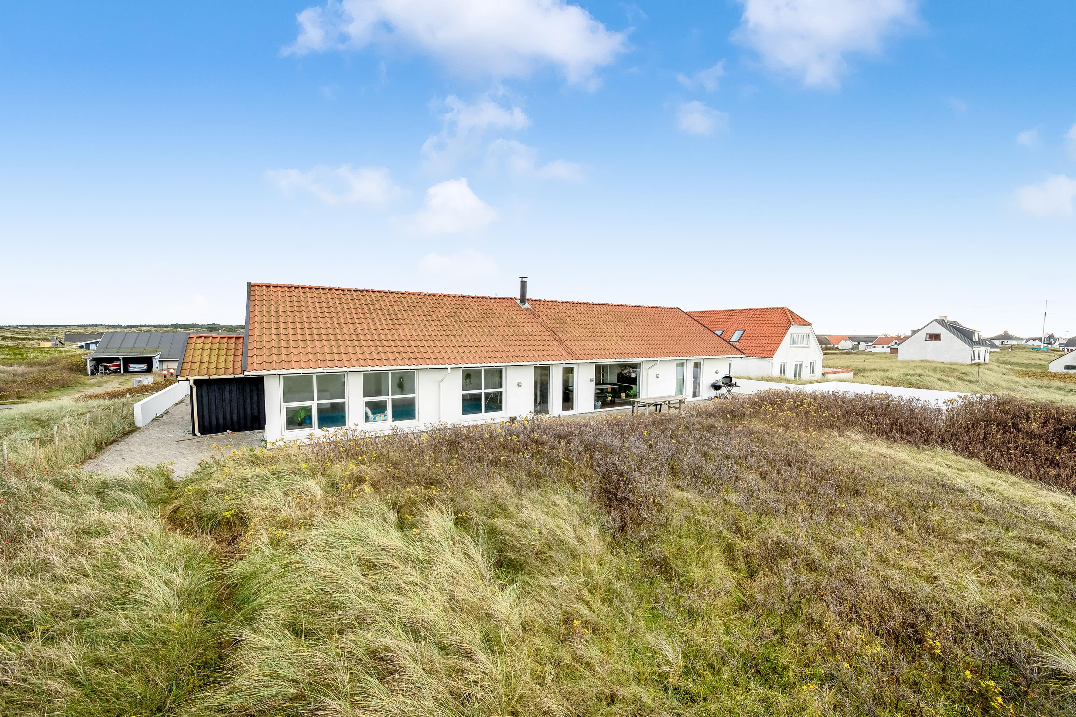 Das Ferienhaus bietet Platz für bis zu 12 Personen und ist besonders für Familien mit älteren Kindern geeignet, da 2 der Schlafplätze im Dachgeschoss sind. Die Ferienunterkunft erstreckt sich über 260 m², wurde 1990 erbaut und befindet sich auf einem wunderschönen Naturgrundstück von 1700 m², nur 25 Meter vom Meer entfernt. Hier können Sie ein erfrischendes Bad im Meer nehmen oder die große 130 m² Terrasse mit Blick auf das Meer und die umliegenden Dünenlandschaften genießen.