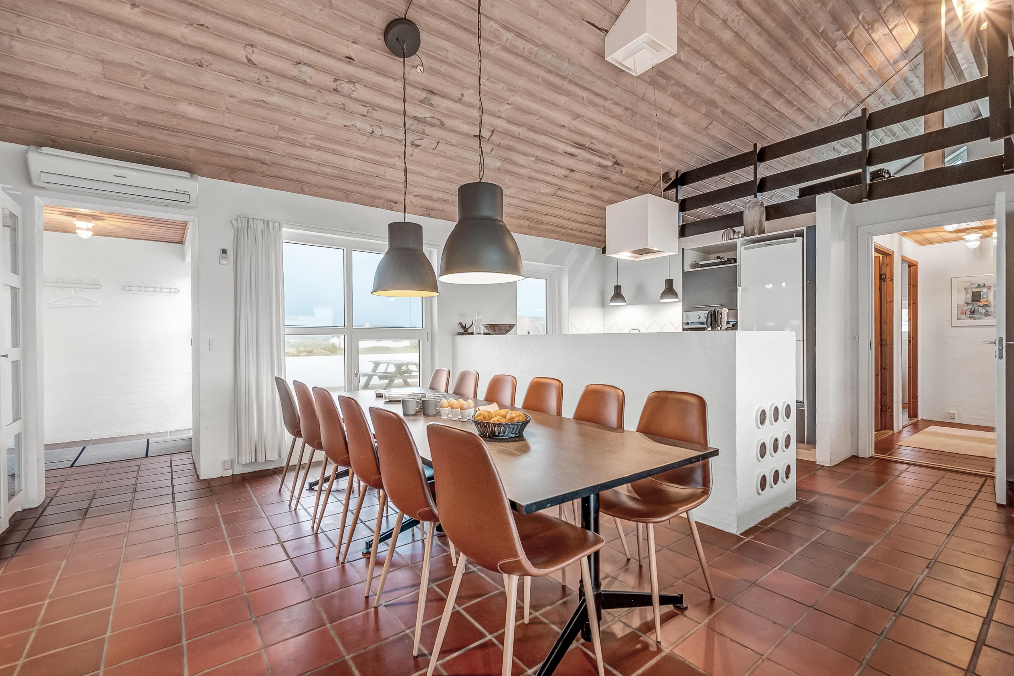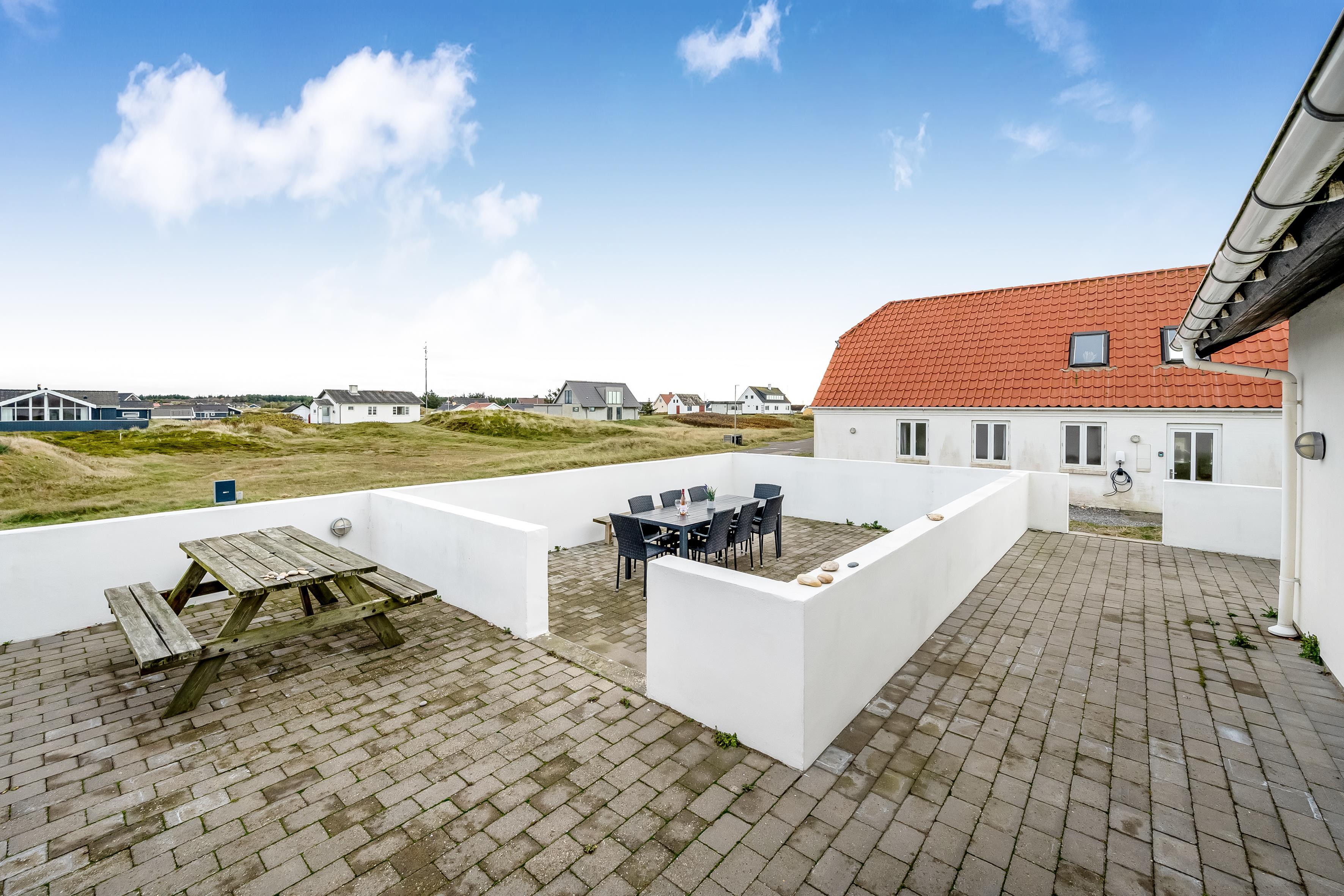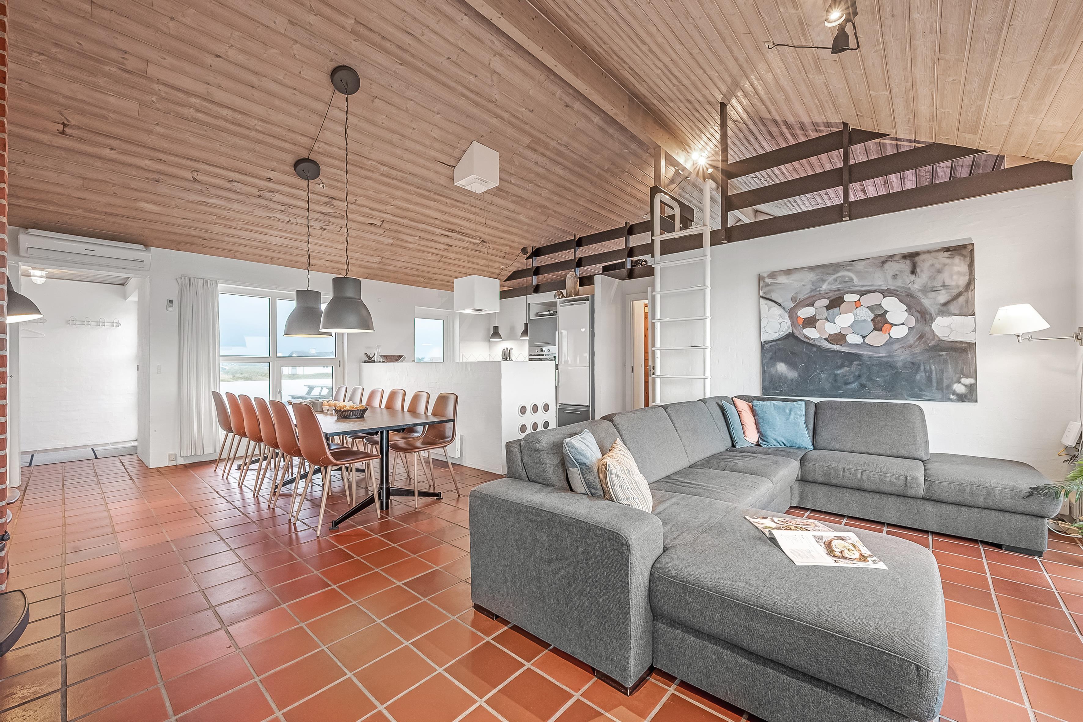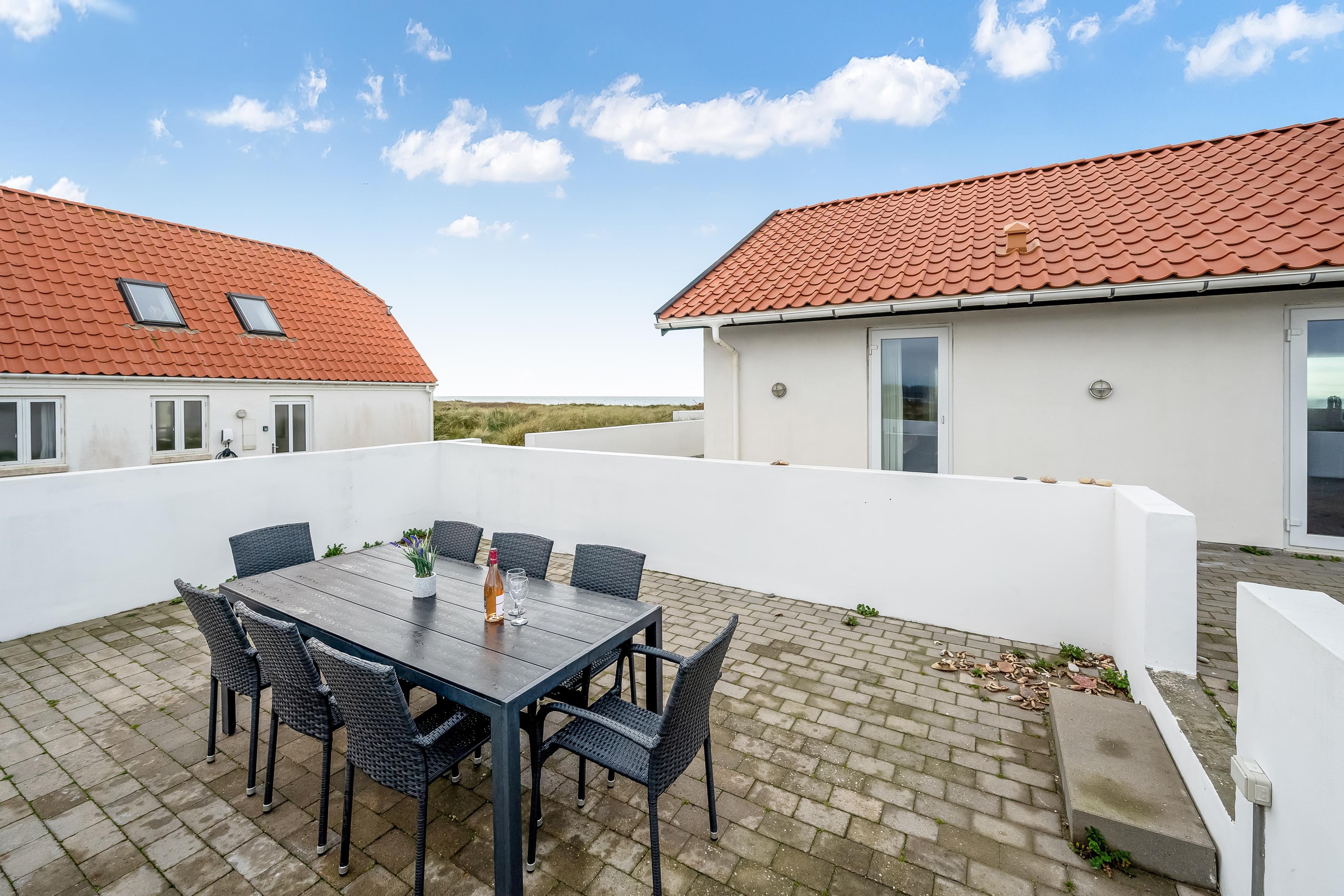 Das Ferienhaus bietet Platz für bis zu 12 Personen und ist besonders für Familien mit älteren Kindern geeignet, da 2 der Schlafplätze im Dachgeschoss sind. Die Ferienunterkunft erstreckt sich über 260 m², wurde 1990 erbaut und befindet sich auf einem wunderschönen Naturgrundstück von 1700 m², nur 25 Meter vom Meer entfernt. Hier können Sie ein erfrischendes Bad im Meer nehmen oder die große 130 m² Terrasse mit Blick auf das Meer und die umliegenden Dünenlandschaften genießen.