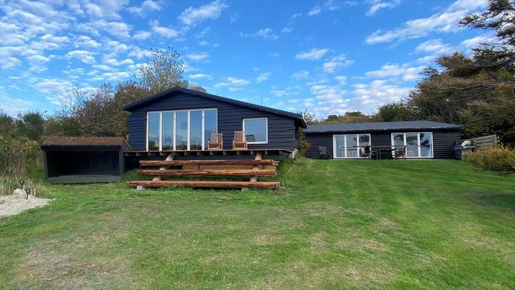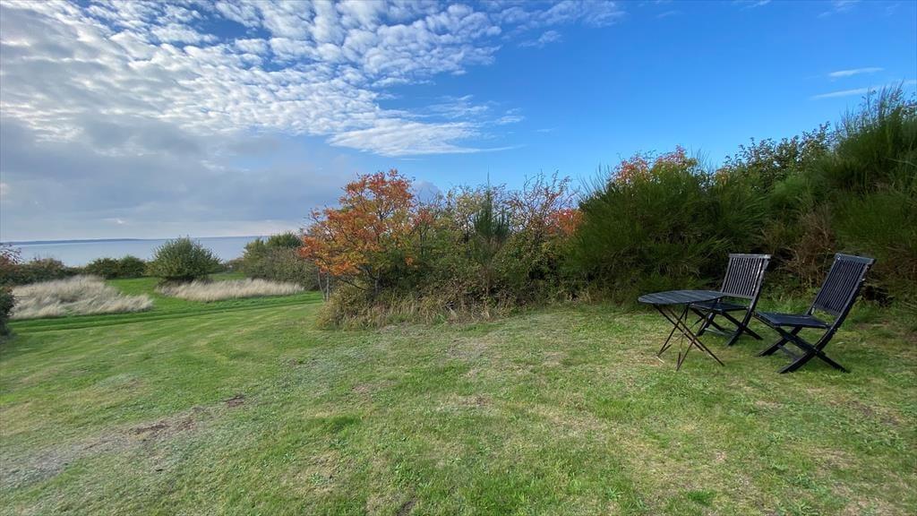Das Ferienhaus und der Anbau liegen auf einem herrlichen, hoch oben auf der Steilküste bei Hundested gelegenen Naturgrundstück. Von hier aus bietet sich Ihnen ein herrliches Panorama über das Meer in Richtung Odsherred. Bei gutem Wetter können Sie sogar bis nach Hesselø sehen.