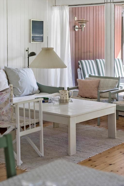 Wenn du das gemütliche, ältere Ferienhaus betrittst, wirst du von einer warmen und einladenden Atmosphäre empfangen. Die offene Küche und der Essbereich schaffen den perfekten Rahmen für gemeinsame Mahlzeiten und entspannte Stunden, in denen du die Erlebnisse des Tages teilen kannst. Im Wohnzimmer kannst du dich auf dem Sofa mit einem guten Buch entspannen oder die Familie zu einem Gesellschaftsspiel vor dem knisternden Kaminofen zusammenbringen. Von hier aus gelangst du direkt auf die überdachte Terrasse, wo du die Abende im Schatten oder im Licht der letzten Sonnenstrahlen genießen kannst.