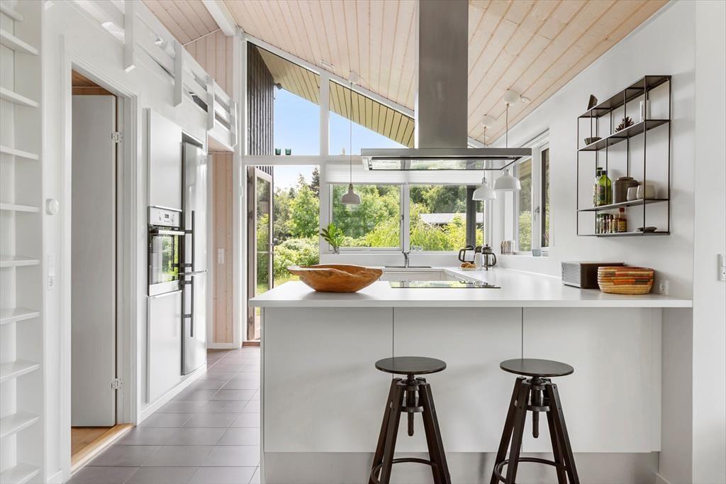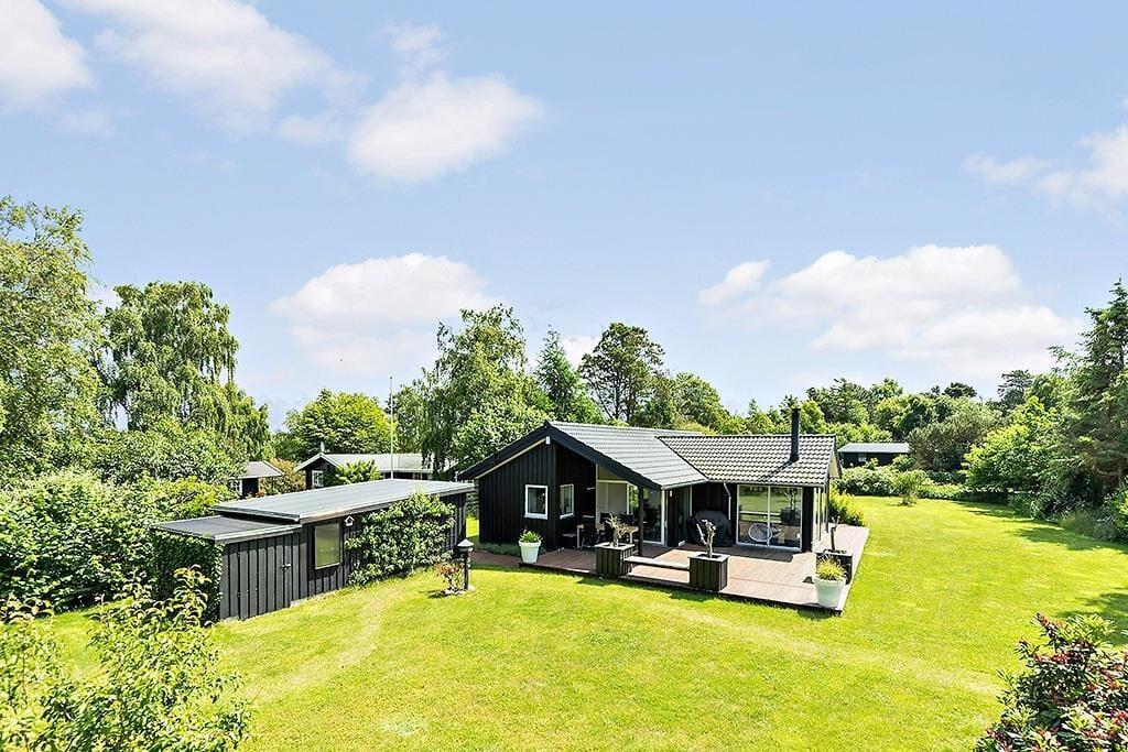 Ein schönes und modernes Sommerhaus aus dem Jahr 2018, das zu purer Urlaubsatmosphäre einlädt. Das Sommerhaus verfügt über eine schöne helle Wohnküche, in der sich die Familie zum Essen und für angenehme Momente treffen kann. Das geräumige Wohnzimmer lädt mit seinem gemütlichen Holzofen und dem Zugang zur Terrasse zum Entspannen ein und lässt die Natur ganz nah kommen.