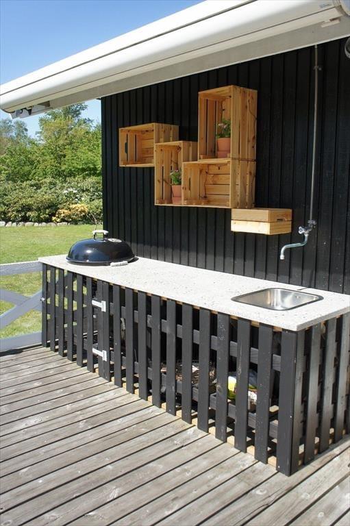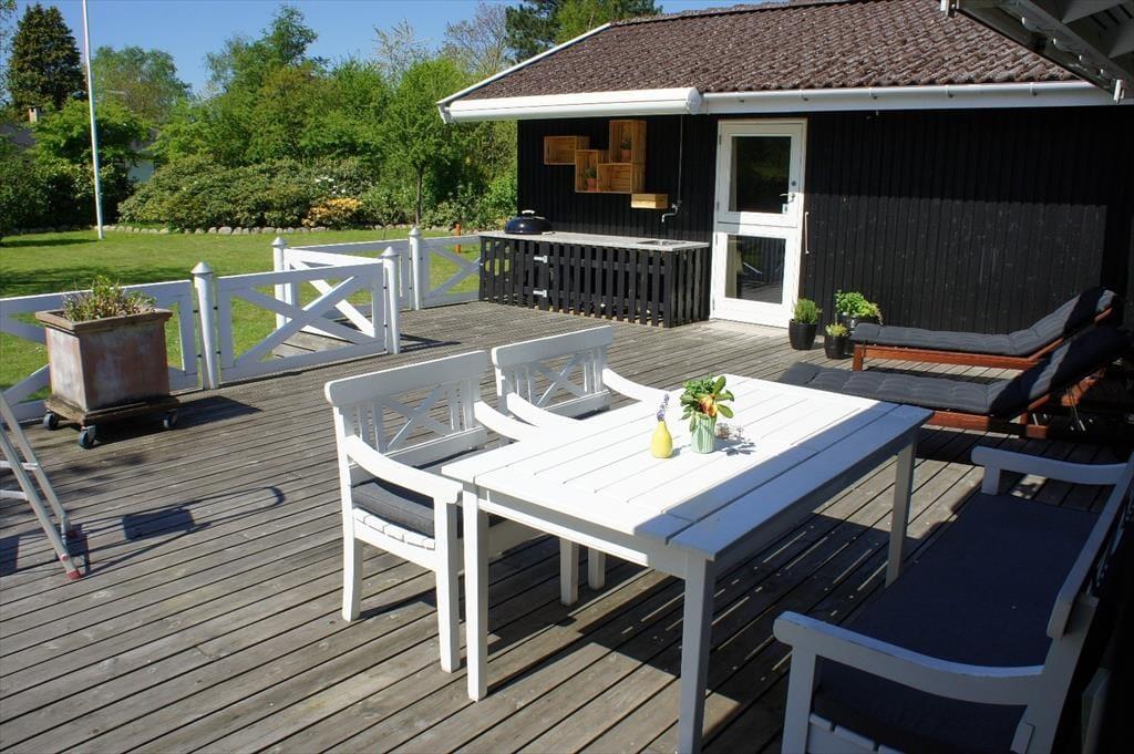 Hier können Sie sich mit der Familie versammeln und die Ruhe in einem gepflegten und abgeschiedenen Garten genießen. Der Garten ist ein kleines Paradies für Entspannung. Der große, geschlossene Garten bietet sowohl Frieden als auch Privatsphäre, und die sonnige Terrasse ist ideal für entspannte Momente mit einem guten Buch oder einer Tasse Kaffee. Mit der Außenküche und dem Gasgrill können Sie köstliche Mahlzeiten unter freiem Himmel zubereiten. Die Außendusche ist perfekt nach einem Tag am Strand. Stellen Sie sich vor, Sie sitzen auf der Terrasse mit der Sonne im Gesicht, einem kühlen Getränk in der Hand, während Sie dem Vogelgezwitscher lauschen und die langen So merabende genießen.
