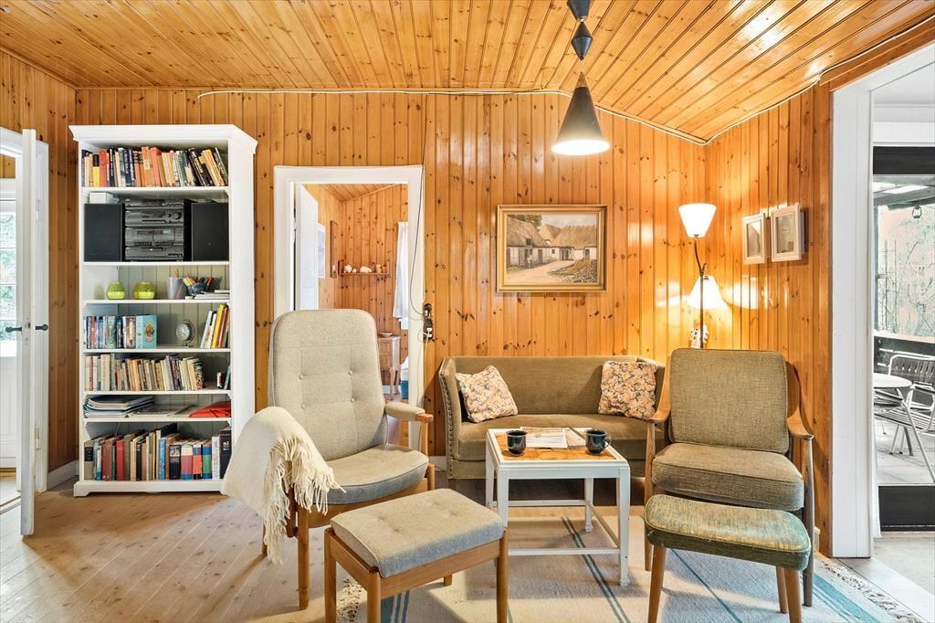 Dieses charmante Ferienhaus in Liseleje lädt zu entspannten Tagen mit der Familie in einer gemütlichen Atmosphäre ein. Das Wohnzimmer erstreckt sich über mehrere Ebenen und bietet gemütliche Ecken, in die du dich mit einem guten Buch zurückziehen oder einfach entspannen kannst. Der Essbereich grenzt an das Wohnzimmer und hat direkten Zugang zur Morgenterrasse, wo du den Tag mit einer frisch gebrühten Tasse Kaffee in der frischen Luft beginnen kannst. Die Küche ist vom Wohnzimmer getrennt und hat ihren eigenen Ausgang zu einem überdachten Innenhof. Die drei Schlafzimmer sorgen für erholsame Nächte nach einem erlebnisreichen Tag.