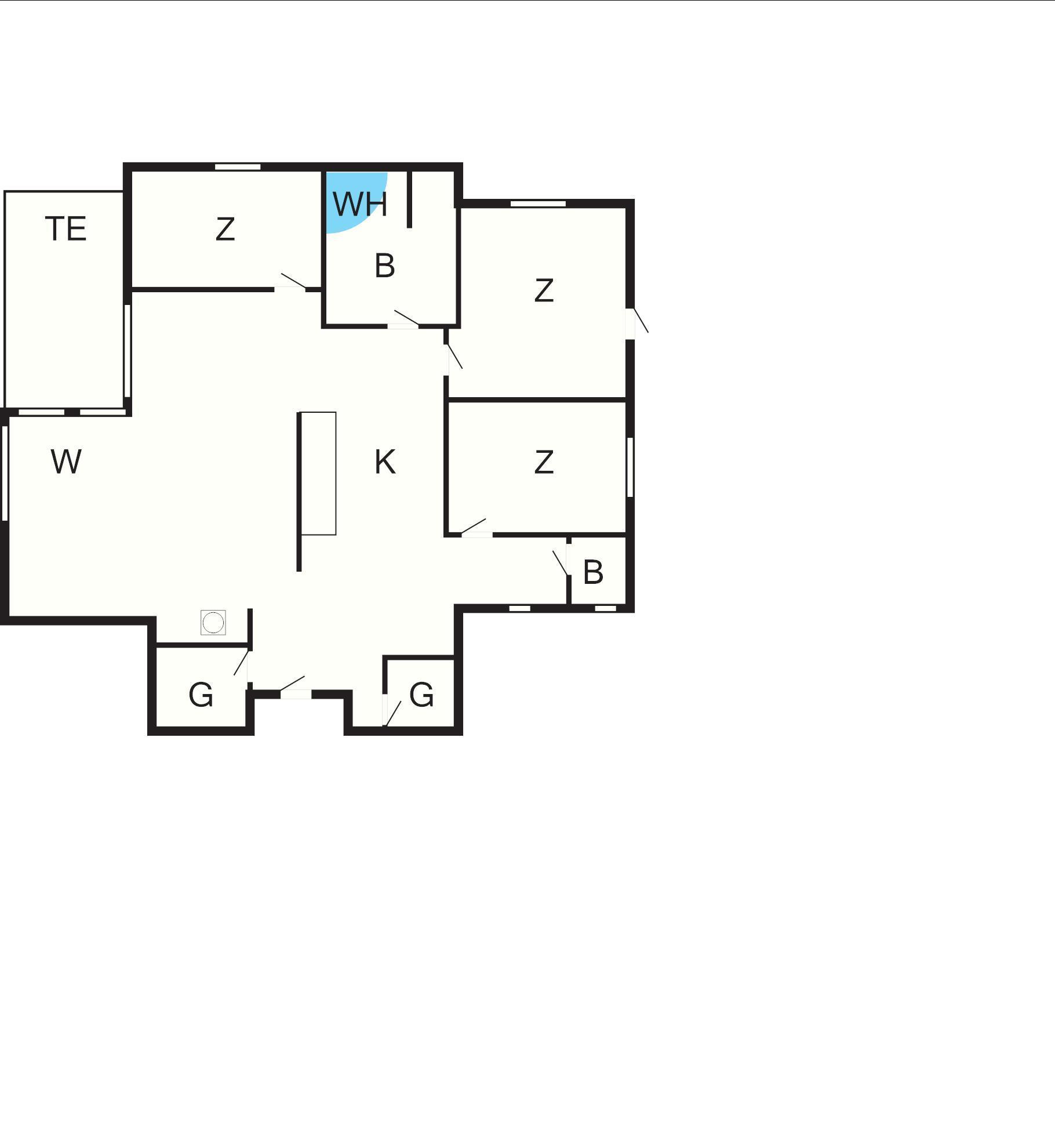Schönes Ferienhaus mit Whirlpool, in reizvoller Naturumgebung bei Lodbjerg Hede gelegen. Die Küche ist offen mit dem Wohnraum verbunden, der eine Stufe tiefer liegt und mit offener Dachkonstruktion und Fliesenfußboden mit Fußbodenheizung gebaut ist.