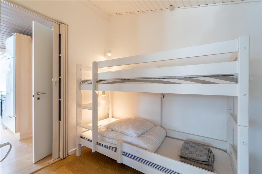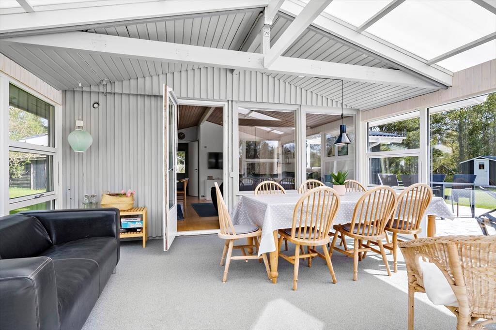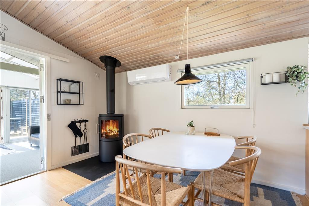 Das 92 m² große Ferienhaus ist schon für sich genommen ein charmantes Gebäude. Zudem gibt es aber zwei Nebengebäude, von denen eines für Übernachtungen genutzt werden kann und das andere ist privat. Im Haus ist genug Platz für sechs Erwachsene und zwei Kinder, und auch zwei Hunde sind willkommen, wenn die vierbeinigen Freunde der Familie mit in den Urlaub kommen. Im Ferienhaus selbst gibt es drei Schlafzimmer, ein Bad mit Sauna und schließlich den Wohnbereich, der aus Wohnzimmer und Küche in offener Verbindung besteht - von hier aus gelangt man in einen großen, gut isolierten Wintergarten. Das ganze Haus ist in hellen Tönen gehalten und mit hohen Decken, Dachfenstern, einem Kaminofen und bequemen Möbeln für schöne Urlaubstage bestens ausgestattet.