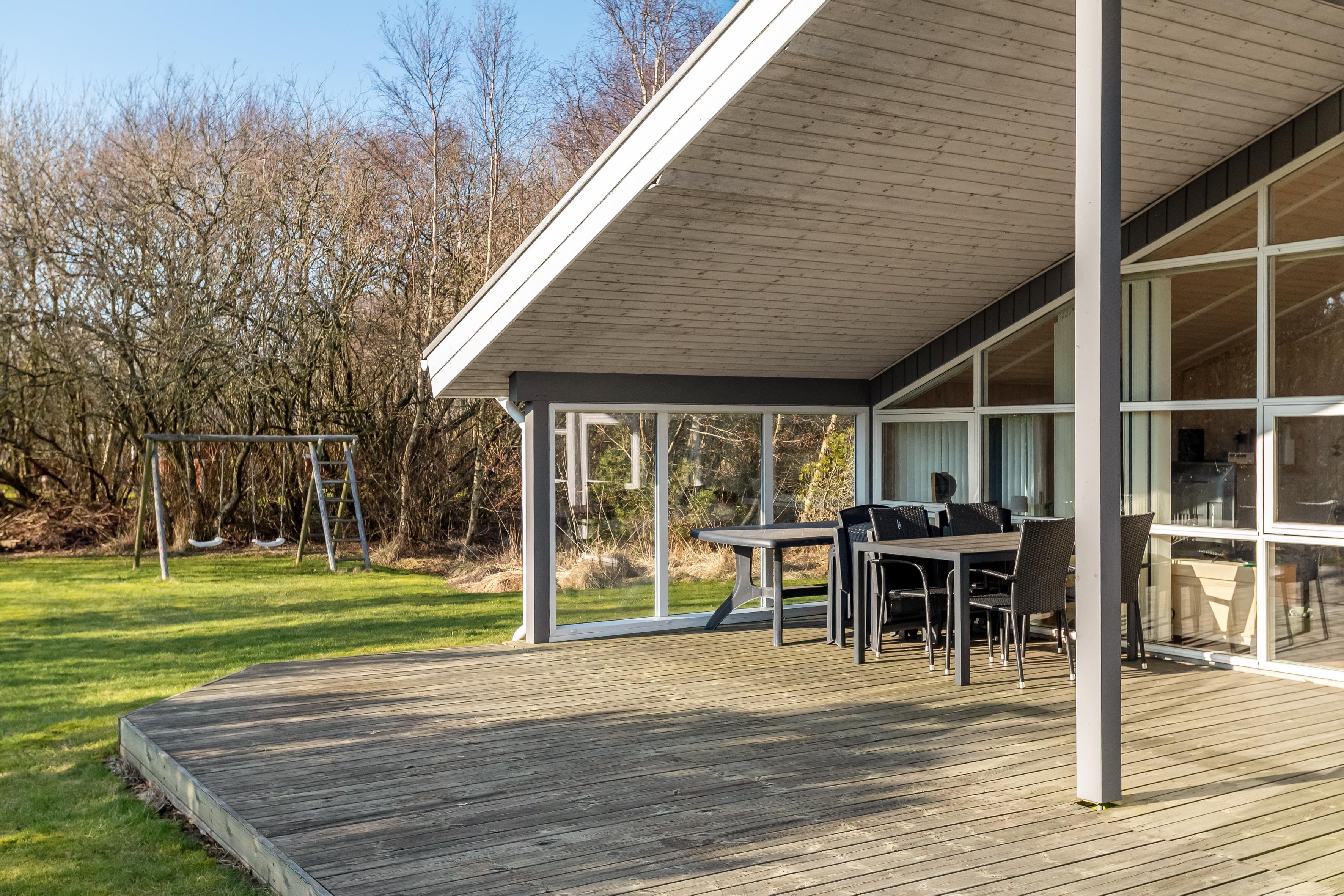 Das Ferienhaus liegt auf einem 2300 m² großen Naturgrundstück. Die Entfernung zur Nordsee beträgt etwa 2000 Meter und zum Fjord 600 Meter, während die nächste Einkaufsmöglichkeit nur 1000 Meter entfernt ist. Zum Haus gehört eine schöne Terrasse von 55 m² sowie eine überdachte Terrasse von 15 m². Auf dem Grundstück befinden sich außerdem ein Geräteraum, eine Schaukel, ein Sandkasten und eine Feuerstelle. Ein Grill steht zur Verfügung und es gibt Parkmöglichkeiten direkt am Haus.