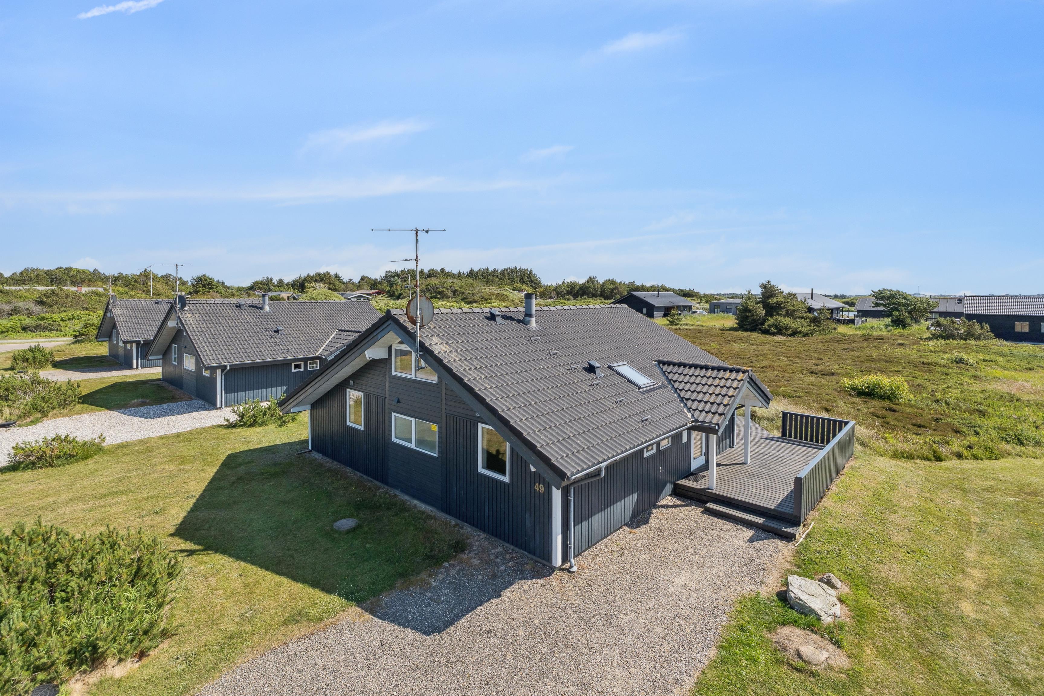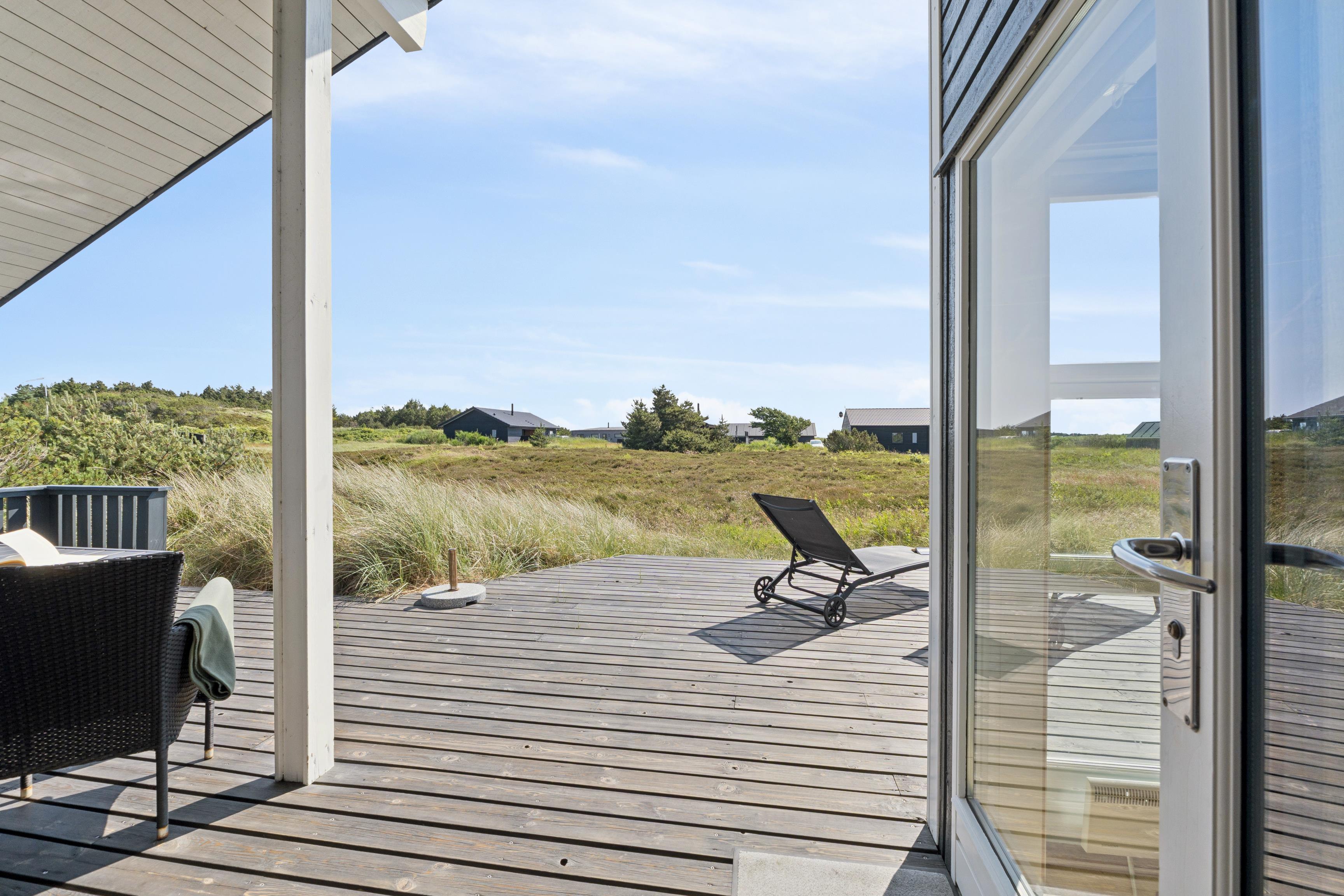 Genießt die Ruhe und schöne Aussicht über die kleine Heidefläche hinter dem Haus bis hin zu den Dünen hinter denen die Nordsee mit seinem breiten Sandstrand auf euch wartet. Søndervig mit seinen vielen Einkaufsmöglichkeiten, Restaurants Cafés und Bekleidungsgeschäften ist in nur knapp 4 km Entfernung zu erreichen. 4 - 6 Personen können hier mit einem Haustier die Seele baumeln lassen.