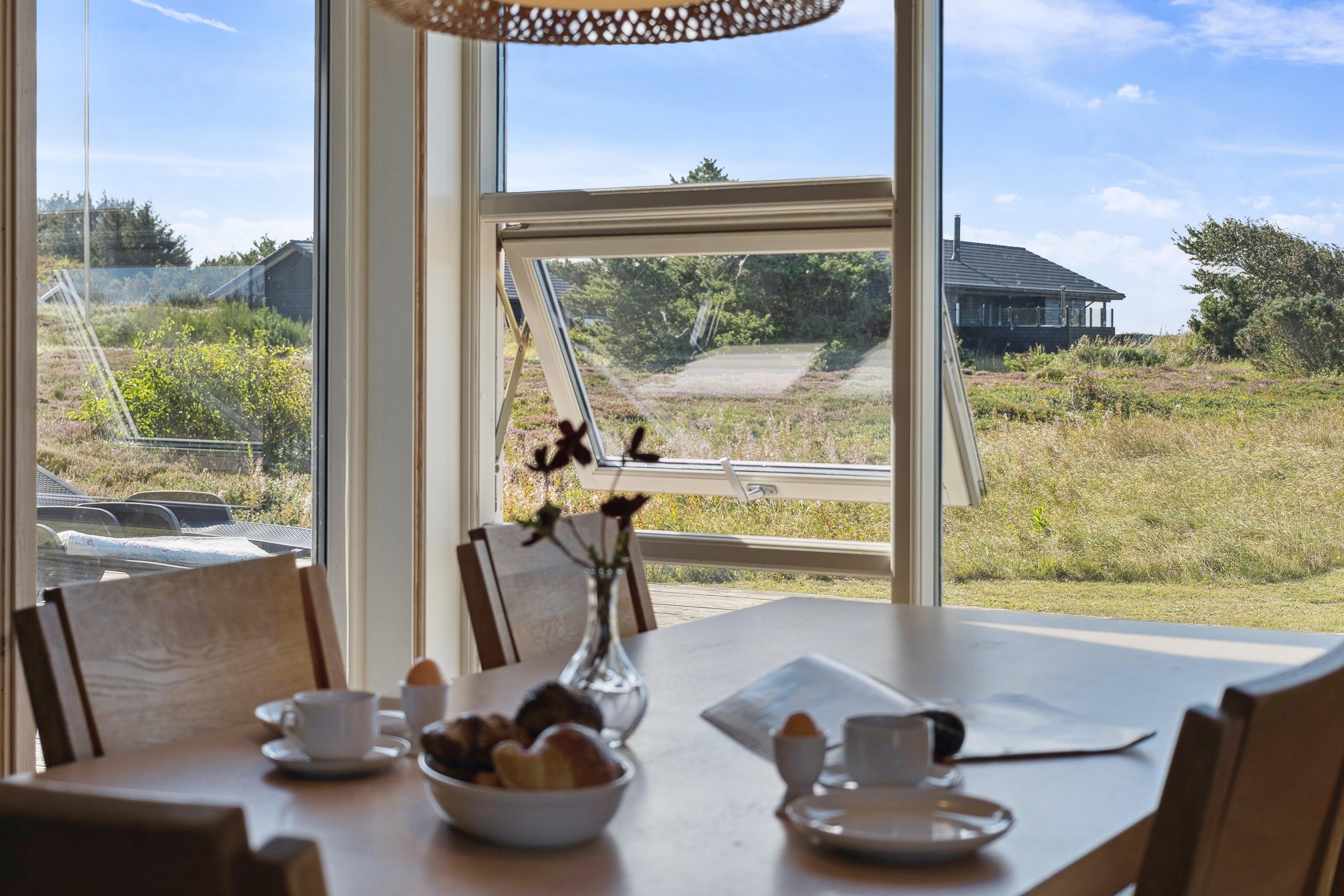 Genießt die Ruhe und schöne Aussicht über die kleine Heidefläche hinter dem Haus bis hin zu den Dünen hinter denen die Nordsee mit seinem breiten Sandstrand auf euch wartet. Søndervig mit seinen vielen Einkaufsmöglichkeiten, Restaurants Cafés und Bekleidungsgeschäften ist in nur knapp 4 km Entfernung zu erreichen. 4 - 6 Personen können hier die Seele baumeln lassen.
