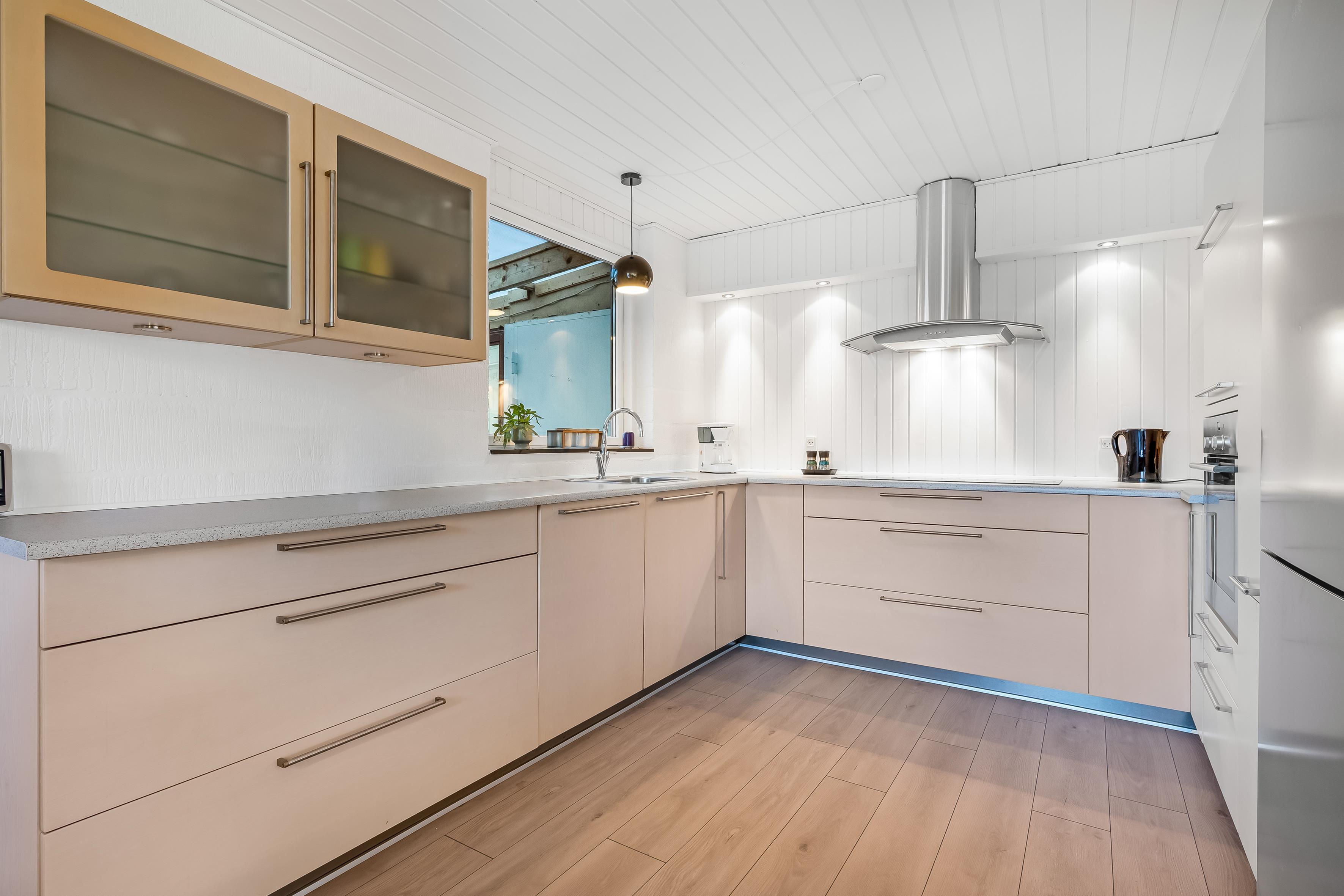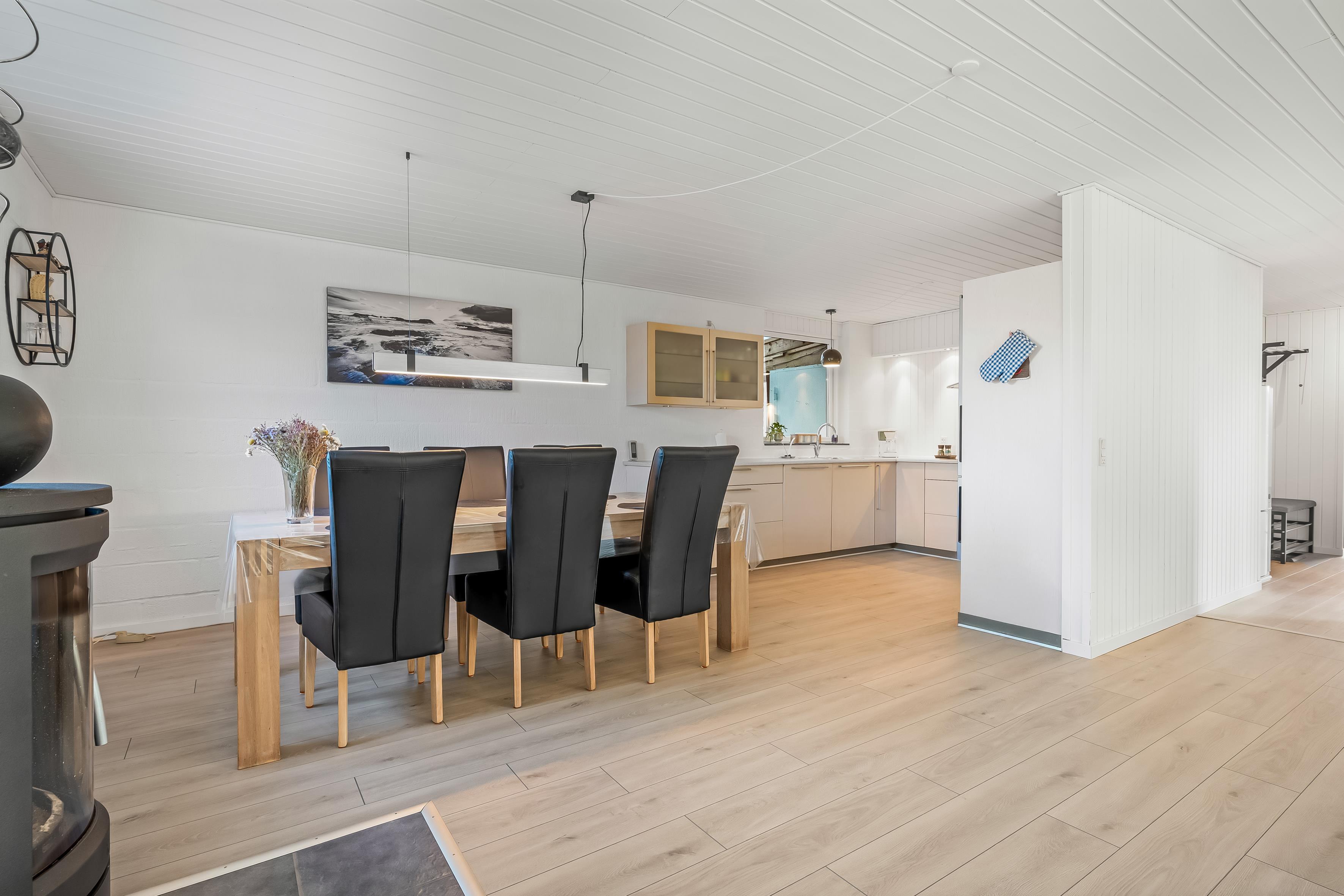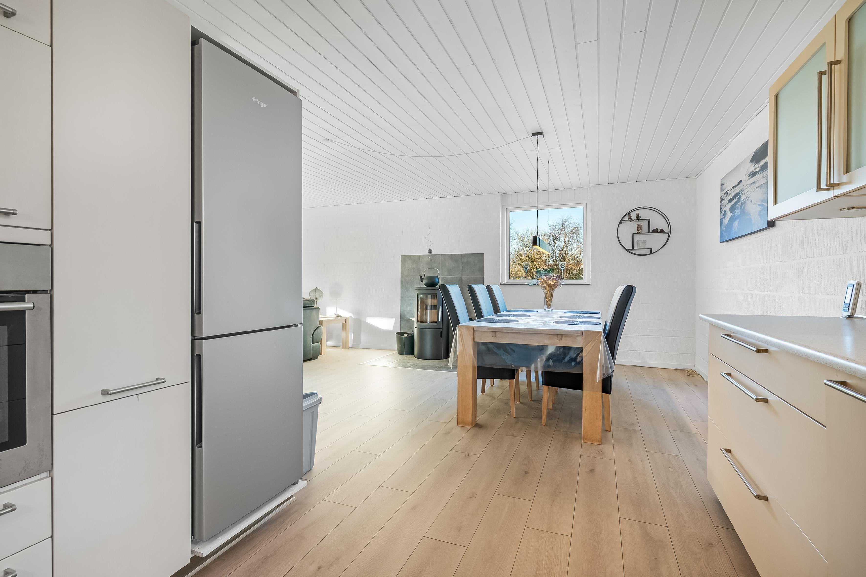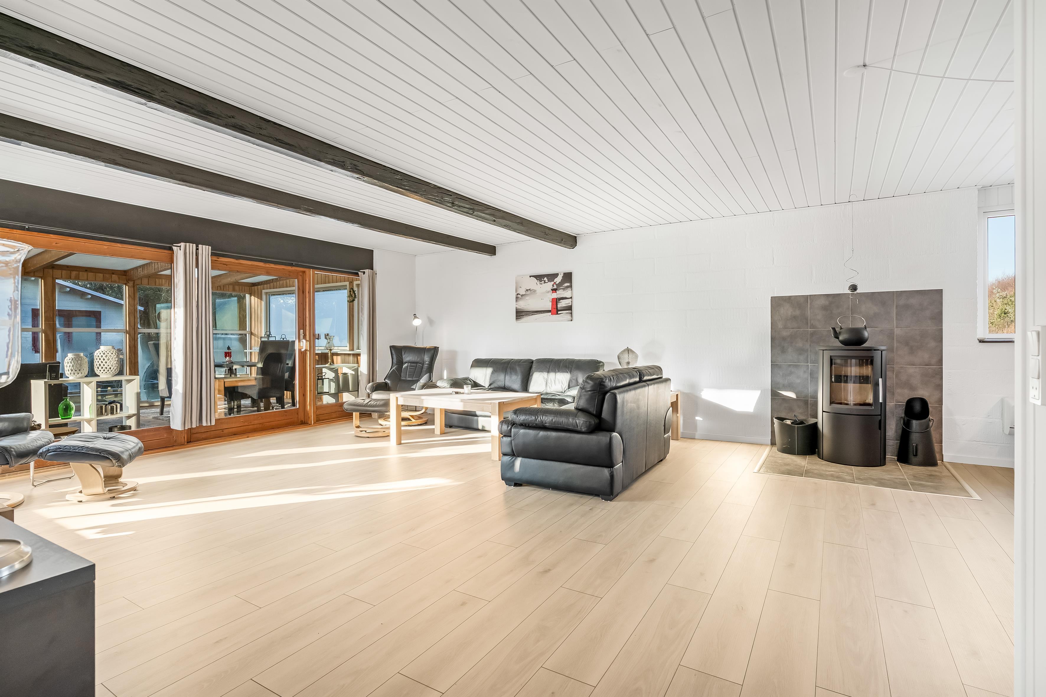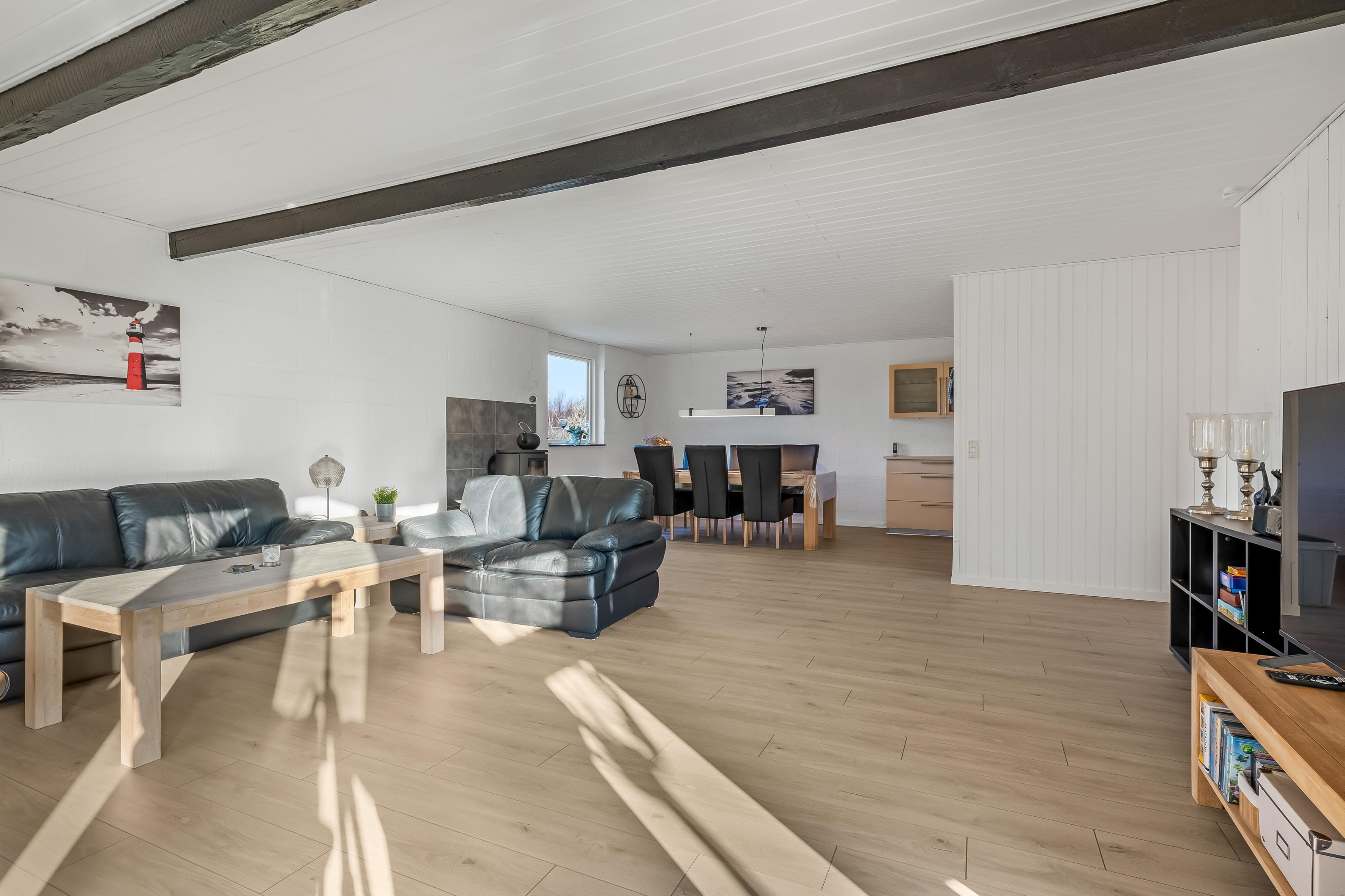 Im Inneren des Hauses gibt es viel Raum für gemeinsames Beisammensein ebenso wie für Rückzugsmöglichkeiten. Küche und Wohnbereich laden zum gemeinsamen Kochen und zu gemütlichen Stunden ein, während die vier Schlafzimmer eine flexible Aufteilung ermöglichen – ideal, wenn Erwachsene und Kinder getrennte Bereiche wünschen. Zusätzlich verfügt das Ferienhaus über ein großes und modernes Badezimmer, das den hohen Wohnkomfort unterstreicht.