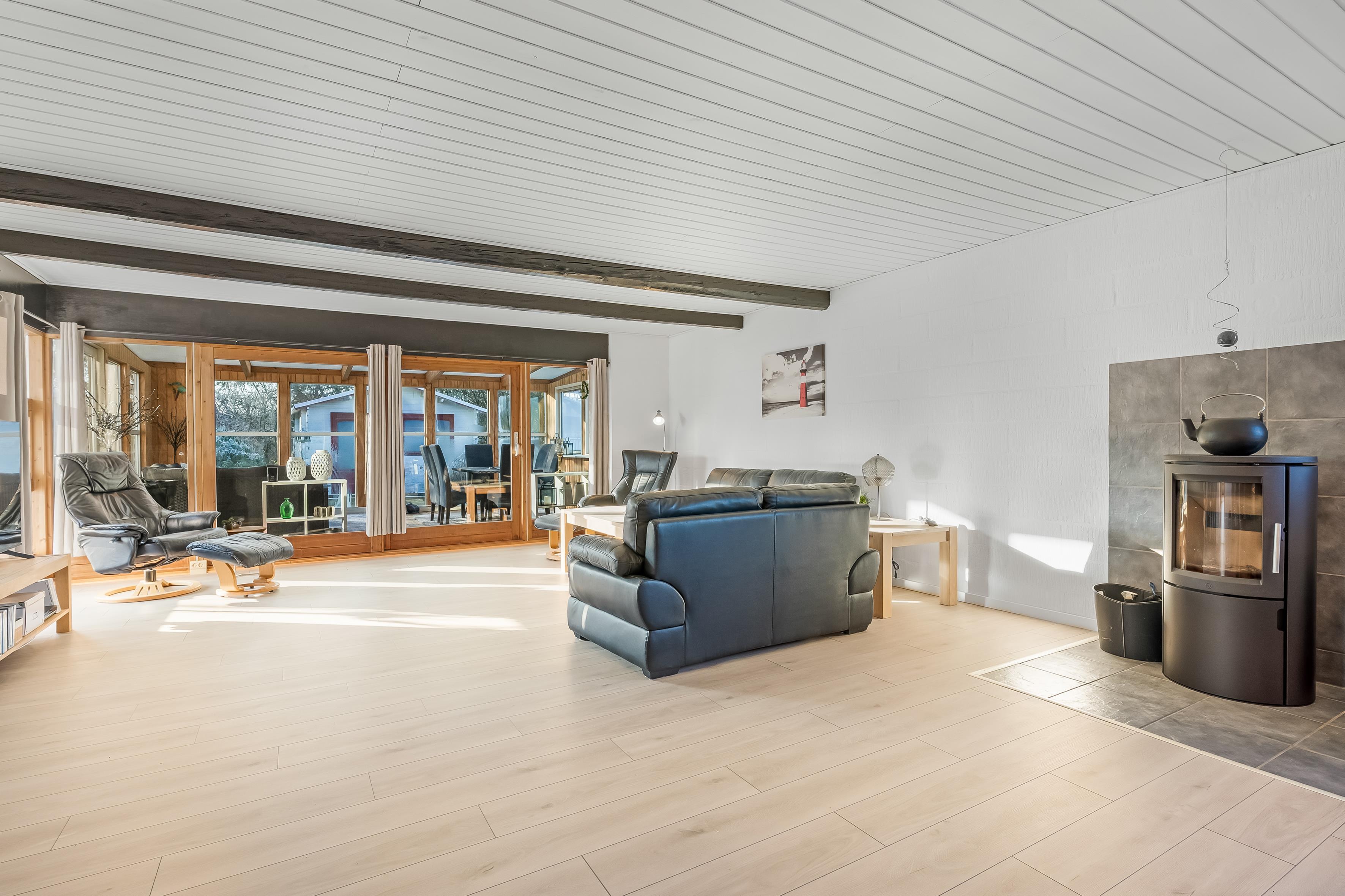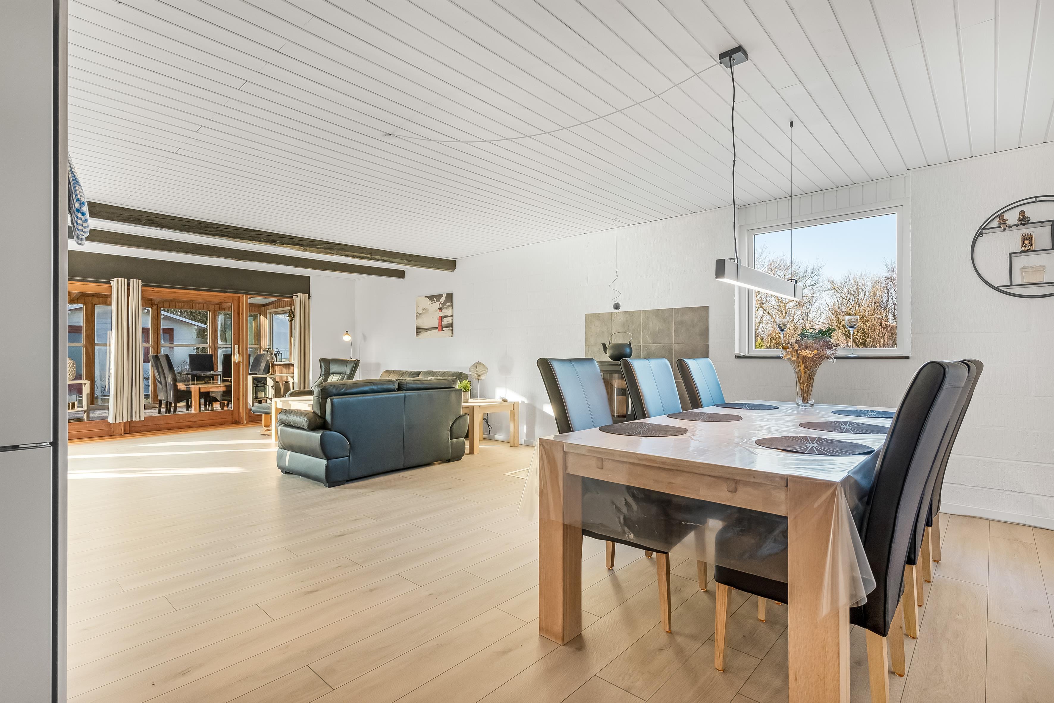 Das Ferienhaus wurde ursprünglich 1972 erbaut und präsentiert sich heute nach einer umfassenden Renovierung im Jahr 2025 hell und einladend. Die Wohnfläche beträgt insgesamt 119 m² und überzeugt mit einer funktionalen und gut durchdachten Raumaufteilung. Der helle Wintergarten verlängert die Sommersaison und dient als zusätzlicher Wohnraum mit Blick auf das große Grundstück.