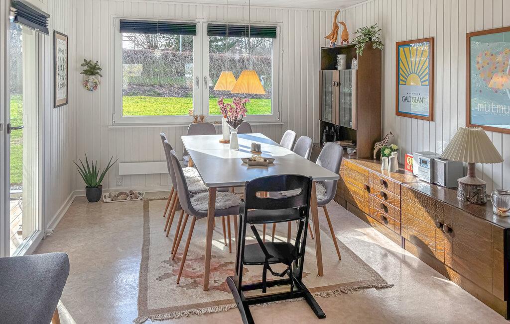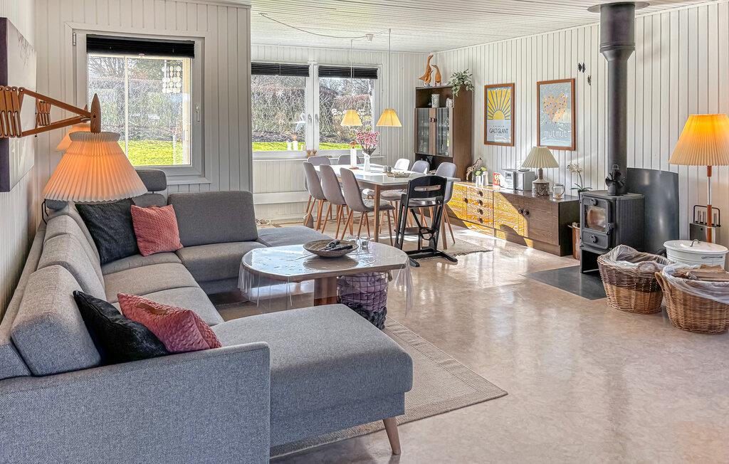 Wenn Sie dieses schöne Ferienhaus betreten, wird Ihnen die Helligkeit und Offenheit des Hauses auffallen. Große Fensterfronten erhellen den Wohn- und Essbereich. Hier können Sie sich wohlfühlen und immer einen Blick in den Garten werfen. Eine schöne, große Holzterrasse, die direkt an das Haus anschließt lädt Sie zum Essen und Sonnenbaden ein. Eine weitere, höhergelegte Terrasse erstreckt sich im Garten und verspricht Ihnen auf dem Sonnenbett Gemütlichkeit und hohen Komfort.