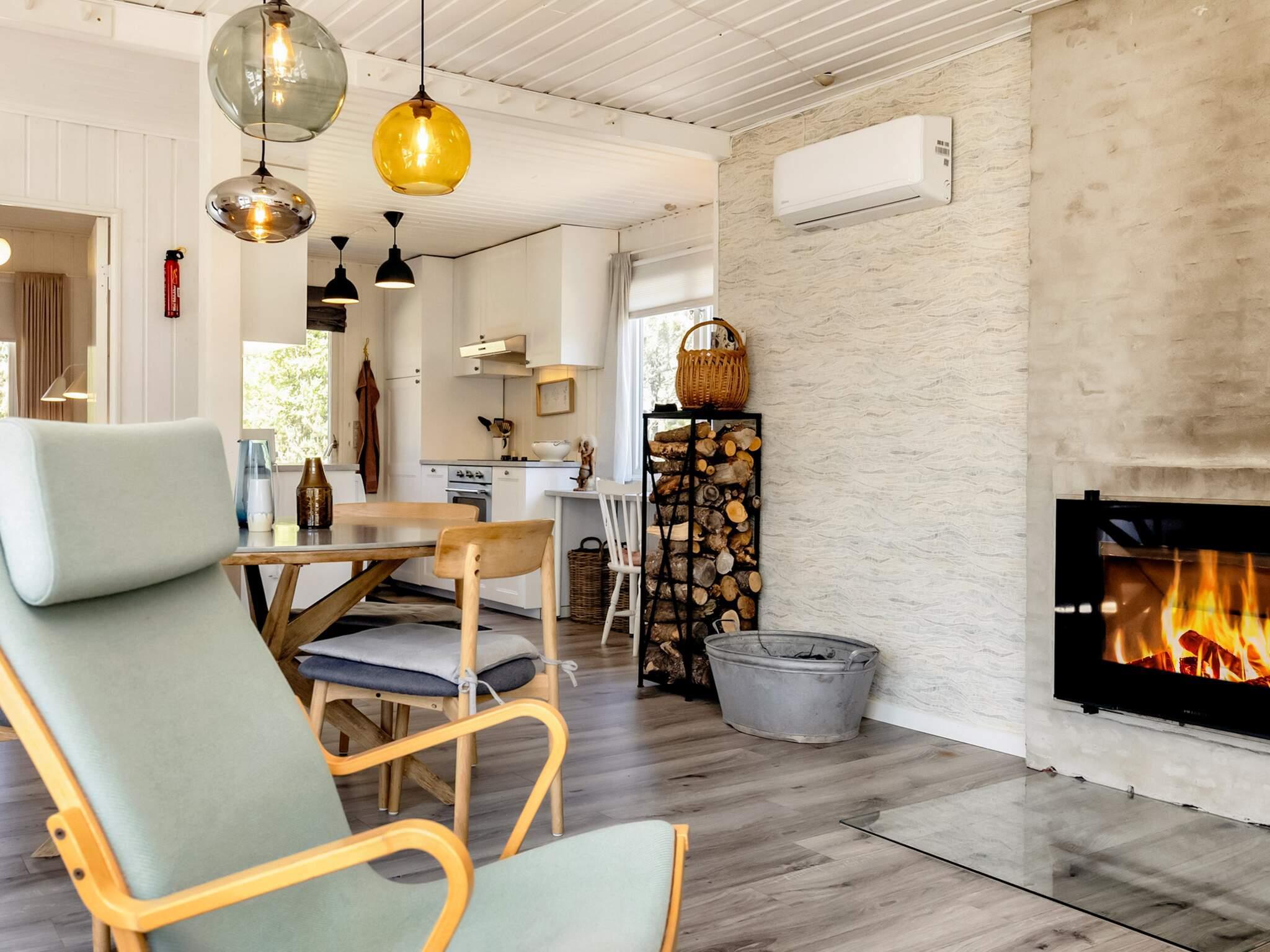 Das Haus ist mit Charme eingerichtet. Offene Küche in Verbindung mit Ess- und Wohnzimmer, außerdem drei gute Schlafzimmer und ein Badezimmer. Das Haus wird mit Strom, Holzofen oder Wärmepumpe beheizt und es besteht die Möglichkeit, Brennholz direkt am Haus zu kaufen. Im Haus zudem 30 mbit Inernetverbindung.
