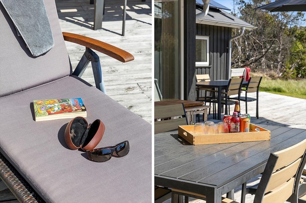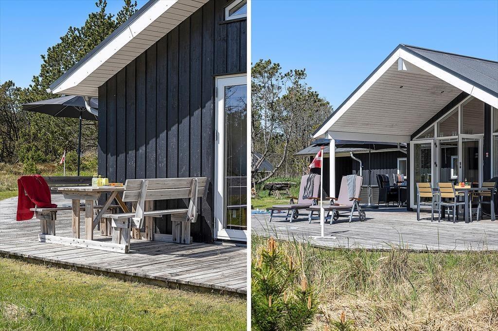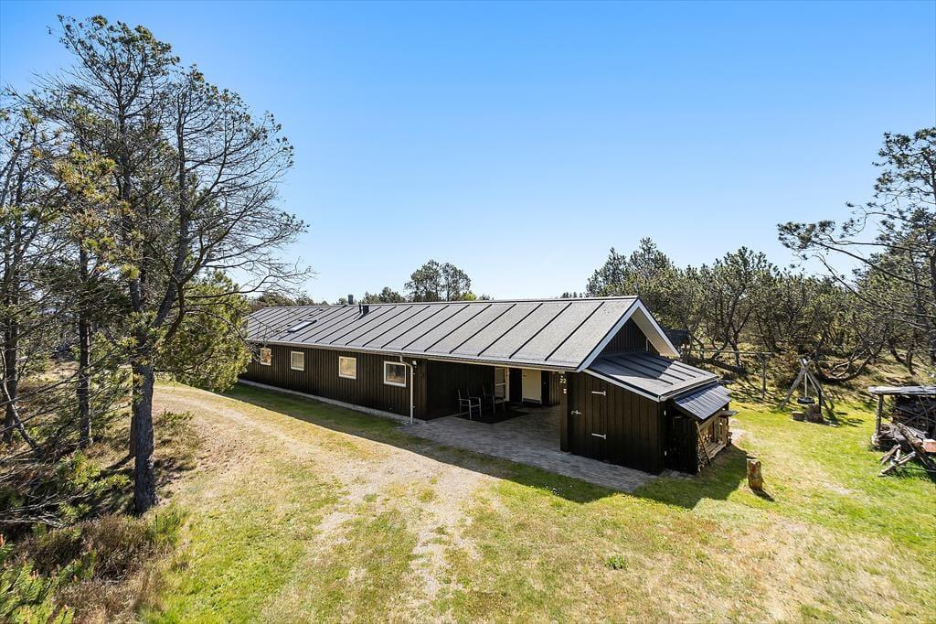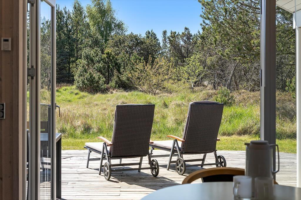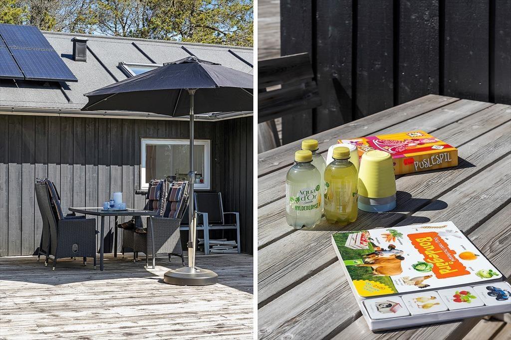 Das Leben unter freiem Himmel steht im Mittelpunkt – das zeigt sich deutlich an den schönen Terrassenbereichen, die das Haus umgeben und das Draußensein vom Morgen bis zum Abend ermöglichen. Hier kannst du deinen Morgenkaffee mit Blick in die Natur genießen, ein Nickerchen im Liegestuhl machen oder das Abendessen auf dem Grill zubereiten, während die Kinder auf dem großen Rasen frei spielen. Es gibt Schaukeln, viel Platz für Ballspiele und zahlreiche Möglichkeiten, je nach Tageszeit und Stimmung einen sonnigen oder schattigen Platz zu finden. Die grüne Umgebung strahlt eine besondere Ruhe aus, und mit Wald, Dünenlandschaft und Vogelgezwitscher im Hintergrund fällt es leicht, zur Ruhe zu kommen und den Moment zu genießen. Die großzügigen Terrassen machen es einfach, bei jedem Wetter draußen zu sein – vielleicht sogar mit einem Glas Wein unter freiem Himmel, während die Abendsonne langsam hinter dem Horizont verschwindet.