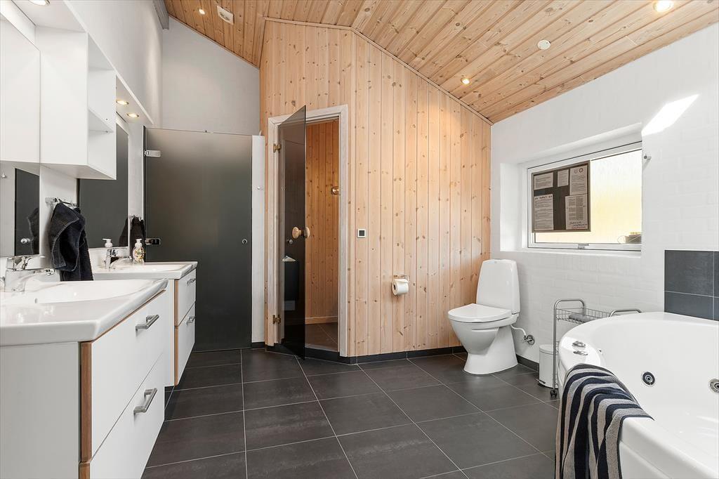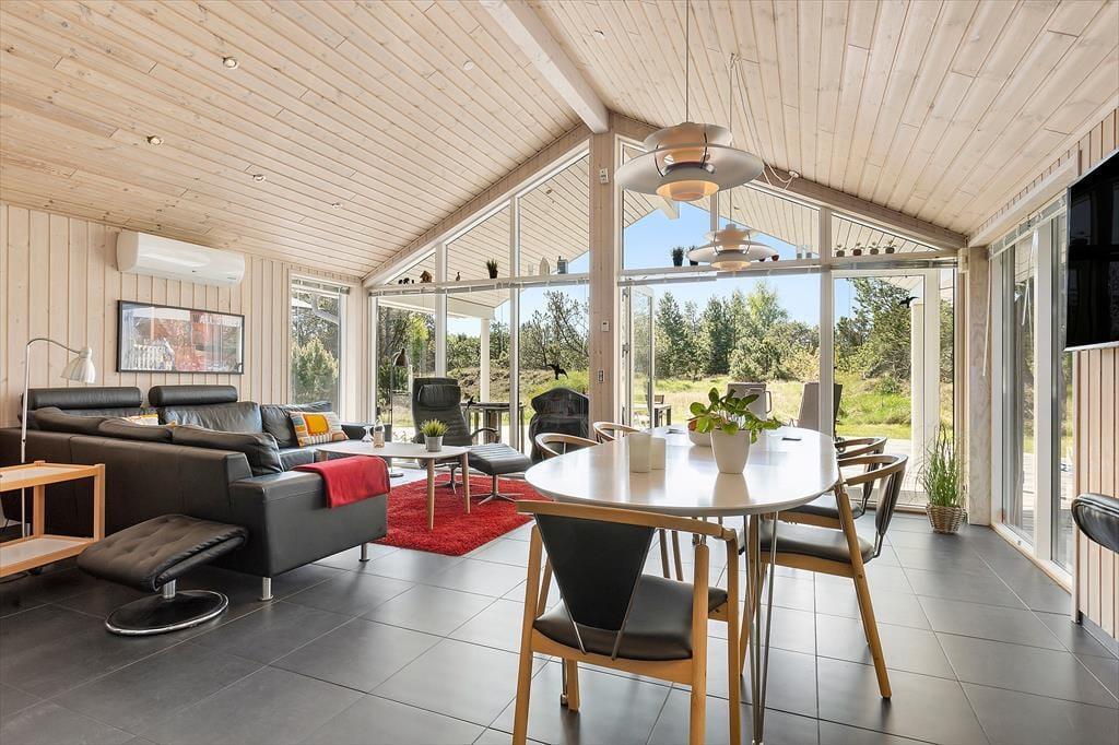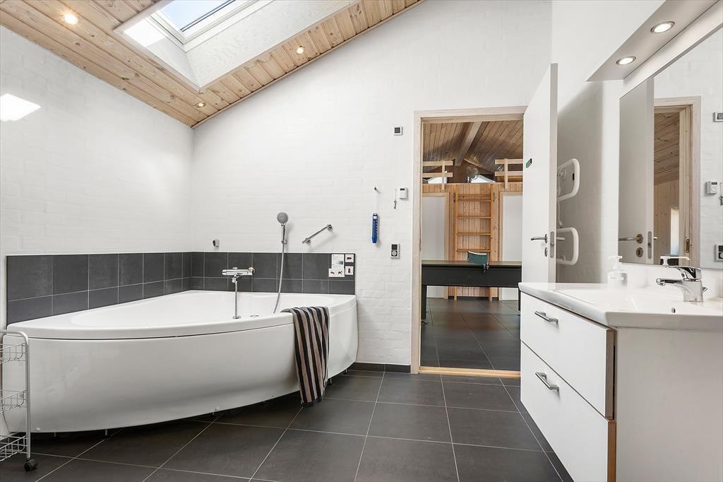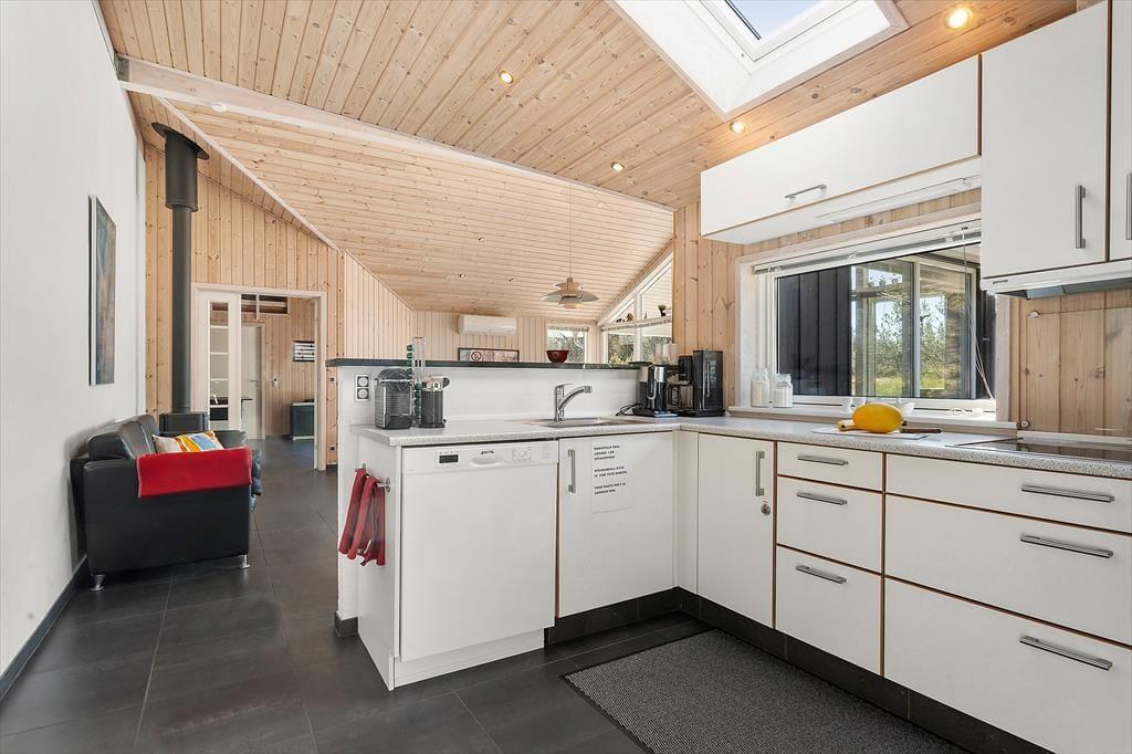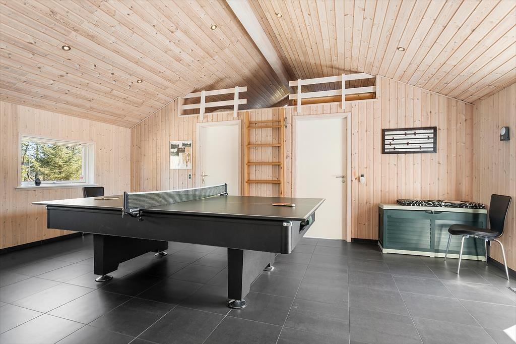 Das Ferienhaus in der Grævlingevej 22 ist die perfekte Wahl für alle, die Ruhe und Wohlbefinden mit geselligen Urlaubsaktivitäten verbinden möchten. Die Einrichtung ist hell, warm und einladend, und das Herz des Hauses ist der großzügige Wohnbereich, in dem Wohnzimmer, Essplatz und Küche zu einem gemütlichen Gemeinschaftsraum verschmelzen. Der Kaminofen spendet wohlige Wärme an kühlen Tagen und sorgt für eine behagliche Atmosphäre, wenn du dich mit einem Glas Wein auf dem Sofa entspannst und das Brettspiel auf dem Tisch beginnt. Im Aktivitätsraum des Hauses kann die ganze Familie Tischtennis oder Billard spielen, und wenn es Zeit für Entspannung ist, erwarten dich Whirlpool und Sauna. Die Schlafzimmer sind gemütlich eingerichtet, und der durchdachte Grundriss bietet sowohl Raum für Gemeinsamkeit als auch für Privatsphäre – ideal für Familien ebenso wie für befreundete Paare.