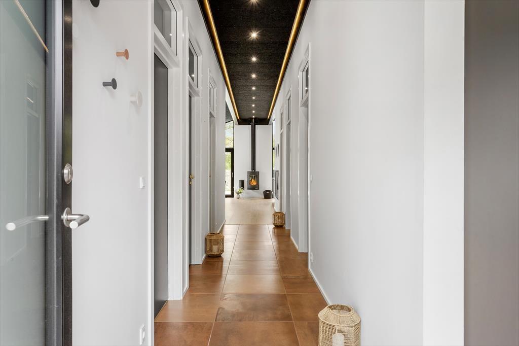 Die herrlichen Außenbereiche bieten den perfekten Rahmen für das Leben im Freien. Auf der großen Holzterrasse finden Sie sonnige sowie windgeschützte Ecken – ideal für Kaffee am Vormittag, Sonnenbaden oder Grillabende unter freiem Himmel. Das grüne Grundstück liegt idyllisch und ruhig in der Nähe des Waldes, bietet Privatsphäre und ein naturnahes Erlebnis. Kinder können frei spielen, während die Erwachsenen die Aussicht auf Baumwipfel und Vogelgezwitscher genießen.