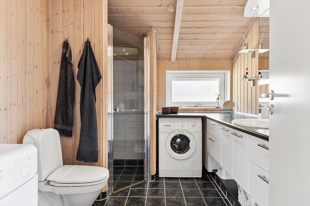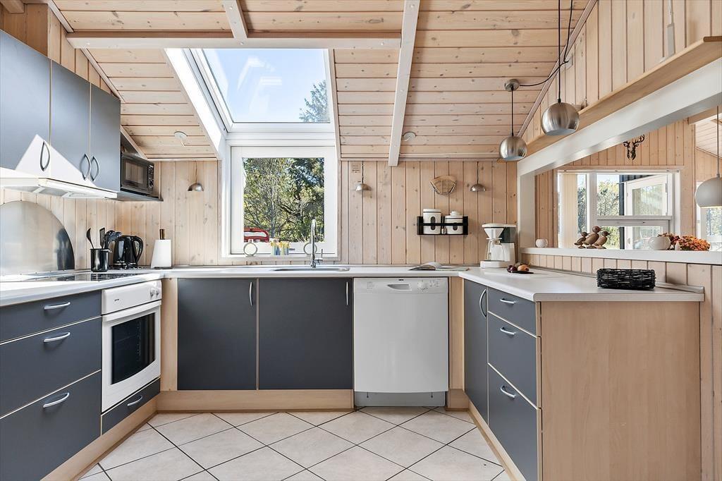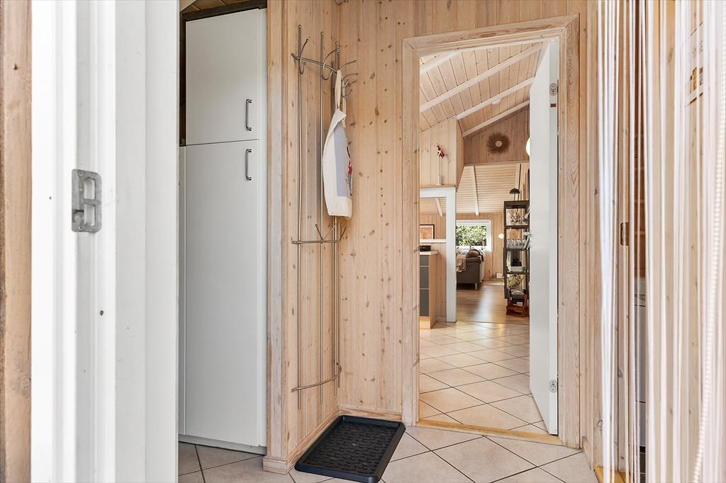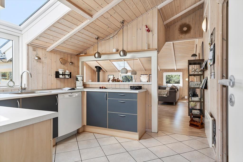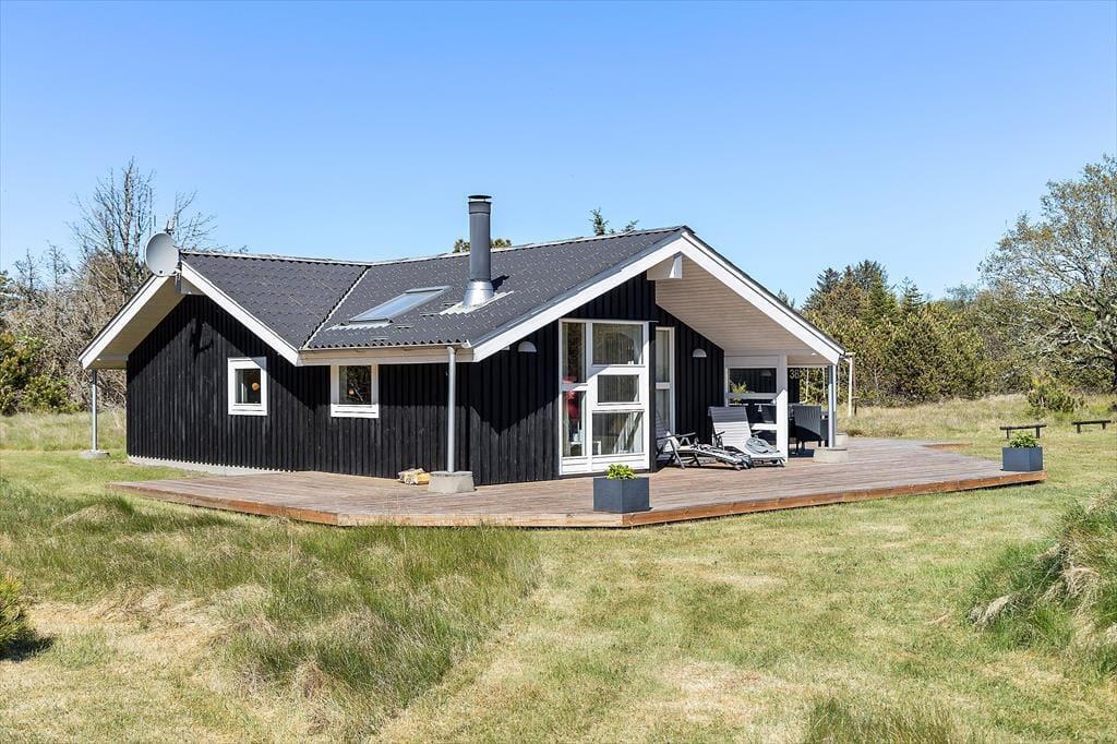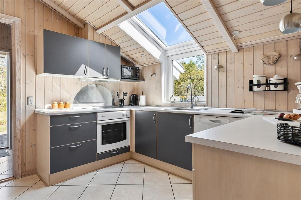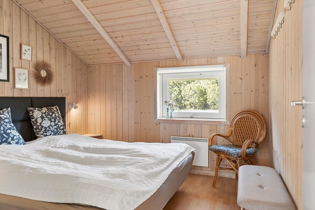 Wenn du das Ferienhaus in der Oksevej 38 betrittst, spürst du sofort, wie sich eine wohlige Ruhe ausbreitet. Das liegt sowohl an der friedlichen Umgebung draußen als auch an der hellen und luftigen Atmosphäre im Inneren. Hohe Decken und große Fensterfronten holen die Natur ins Haus und schaffen ein Gefühl von Weite und Leichtigkeit. Die Einrichtung ist schlicht und warm zugleich – besonders der Wohnbereich lädt dazu ein, einfach die Seele baumeln zu lassen: vielleicht vor dem knisternden Kaminofen, während der Regen sanft gegen die Scheiben trommelt, oder gemütlich auf dem Sofa mit einem Kartenspiel und fröhlichem Gelächter. Das Tageslicht flutet den Raum über viele Stunden hinweg, und die verschiedenen Zonen im Wohnbereich bieten sowohl Platz für gemeinsames Beisammensein als auch ruhige Ecken für Rückzug und Entspannung. Hier kannst du mit deinen Liebsten Urlaub machen – und dich vom ersten Moment an wie zu Hause fühlen.