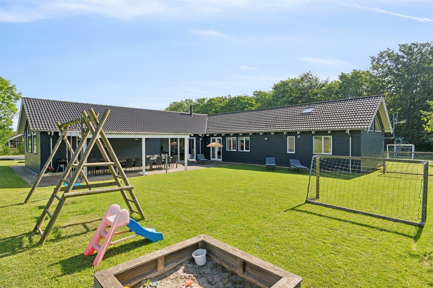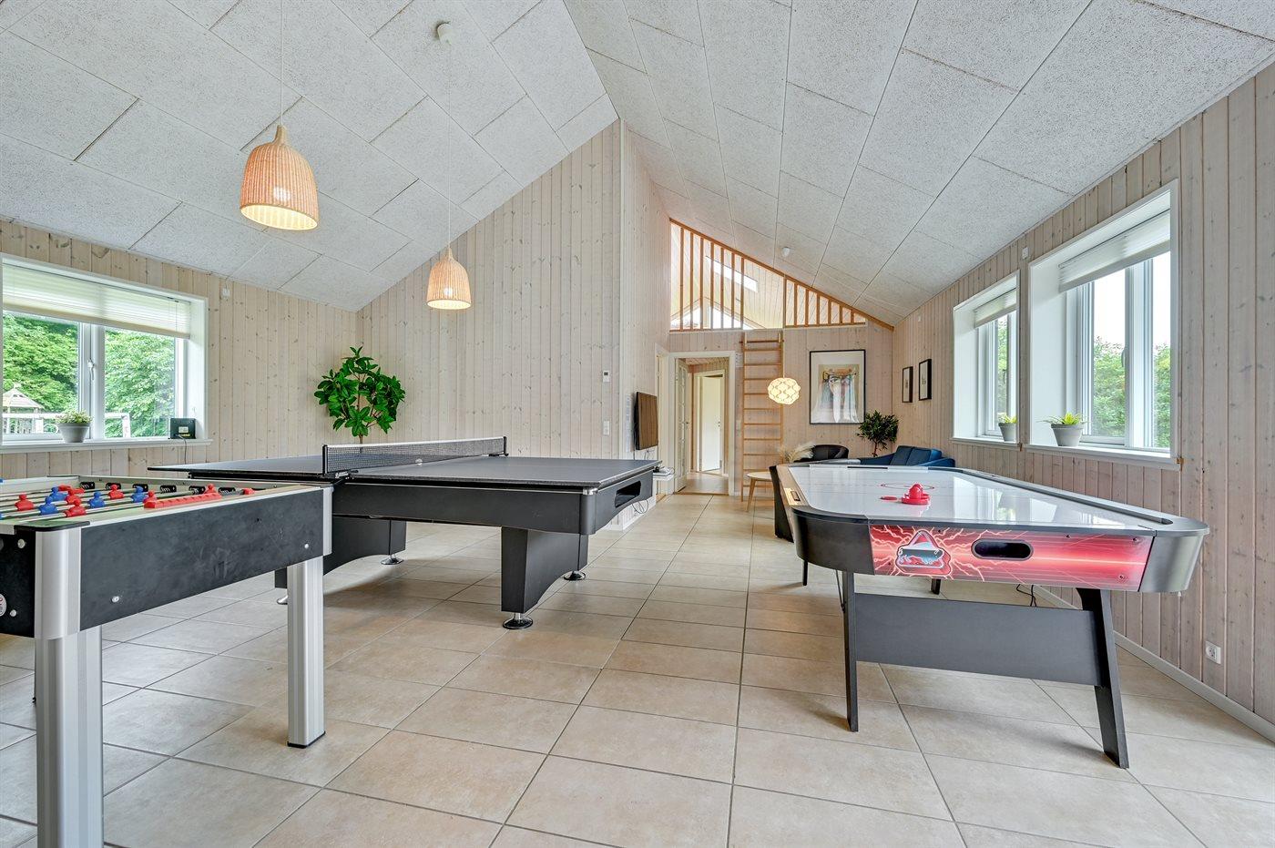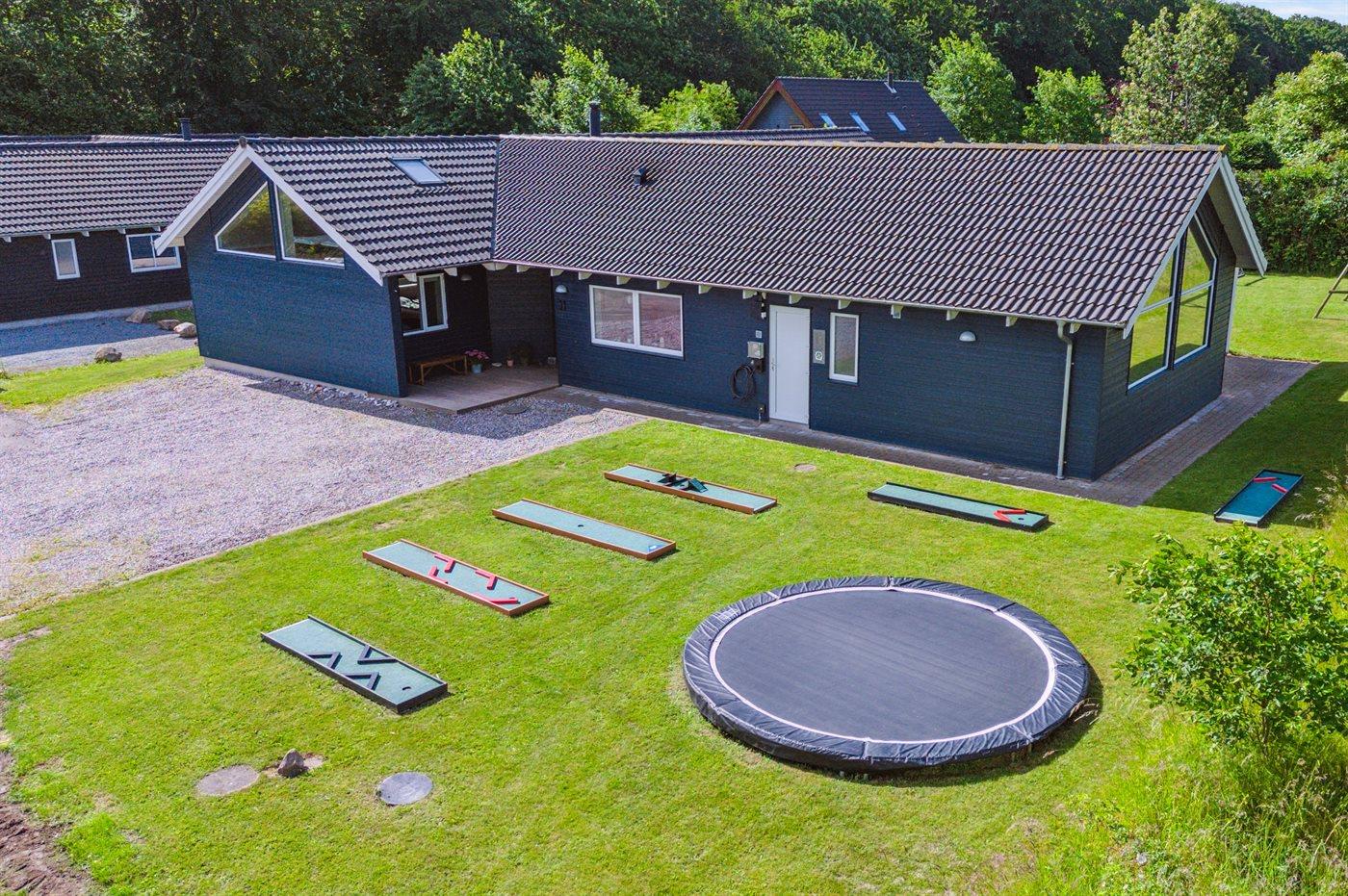 Im schönen Lohals findet man dieses große Ferienhaus mit Aktivitäten für die ganze Familie, drinnen und draußen. Hier gibt es einen schönen beheizten Innenpool, ein Spa und eine Sauna sowie einen Aktivitätsraum mit unter anderem einem Billardtisch und einem Tischfußball. Im Garten gibt es einen eigenen Minigolfplatz und eine schöne, ungestörte und teilweise überdachte Terrassenfläche. Das große Haus, das sich auch für mehrere Familien eignet, verfügt neben den Schlafzimmern auch über zwei Schlafböden mit jeweils 2 Schlafplätzen. Das Haus wird mit Fernwärme beheizt und ist ganzjährig isoliert, so dass der Energieverbrauch im Vergleich zu Häusern mit reiner Elektroheizung gering sein wird.