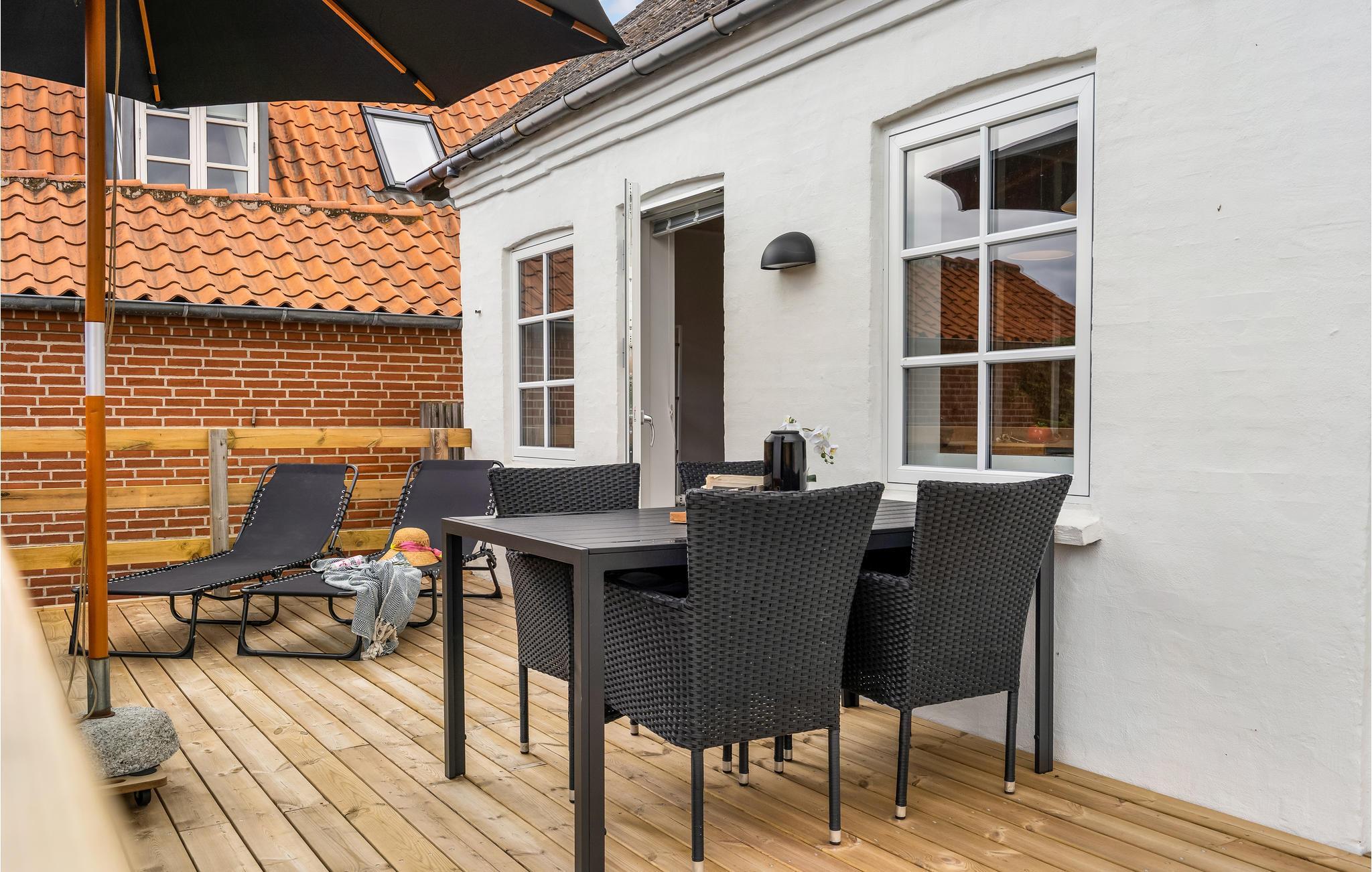 Das schöne Ferienhaus befindet sich in der gemütlichen Hafenstadt Lohals. Zusammen mit Ihrer Familie und Ihren geliebten Haustieren werden Sie sich hier sofort wie zu Hause fühlen und eine tolle Zeit haben. Das Haus erstreckt sich über zwei Etagen, und die Großen unter Ihnen müssen im ersten Stock aufpassen, wo die Deckenhöhe teilweise 1,9 m beträgt. Vom ersten Stock aus haben Sie das ganze Jahr über einen Panoramablick auf das Wasser und die schönsten Sonnenuntergänge. Der Garten und die Holzterrasse laden zum Entspannen und Genießen der Mahlzeiten ein.