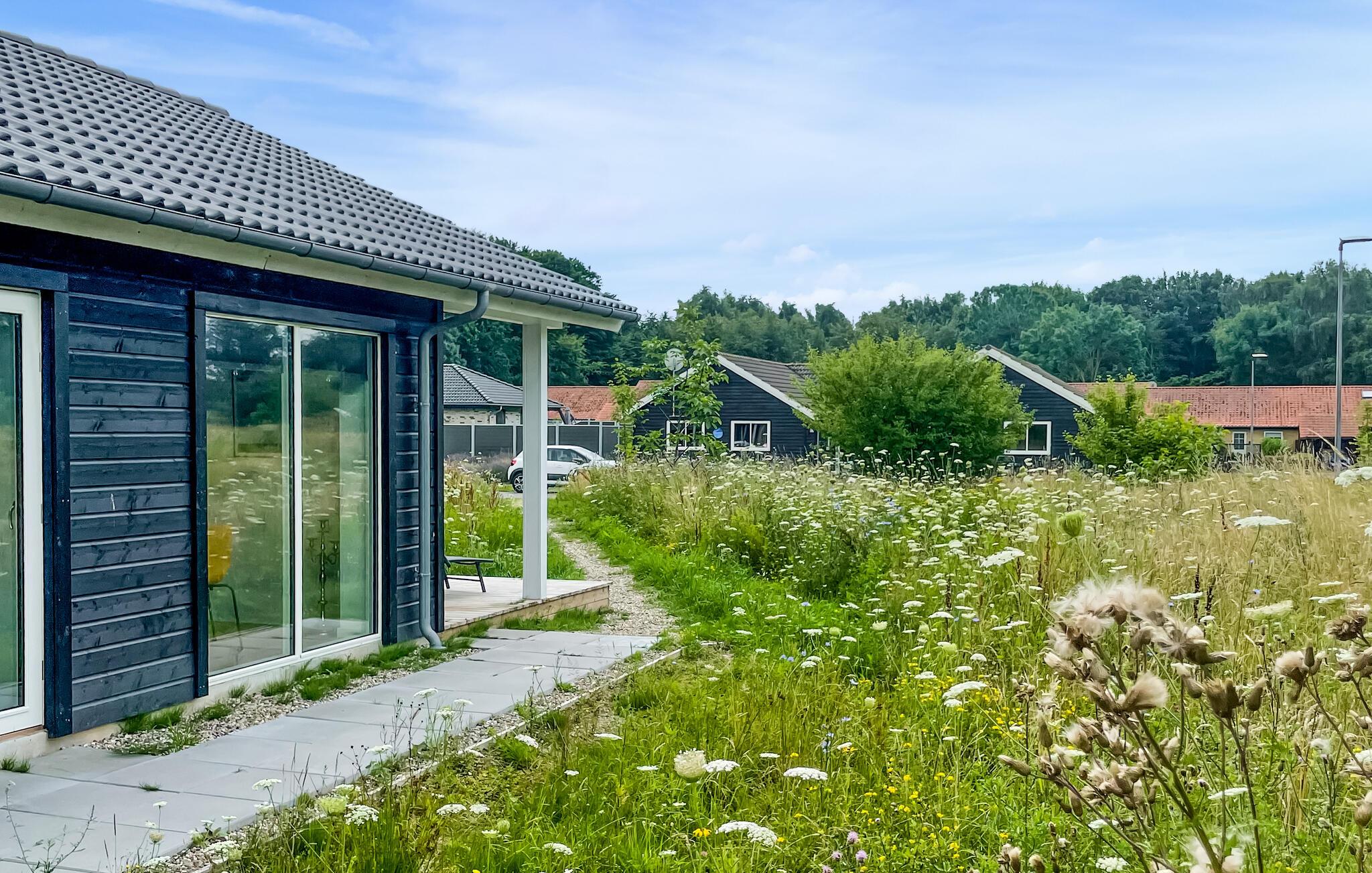 Das moderne Haus liegt auf einem schönen Grundstück mit einer Terrasse und Liegestühlen, auf denen Sie die sonnigen Tage in vollen Zügen genießen können. Zünden Sie abends den Grill an und lassen Sie den Tag mit saftigen Steaks und einem guten Glas Wein in der Abendsonne ausklingen. Genießen Sie dabei auch das idyllische Naturgrundstück mit wilder Vegetation, hohem Gras und schönen Blumen.