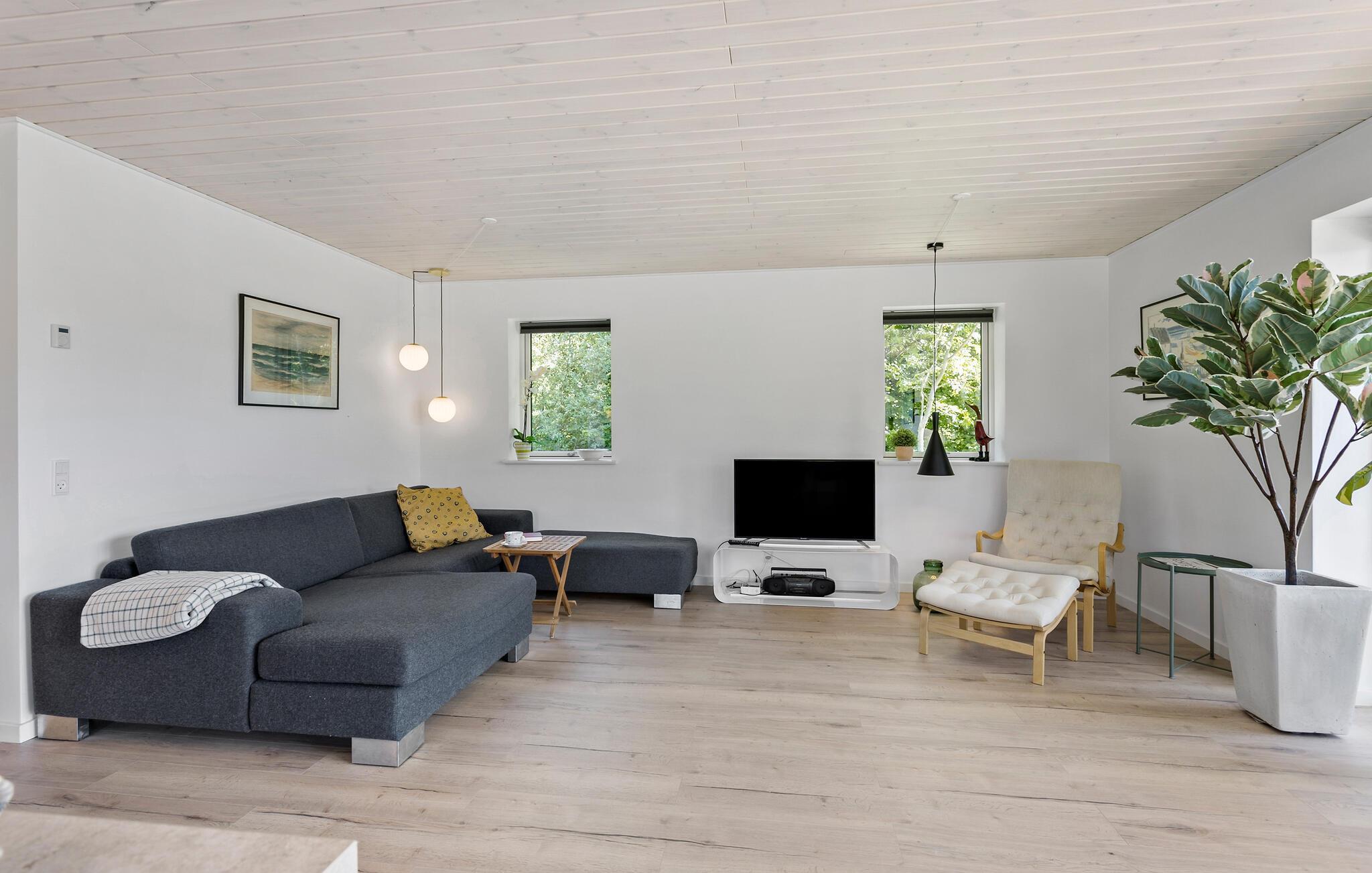 Platz für eine große Familie bietet Ihnen dieses Ferienhaus im Norden der Insel Langeland. Das Haus ist hell eingerichtet und bietet ein offenes Wohnkonzept und große Fenster, die von mehreren Seiten Licht in das geräumige Wohnzimmer lassen und eine schöne Aussicht auf die Landschaft bieten. Entspannen Sie in der komfortablen Sofaecke und lassen Sie die Seele baumeln. Die offene Küche lädt zum gemeinsamen Kochen ein und bietet alles, was Sie für Ihre Mahlzeiten benötigen. Speisen Sie am Esstisch mit Blick auf den Garten. Ein Whirlpool sorgt darüber hinaus für Entspannung und Wohlfühlstimmung.