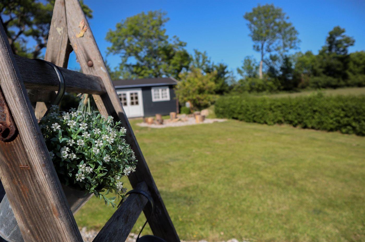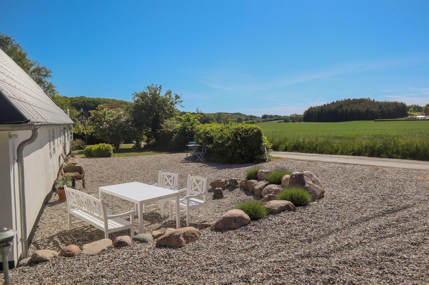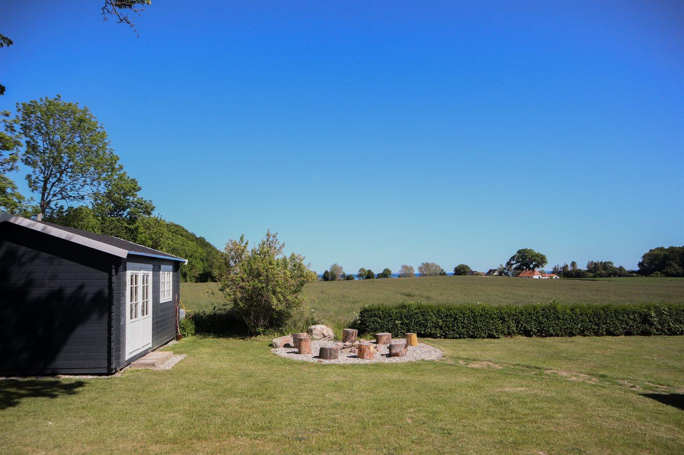 Gemütliches ehemaliges Bauernhaus mit Meerblick, Terrasse und Hobbyraum nahe Rudkøbing, ideal für erholsame Ferien in naturnaher Umgebung.
