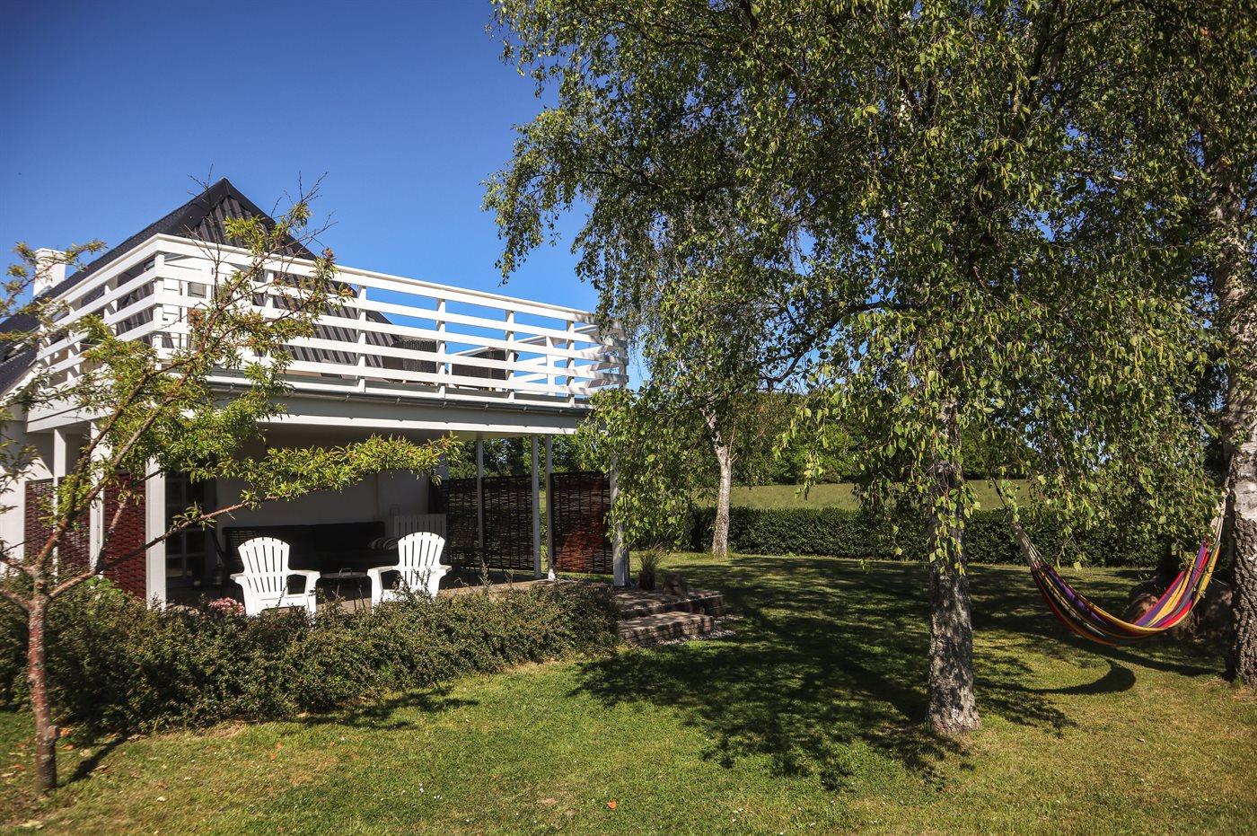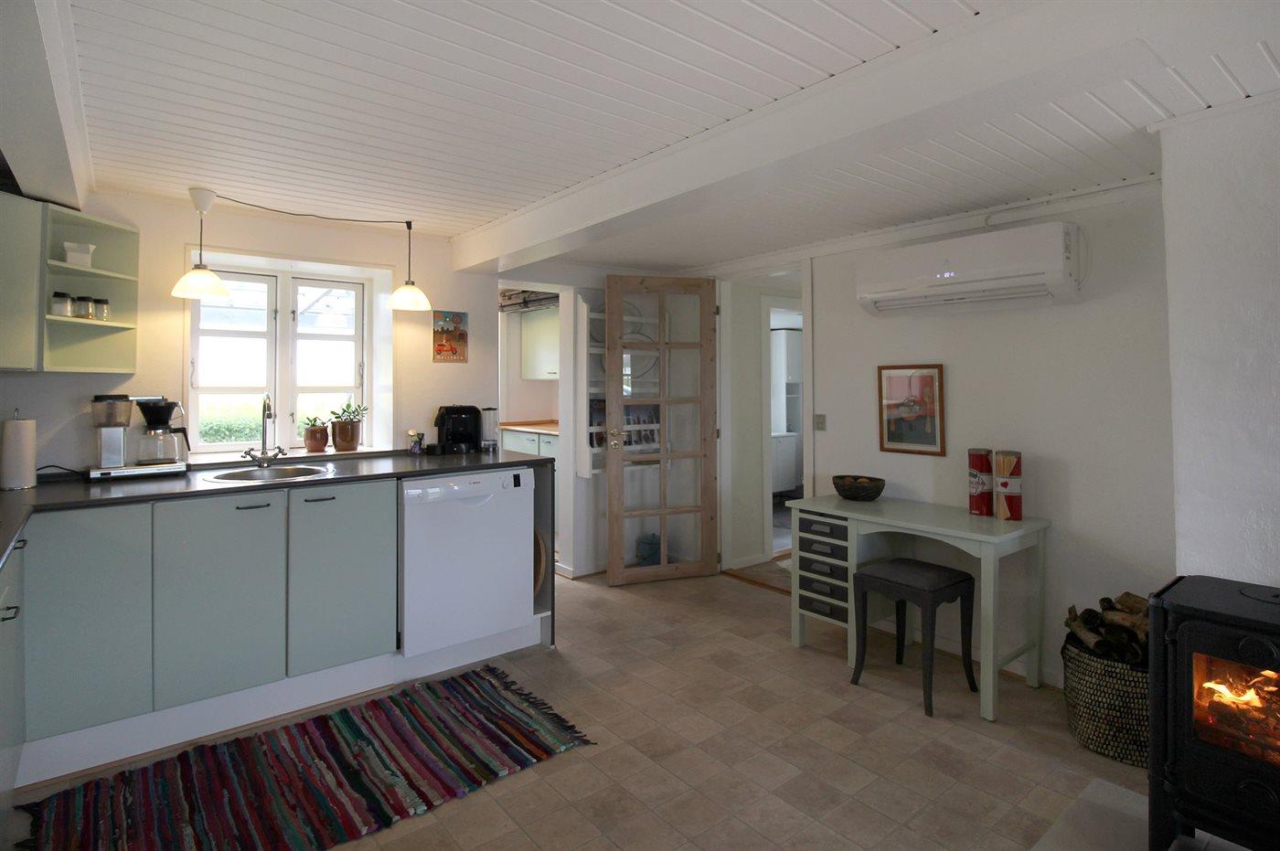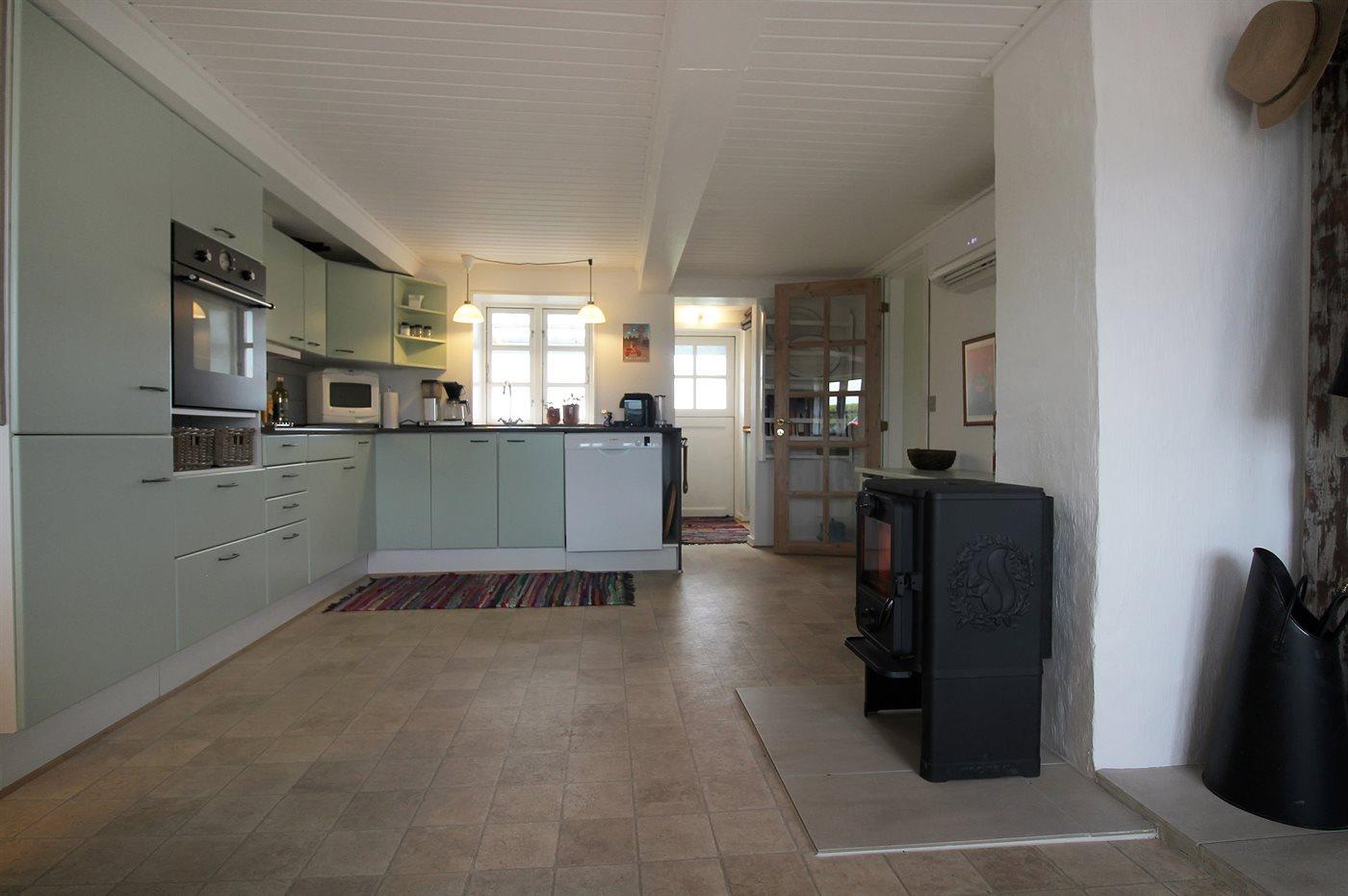 Dieses schöne Ferienhaus liegt auf einem gepflegten Gartengrundstück in gemütlicher und naturschöner Umgebung. Die schöne Aussicht auf das Meer können Sie sowohl vom Haus als auch vom Grundstück genießen. Übrigens: Niedrige Deckenhöhe in der Küche.