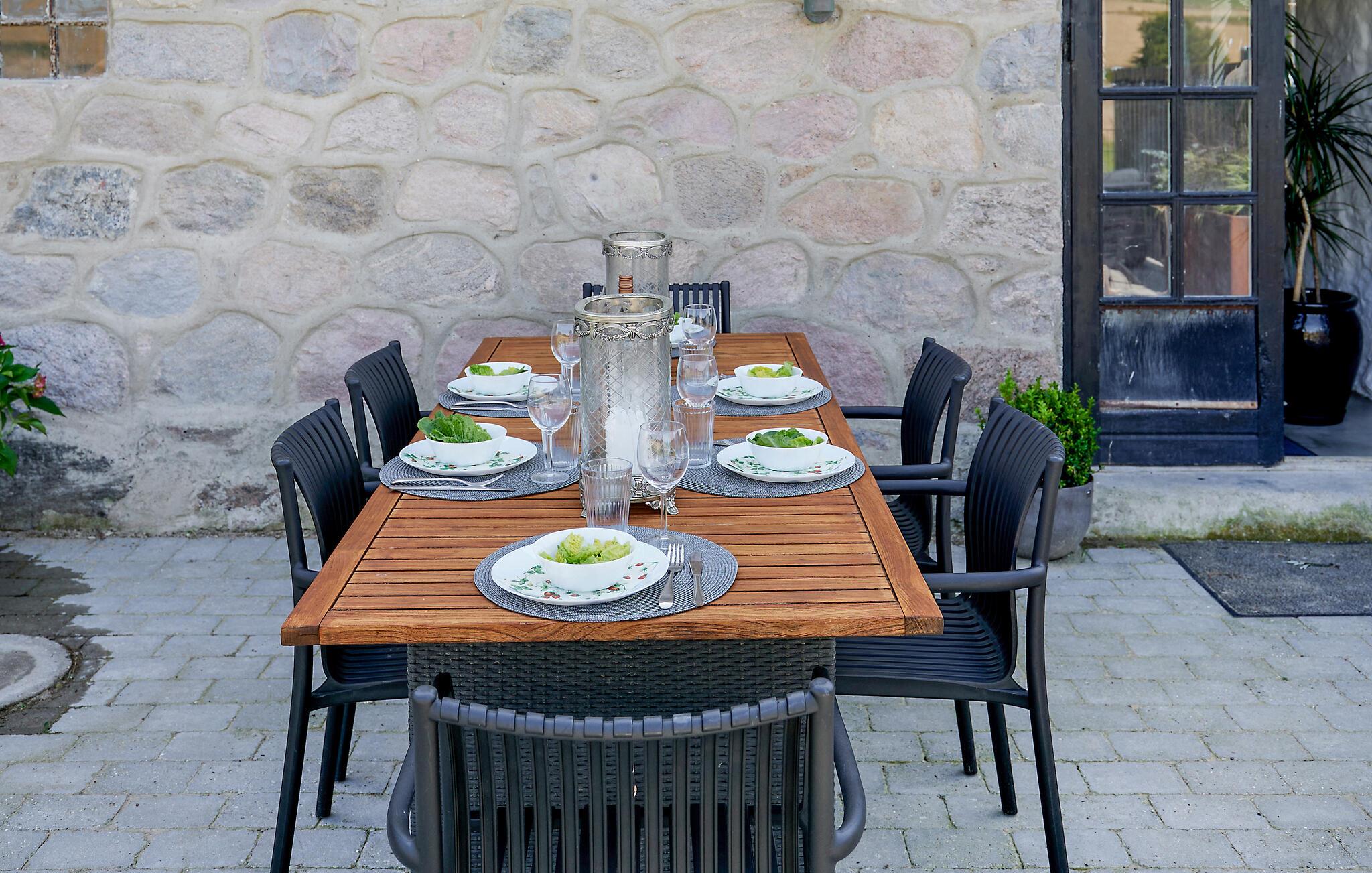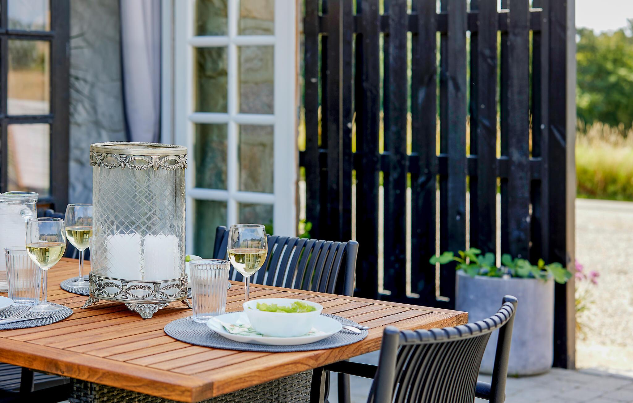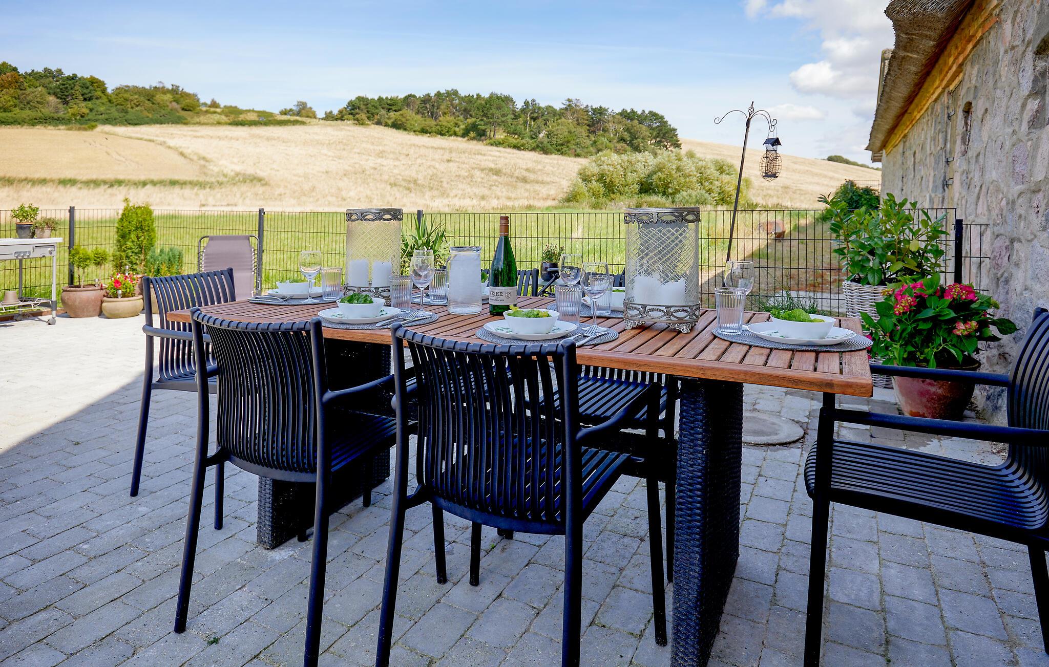 Lassen Sie beim Genießen der Sonne auf der Terrasse den Blick über die Umgebung schweifen und bereiten Sie das Abendessen auf dem Grill zu.