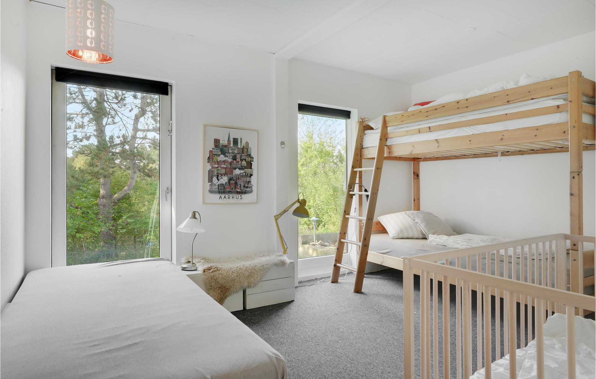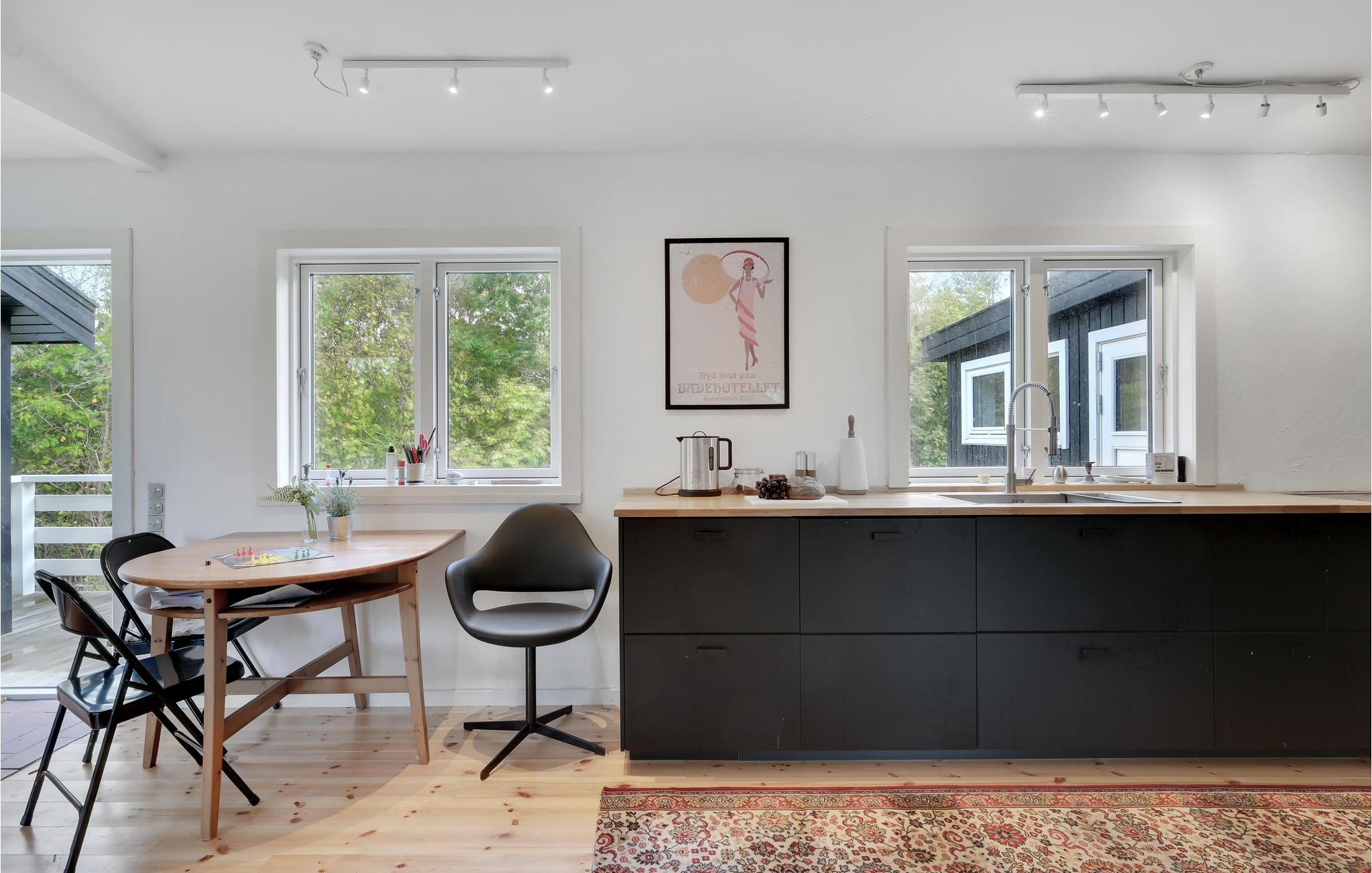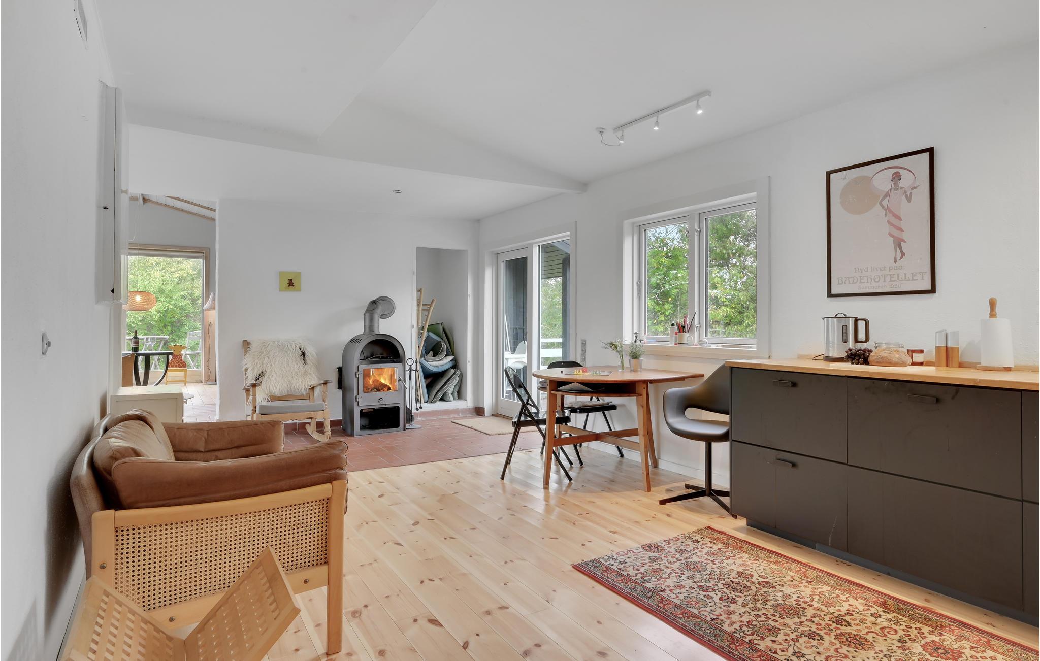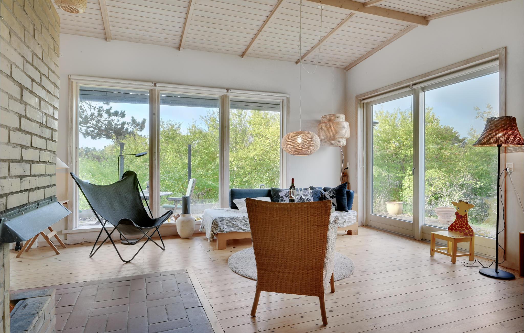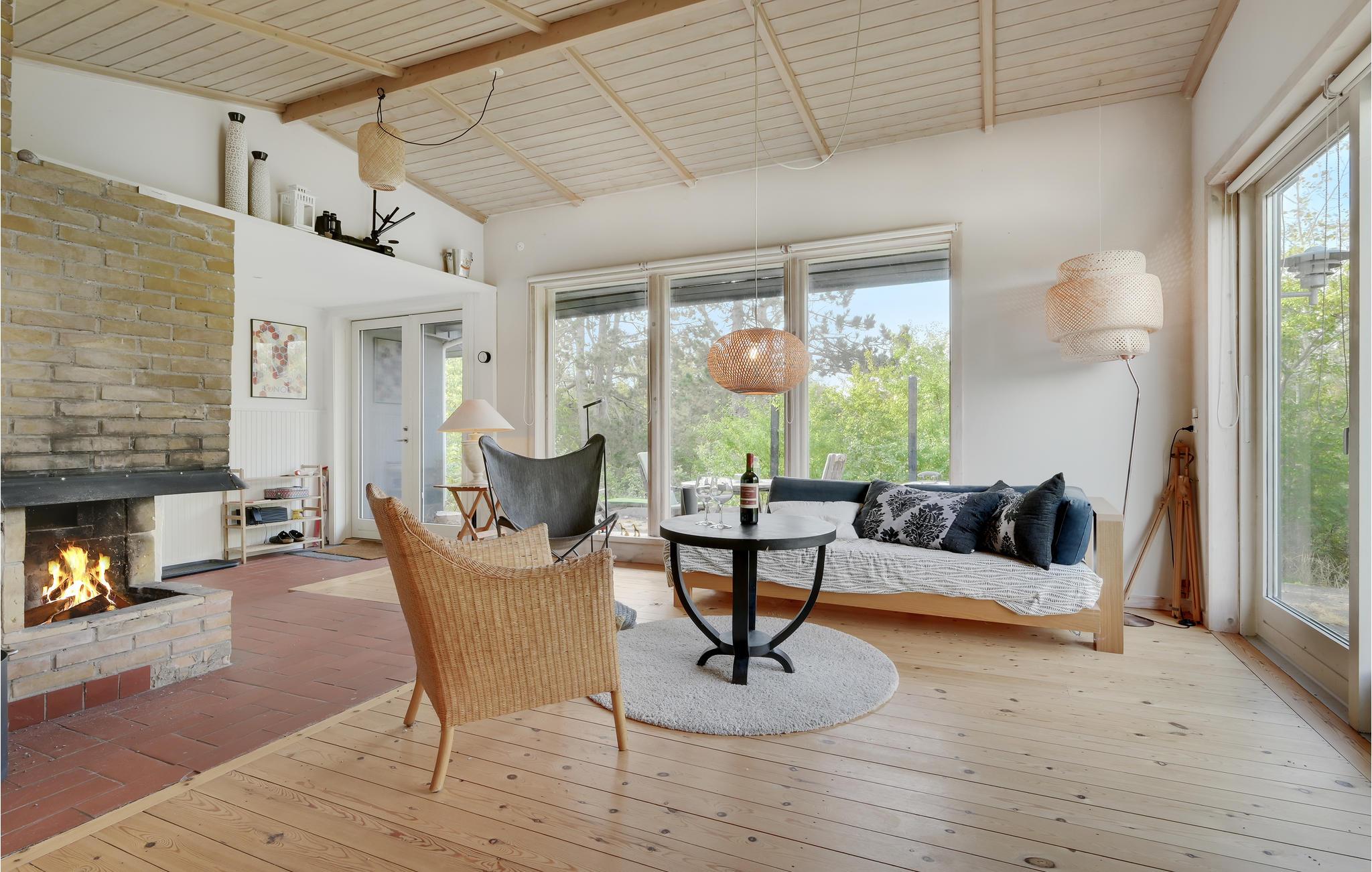 Wenn Sie dieses Ferienhaus betreten, werden Sie von klassischem, stilvollem nordischem Minimalismus mit viel Luft und natürlichen Materialien begrüßt. Die vielen Details garantieren Gemütlichkeit. Versasmmeln Sie sich mit der Familie um den Holzofen, wenn der Tag vorbei ist, oder auf der Holzterrasse, auf der Sie den Tag mit dem Morgenkaffee beginnen können - während die Kinder auf dem Trampolin Energie ablassen.