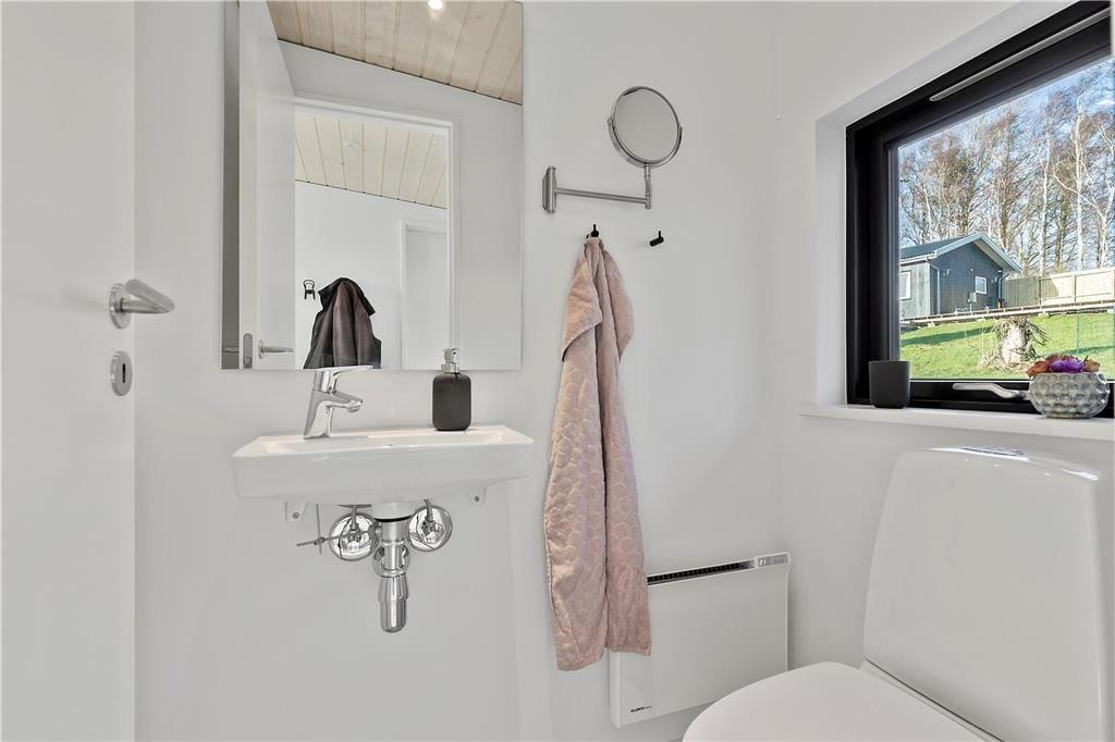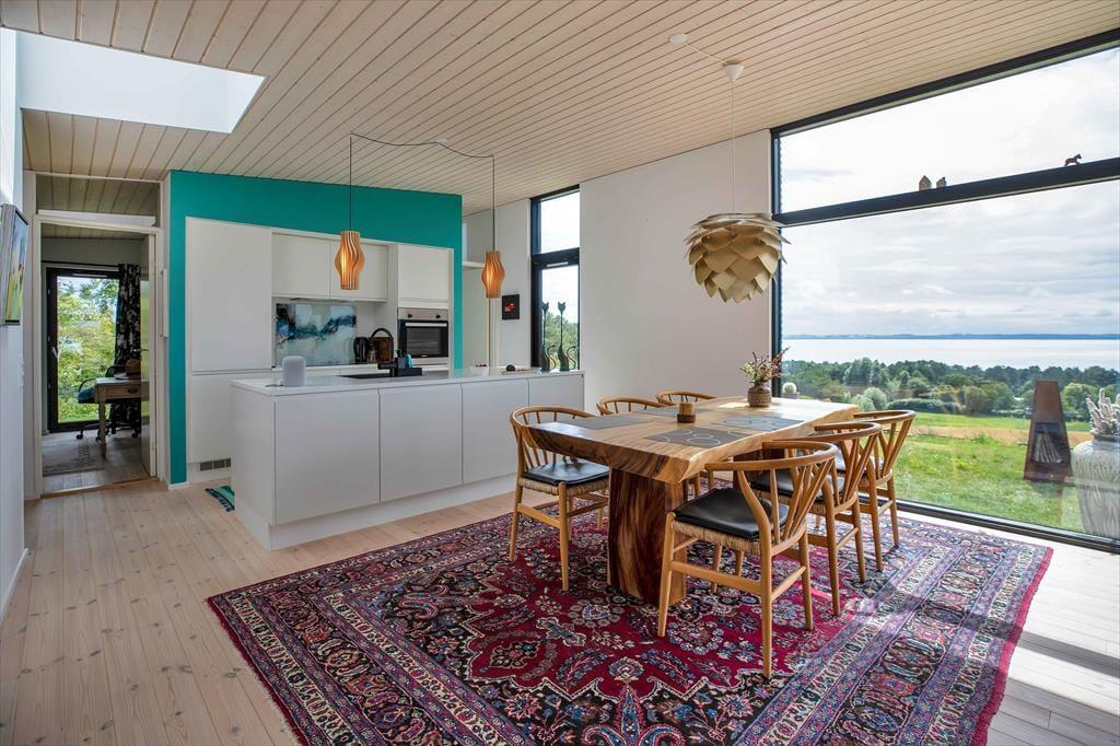Das Ferienhaus bietet einen schönen Küchen- und Essbereich, der offen mit dem attraktiven Wohnraum verbunden ist. Dank der großen, bodentiefen Fenster begeistert der Raum mit einem herrlichen Tageslichteinfall und eröffnet Ihnen zugleich eine fantastische Aussicht über die Sejerø Bucht. Elektrische Holzjalousien sind vorhanden, die auch die Terrassen abschirmen können. Ihnen stehen in diesem wunderbaren Urlaubsdomizil drei gute Schlafzimmer mit Schrankfläche zur Verfügung. In zwei der Schlafräume finden Sie je ein Doppelbett vor. Im dritten Schlafraum stehen zwei Einzelbetten für Sie bereit. Das tolle Badezimmer bietet eine Dusche, sowie eine Waschmaschine und einen Wäschetrockner. Ein Gäste-WC ist ebenfalls vorhanden.