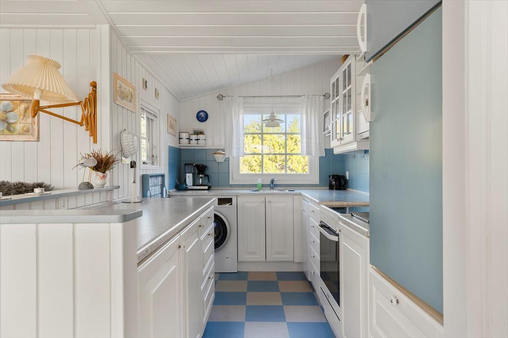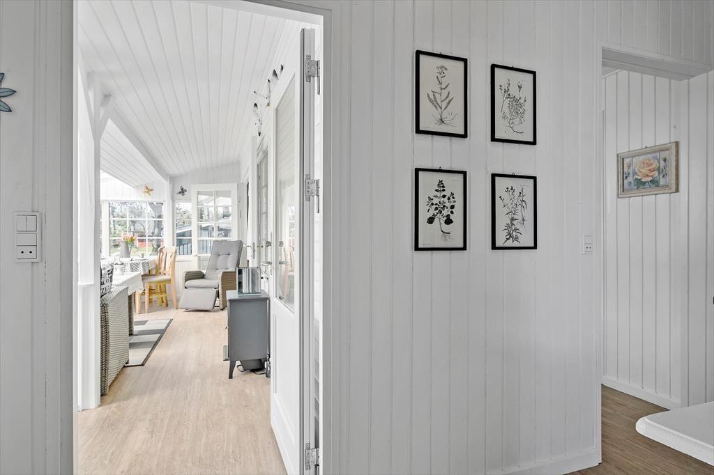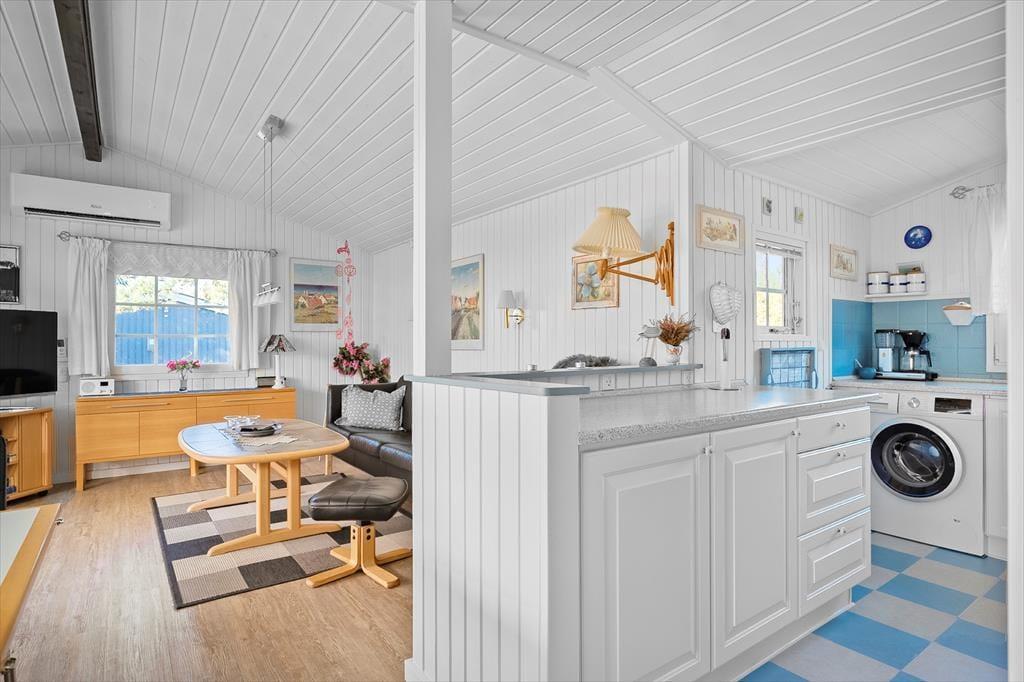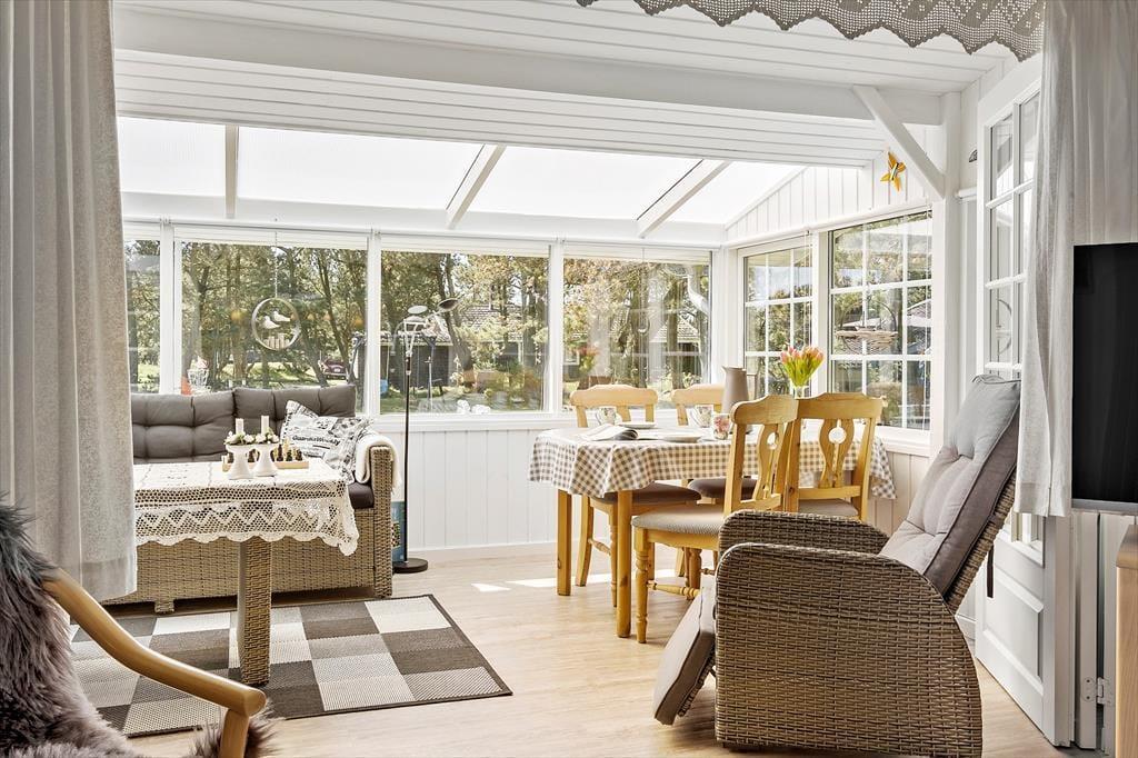 Når du træder indenfor i sommerhuset, bliver du mødt af en gennemført indretning med smagfulde detaljer, der emmer af skandinavisk charme. De lyse rum er indrettet med sans for hygge og komfort, og den åbne planløsning skaber en skøn forbindelse mellem køkkenet og stuen hvor de store vinduespartier sørger for en helt særlig atmosfære. Her kan du og dine nærmeste slappe af i sofaen med udsigt til haven, mens børnene hygger sig med en god film på fladskærmen, eller I kan fordybe jer i brætspil ved spisebordet, mens aftenens måltid simrer i køkkenet. Sommerhusets gode anneks giver jer ekstra fleksibilitet, da det kan bruges som hyggeligt sovested for de større børn eller som en privat krog til et vennepar, der er med på ferie.