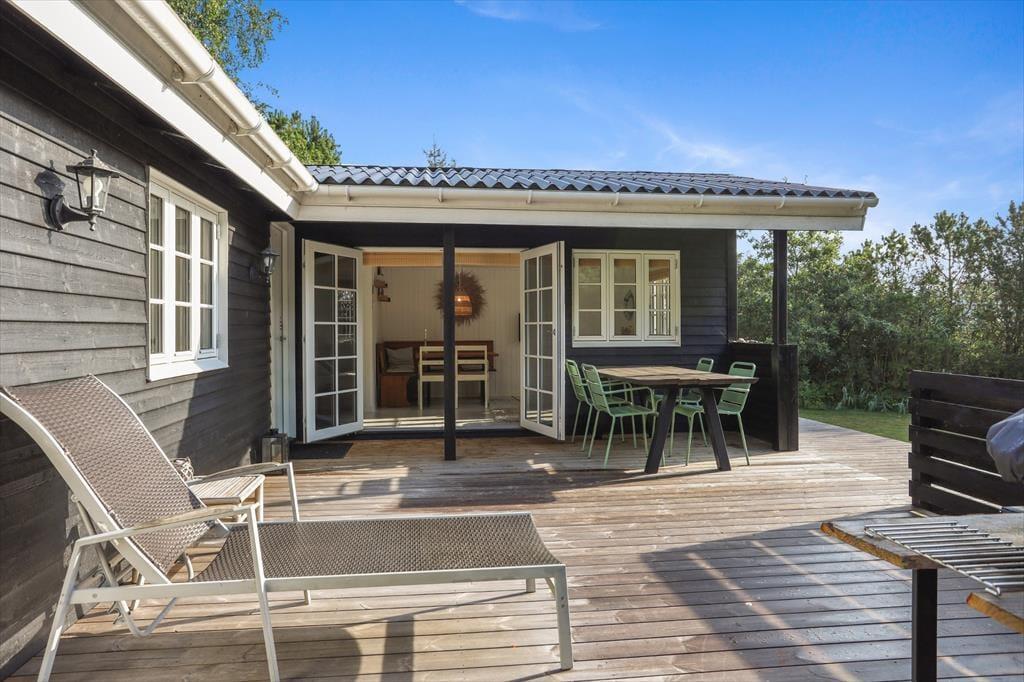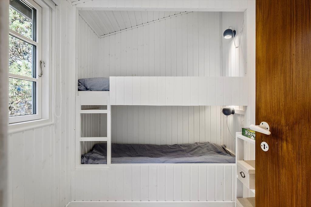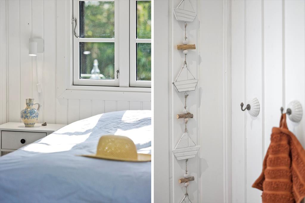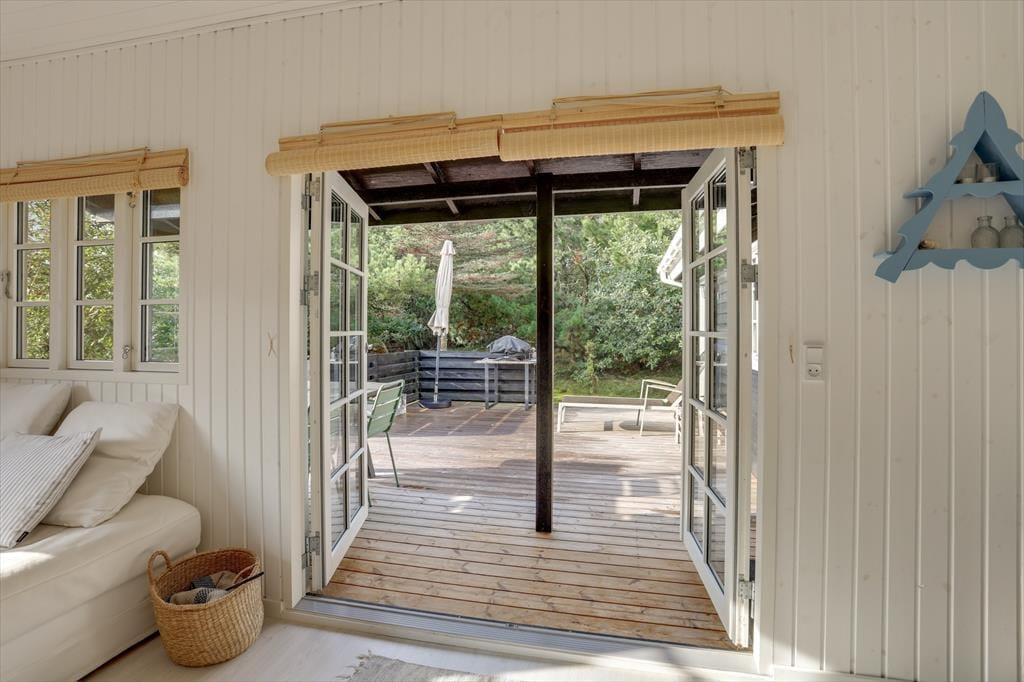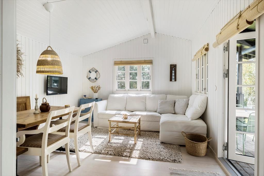 Dette sommerhus byder dig indenfor med en helt særlig charme og hyggelig atmosfære. Indretningen er lys og indbydende med et åbent opholdsrum, hvor du kan samles med dine nærmeste. De store vinduer giver et smukt lysindfald og skaber en tæt forbindelse mellem ude og inde. Med komfortable møbler og et rummeligt spiseområde er der lagt op til lange, afslappede måltider og hyggelige stunder, hvor du kan nyde nærværet og feriestemningen. Uanset om du vil læse en god bog, se en film eller bare slappe af, så skaber dette sommerhus den perfekte ramme om en ferie i ro og mag.