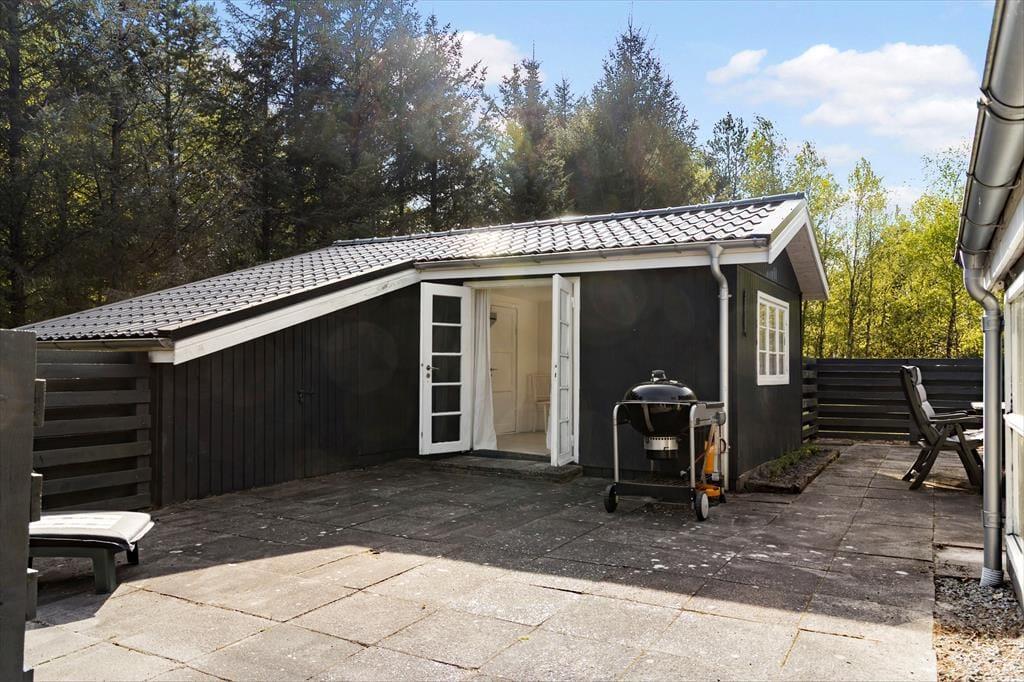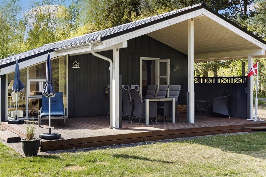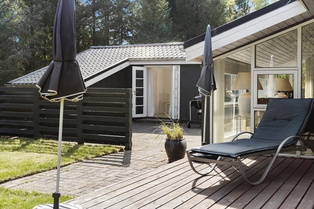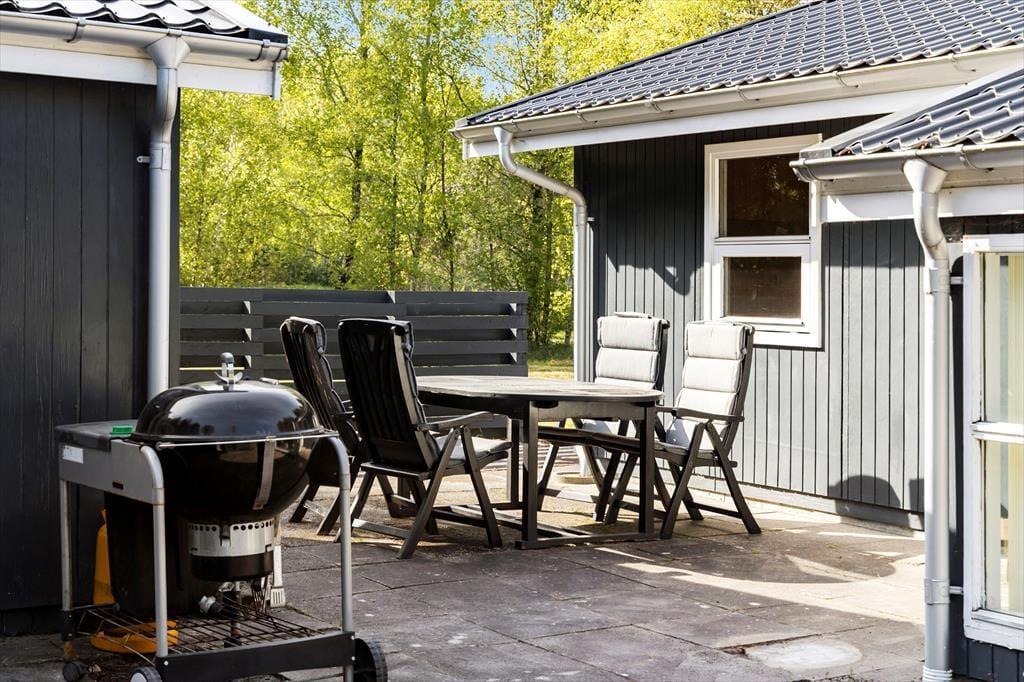 Wenn das Wetter es zulässt - und das tut es in Lyngså oft - verlagert sich das Leben natürlich nach draußen. Das große Naturgrundstück lädt zum Spielen und Entspannen ein, und mit der teilweise überdachten Holzterrasse haben Sie immer einen guten Platz zum Sitzen. Hier können Sie mit Vogelgezwitscher im Hintergrund frühstücken, tagsüber im Schatten eine Partie Karten spielen oder abends lange Grillabende unter dem Sternenhimmel genießen. Es ist auch ein idealer Ort, um die Kinder frei laufen zu lassen, während Sie bei einem Glas Wein das Rauschen des Windes in den Baumkronen genießen. Es ist eine besondere Freiheit, so viel Platz um sich herum zu haben - sowohl für zwei- als auch für vierbeinige Urlauber.