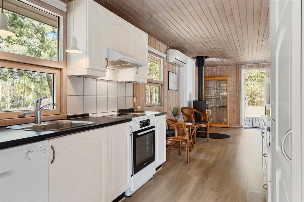 Dieses charmante Holzhaus hat etwas Besonderes an sich - eine Ruhe und Wärme, die man sofort spürt, wenn man es betritt. Die lichtdurchfluteten Räume, die schlichte und einladende Einrichtung und die kleinen Details, die die Liebe des Eigentümers zu diesem Ort zeigen, schaffen eine entspannte Atmosphäre, in der man sich leicht wie zu Hause fühlt. Hier kann man lange Vormittage mit Kaffee am Esstisch genießen, während die ersten Sonnenstrahlen durch die Fenster fallen - oder sich im Wohnzimmer zu einem Gespräch, einem Brettspiel oder einem ruhigen Moment mit einem Buch versammeln. Zusätzlich zu den gemütlichen Wohnbereichen verfügt das Ferienhaus über einen schönen Anbau, der nicht nur zusätzlichen Schlafplatz, sondern auch ein eigenes Bad bietet. Perfekt für Teenager, Großeltern oder befreundete Paare, die in ihrem Urlaub etwas Privatsphäre wünschen.