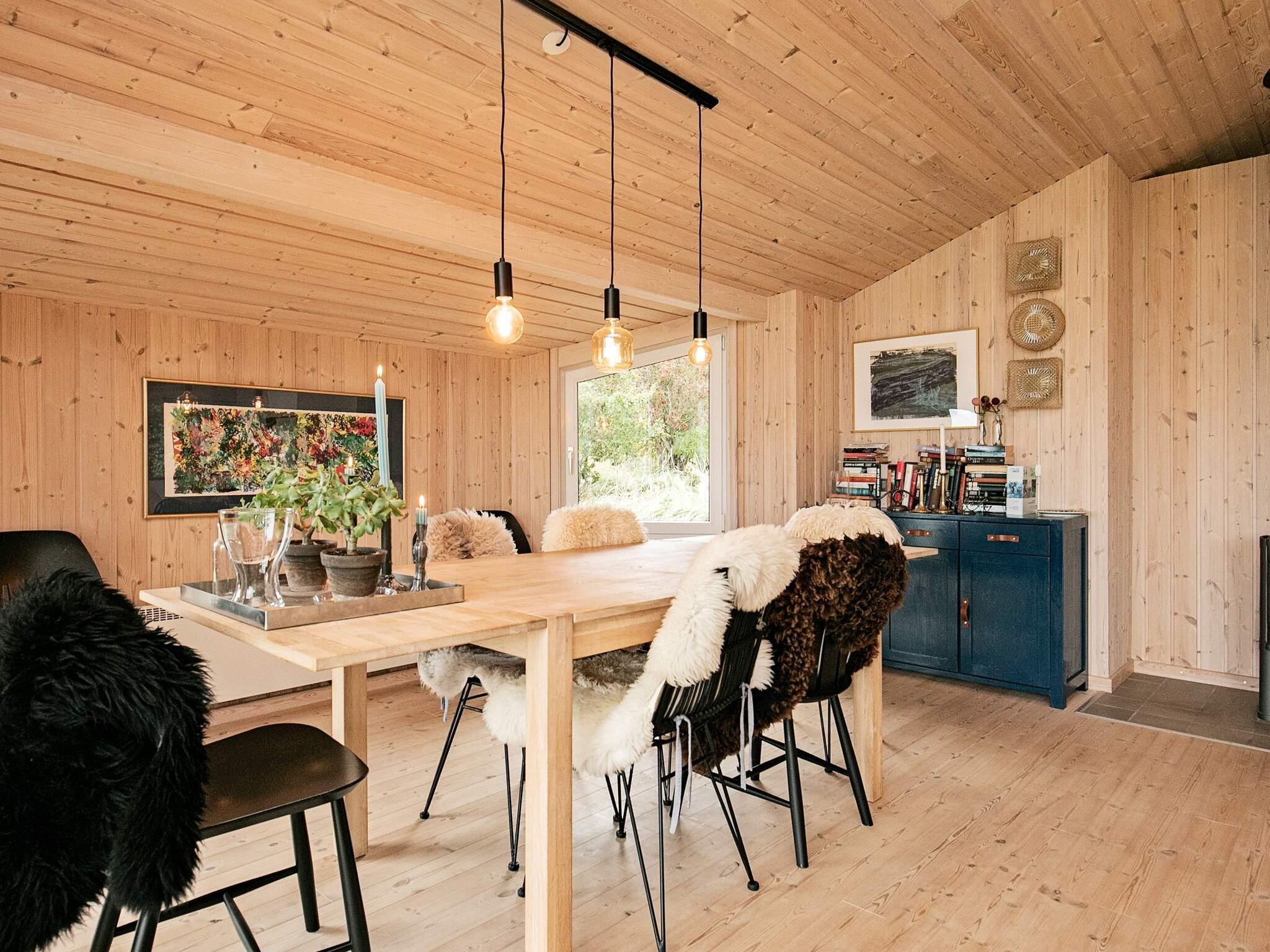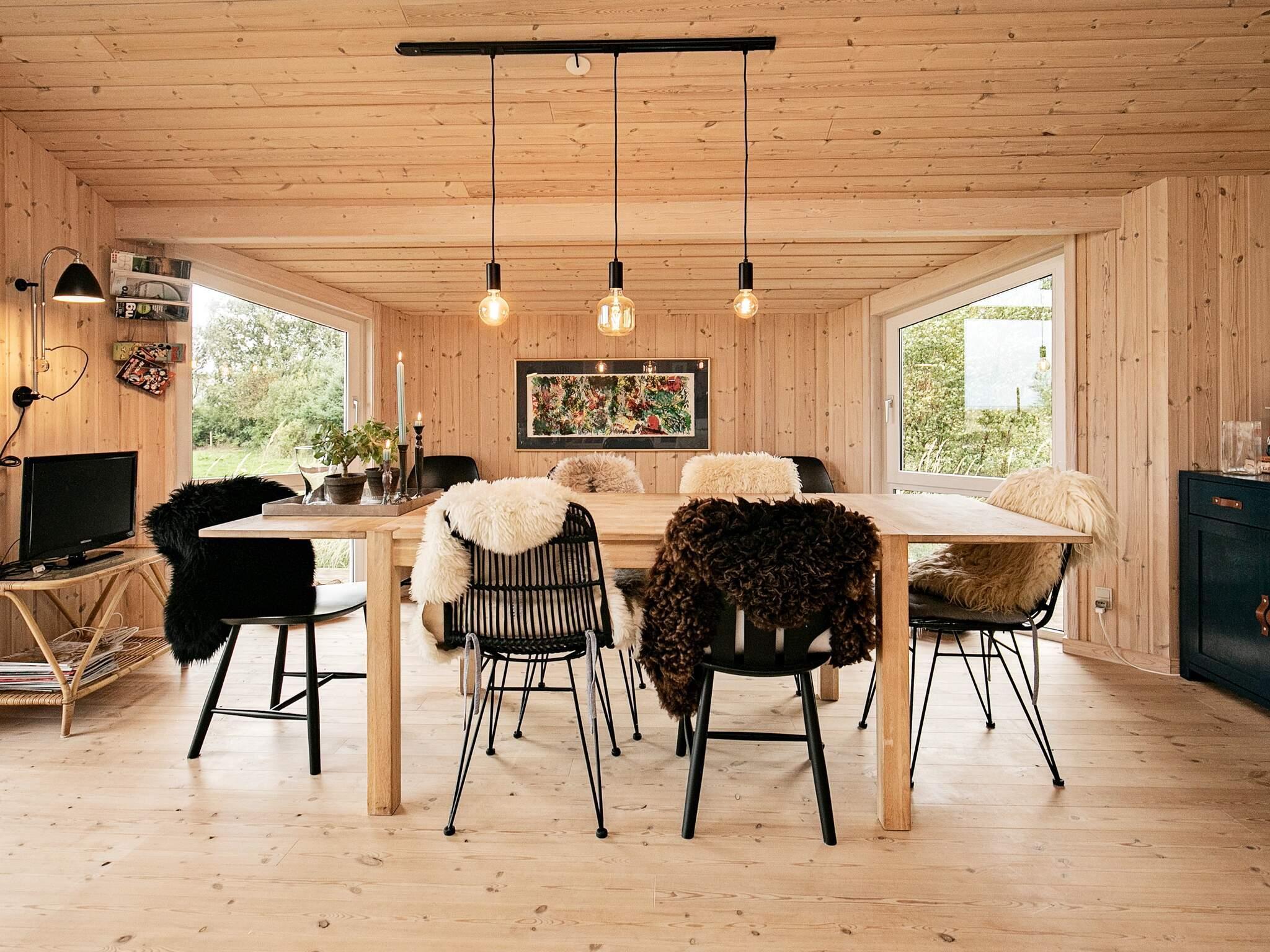 Das 2009 erbaute Ferienhaus präsentiert sich innen gut instand gehalten und gemütlich möbliert, mit luftiger Raumhöhe und großer Fensterfläche für viel Tageslicht. Bei Bedarf sorgt ein Holzofen für wohlige Wärme im Haus. Genießen Sie hier entspannte und erholsame Urlaubstage mit der Familie im geräumigen Küchen-/Wohnbereich mit Essecke.