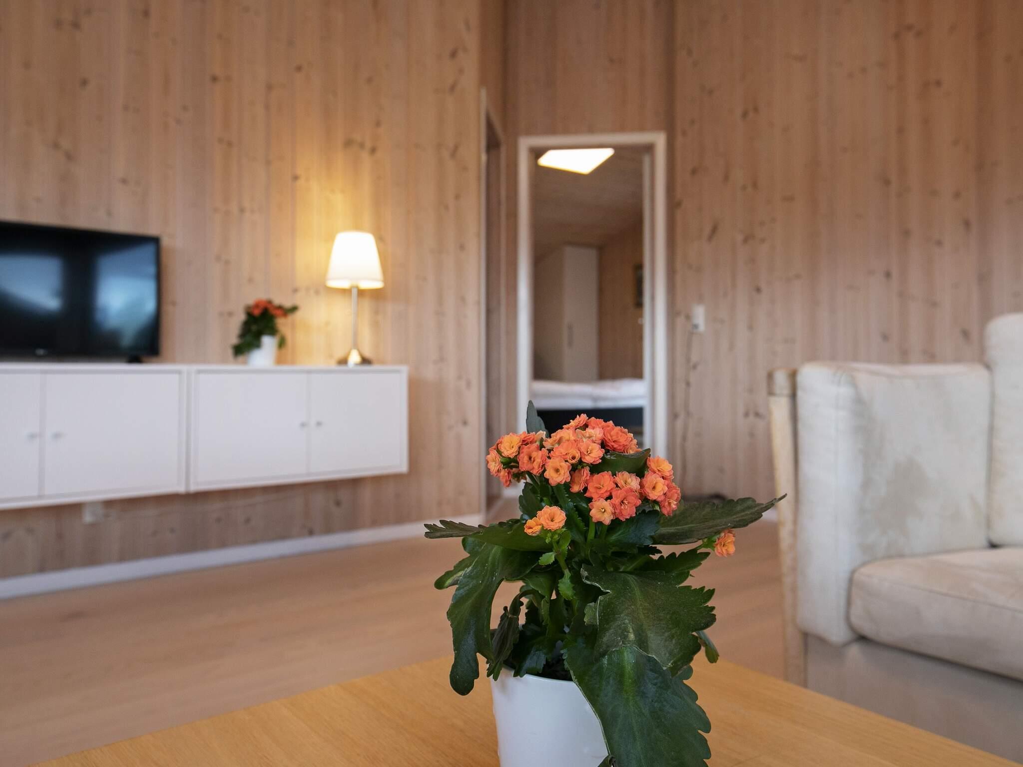 Das Ferienhaus hat einen gut ausgestatteten Küchen-/Wohnbereich mit großen Fenstern und offener Zimmerdecke bis zum First und somit hellem, luftigem Ambiente. Hier gibt es viel Platz für das Familienleben und gemeinsame Aktivitäten. Eine energieeffiziente Wärmepumpe sorgt zu jeder Jahreszeit für ein angenehmes Innenklima. Außerdem gibt es zwei große, helle Schlafzimmer, mit guten Schlafplätzen und Stauraum, sowie einen offenen Hems oben unter der Dachschräge, mit Matratze und solider Leitertreppe als Zugang. Waschmaschine und Trockner findet man unten im offenen Eingangsbereich. Außerdem großes Badezimmer im Haus, mit Dusche und Fußbodenheizung sowie Whirlpool und Sauna.