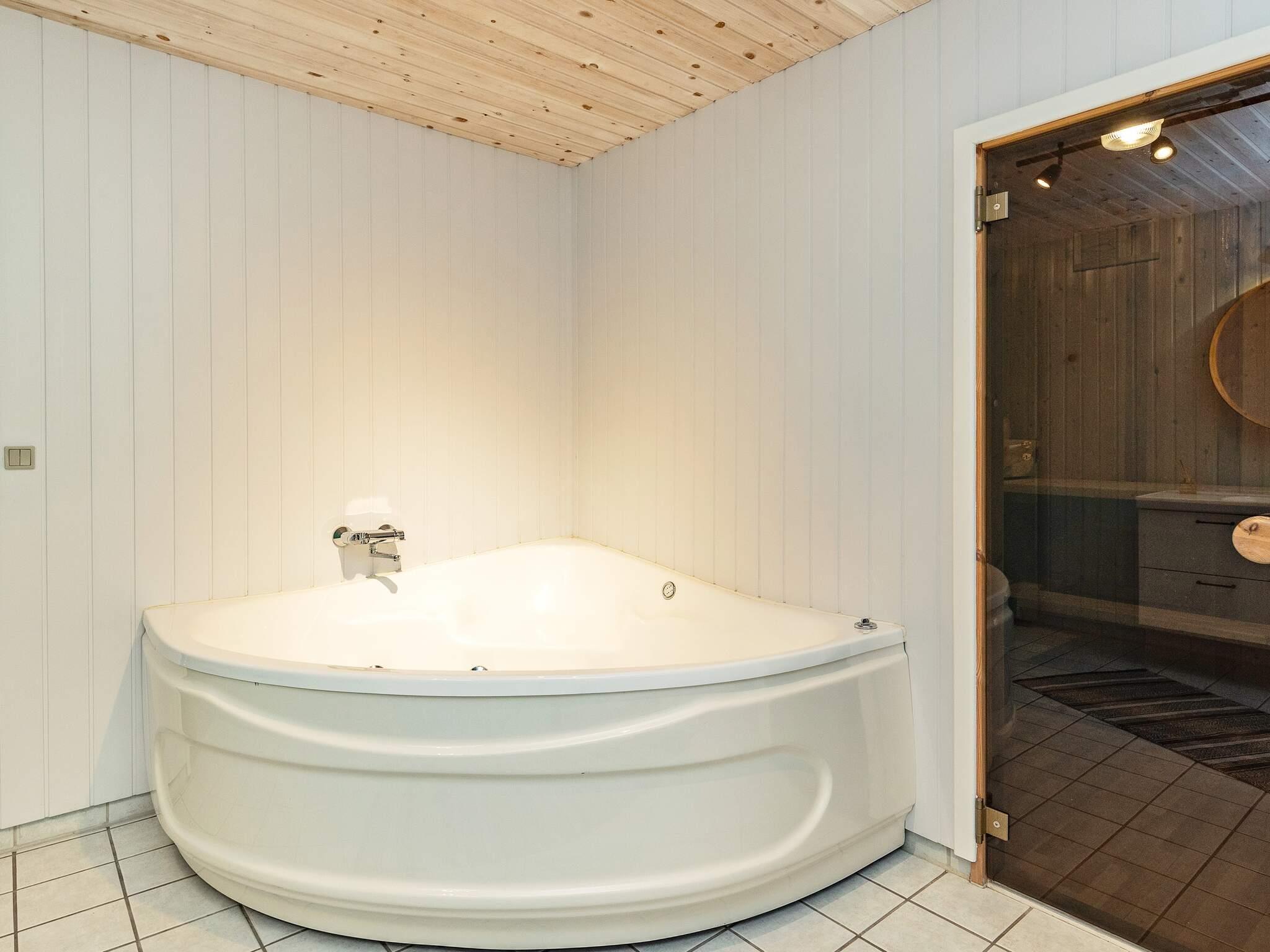 Die nach Süden ausgerichtete Terrassenfläche ist mindestens genauso einladend wie das Ferienhaus selbst. Ein großer Teil der Terrasse ist völlig offen, aber teilweise abgeschirmt, sodass Windschutz besteht, und es gibt auch einen überdachten Bereich, der abends schnell zu einem Lieblingsplatz werden kann. Auf dem schönen großen Naturgrundstück gibt es viel Platz zum Spielen, ein Teil des Grundstücks ist sogar eingezäunt. Hier gibt es u.a. Feuerstelle, Volleyball, Pole-Tennis, Schach im Freien, Sandkasten sowie diverse Spiele im Freien.