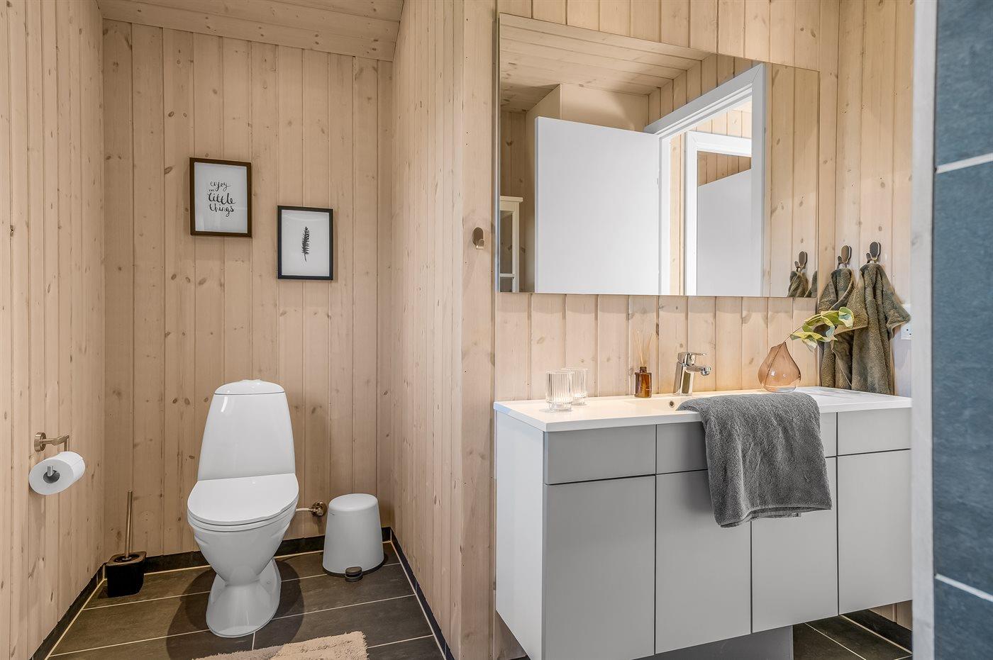 Das Ferienhaus hat zwei Badezimmer mit Duschnische und Toiletten, wobei in einem Badezimmer Fußbodenheizung vorhanden ist.