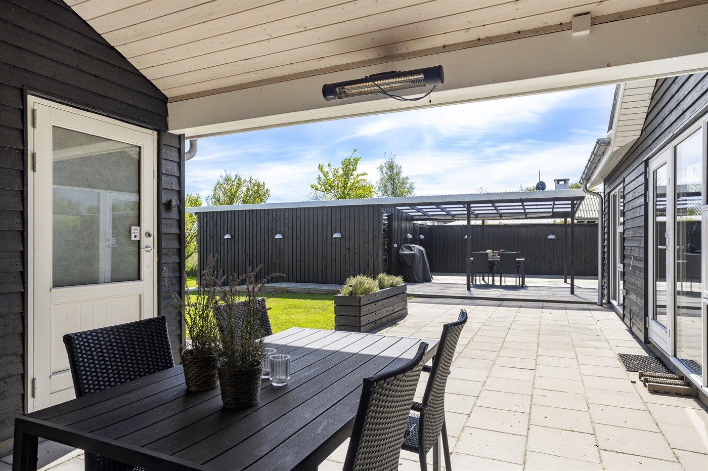 Das Ferienhaus bietet sowohl eine offene als auch eine überdachte Terrasse sowie einen sonnigen Innenhof, in dem du deinen Morgenkaffee genießen, grillen oder einfach in der Sonne entspannen kannst.